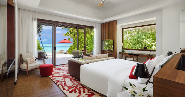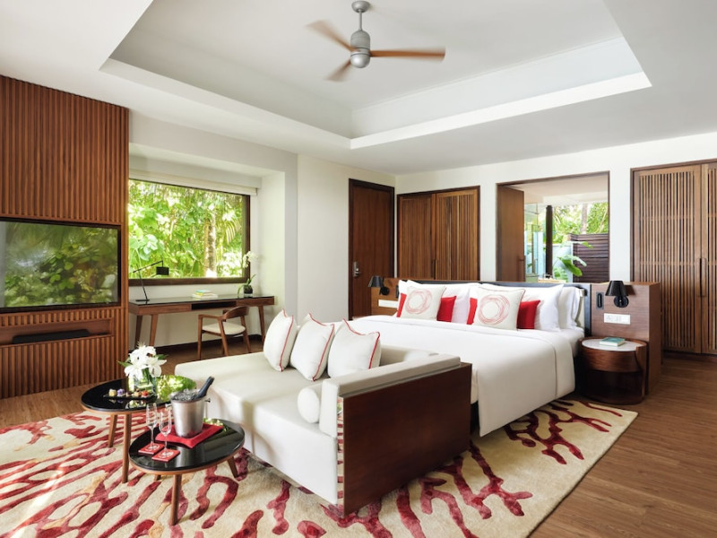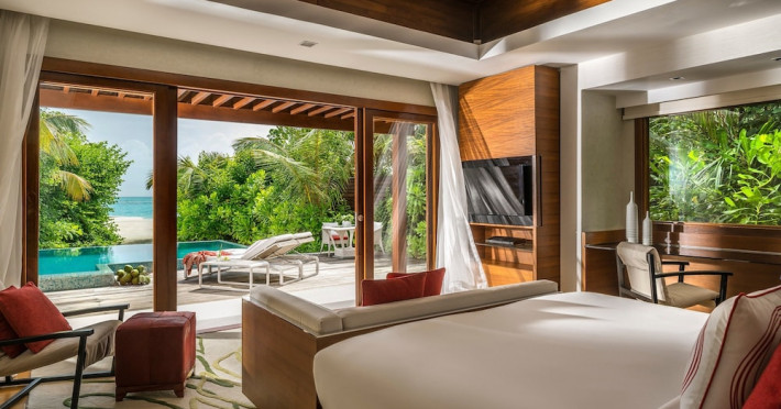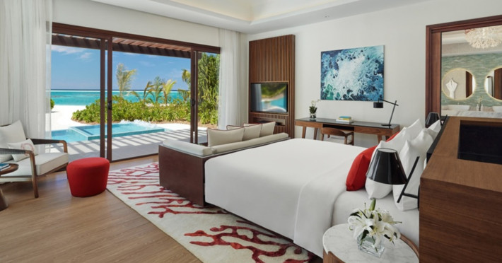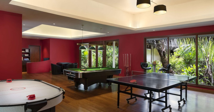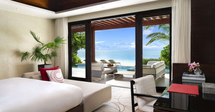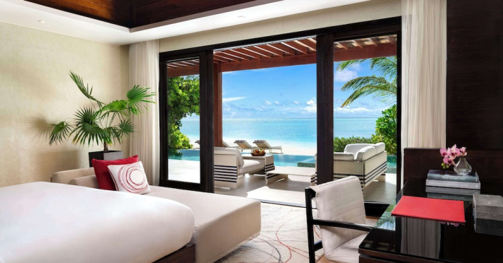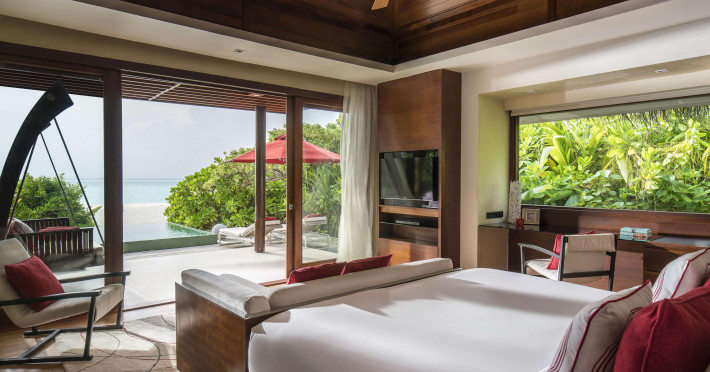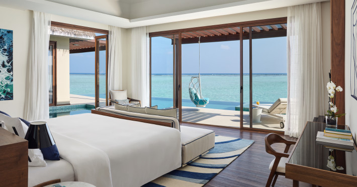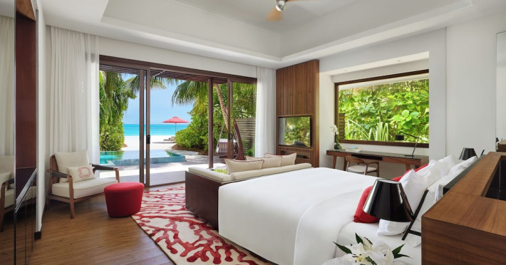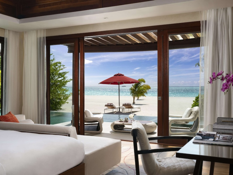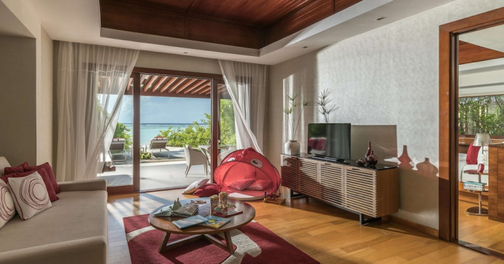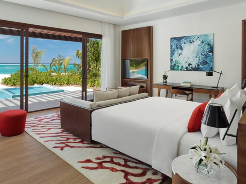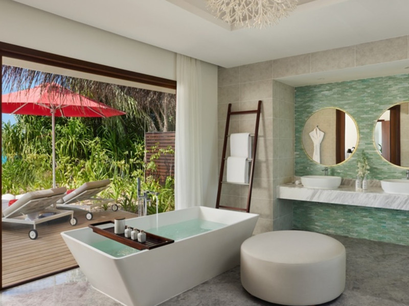Escape to Olhuveli Island in the Maldives, a private island paradise accessible via a 40-minute seaplane ride from Malé International Airport. Relax on the private beach, take a dip in one of two outdoor pools, or indulge in pampering treatments at the spa. Enjoy guided snorkeling or fishing trips arranged by private butlers. Dine at the overwater restaurant, featuring fresh seafood and premium wines, or choose from seven other restaurants offering diverse cuisines, including Mediterranean options at Blu. Enjoy 24-hour room service and refreshments at multiple bars and cafes. Guest rooms feature minibars, DVD players, memory foam beds with premium bedding, private balconies or patios, complimentary wired and wireless internet, and 40-inch LED TVs. Bathrooms include separate bathtubs and showers with rainfall showerheads. Additional amenities include a business center, dry cleaning services, a nightclub, a sauna, concierge services, and babysitting (surcharge). A complimentary buffet breakfast is served daily. Airport shuttle available for a surcharge. The resort is within the region of Kandima Beach and Vommuli Pier, and is 0.6 km from Kudahuvadhoo Mosque. The Niyama Private Islands Maldives is a Full Service, Modern, Tourist hotel. The nightlife/restaurants are located in the hotel.