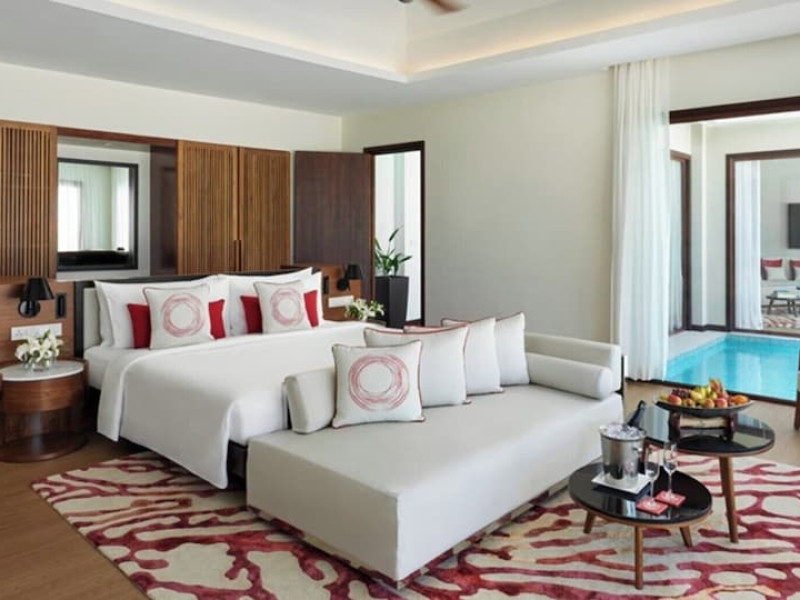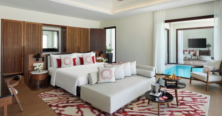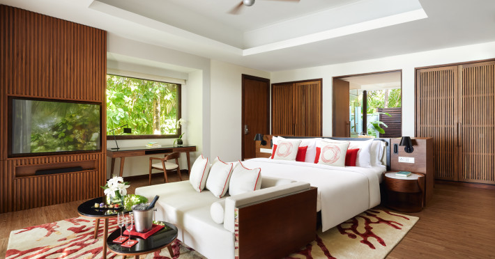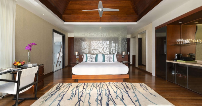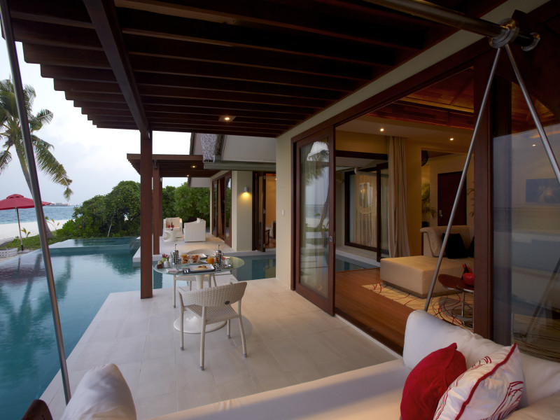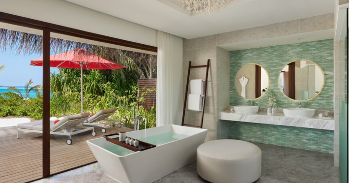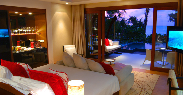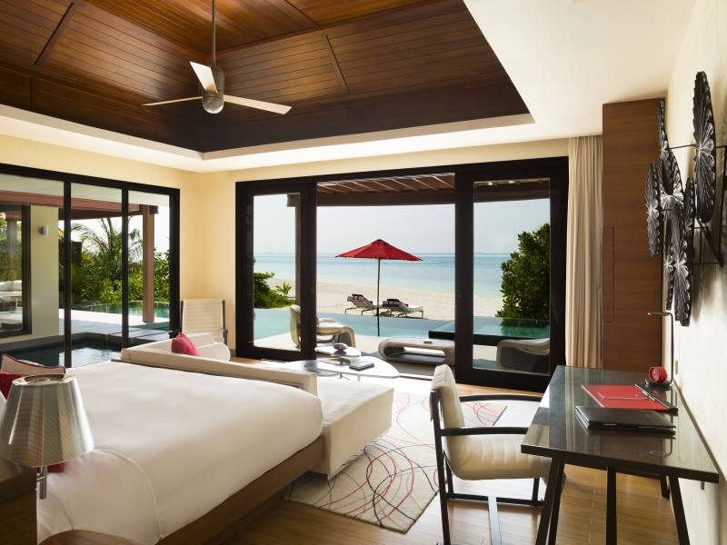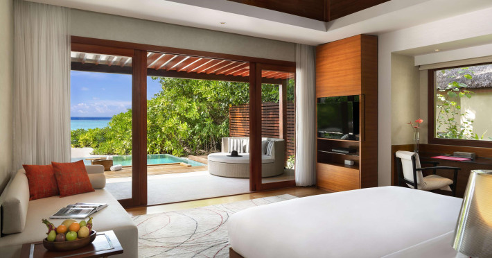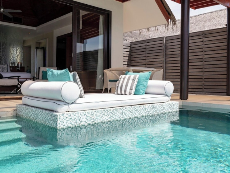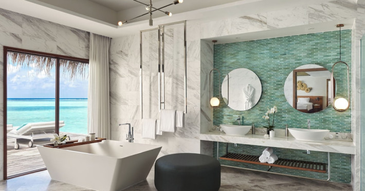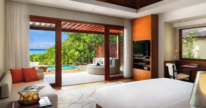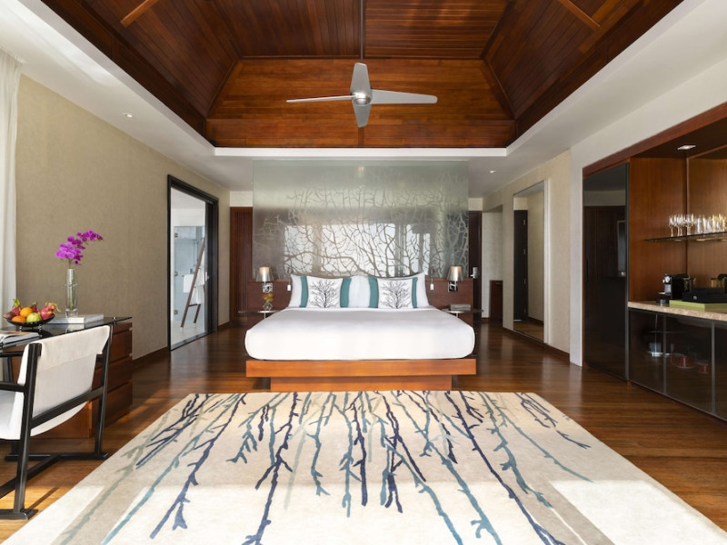 Escape to Olhuveli Island in the Maldives, a private island paradise accessible via a 40-minute seaplane ride from Malé International Airport. Relax on the private beach, take a dip in one of two outdoor pools, or indulge in pampering treatments at the spa. Enjoy guided snorkeling or fishing trips arranged by private butlers. Dine at the overwater restaurant, featuring fresh seafood and premium wines, or choose from seven other restaurants offering diverse cuisines, including Mediterranean options at Blu. Enjoy 24-hour room service and refreshments at multiple bars and cafes. Guest rooms feature minibars, DVD players, memory foam beds with premium bedding, private balconies or patios, complimentary wired and wireless internet, and 40-inch LED TVs. Bathrooms include separate bathtubs and showers with rainfall showerheads. Additional amenities include a business center, dry cleaning services, a nightclub, a sauna, concierge services, and babysitting (surcharge). A complimentary buffet breakfast is served daily. Airport shuttle available for a surcharge. The resort is within the region of Kandima Beach and Vommuli Pier, and is 0.6 km from Kudahuvadhoo Mosque. The Niyama Private Islands Maldives is a Full Service, Modern, Tourist hotel. The nightlife/restaurants are located in the hotel.