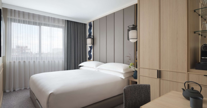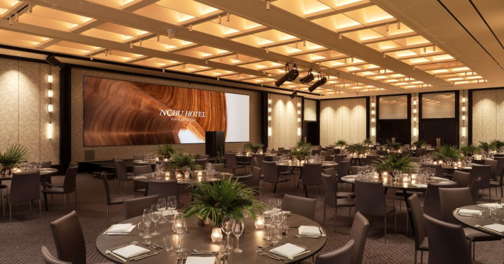 Centrally located in London, Nobu London Portman Square is a 5-star hotel offering 249 air-conditioned rooms with minibars and Smart televisions with satellite programming. Complimentary wireless Internet access is available. Rooms feature private bathrooms with designer toiletries and hair dryers. Conveniences include phones, laptop-compatible safes, and desks. The hotel features 2 restaurants, including Nobu Restaurant and Nobu Bar & Terrace, as well as a coffee shop/cafe and bar/lounge. 24-hour room service is available. Full breakfasts are available daily from 7:00 AM to 10:30 AM for a fee. Guests can relax at the full-service spa with massages. Additional amenities include a 24-hour business center, concierge services, wedding services, limo/town car service, express check-in/check-out, conference space, and meeting rooms. Self-parking is available onsite (subject to charges). The hotel is within walking distance of Oxford Street and Marble Arch, and near Hyde Park and Madame Tussauds Wax Museum. The Nobu Hotel London Portman Square is a hotel.