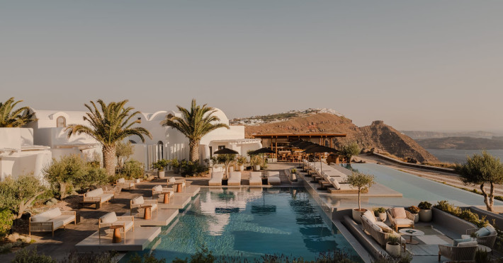 Situated on the island’s captivating northeast coast, the boutique hotel houses a signature Nobu restaurant, full-service spa, fitness facility, dual-level infinity pool, and five luxurious pool villas, and offers panoramic views of both the Caldera and Aegean Sea from its unique clifftop location in Imerovigli.
