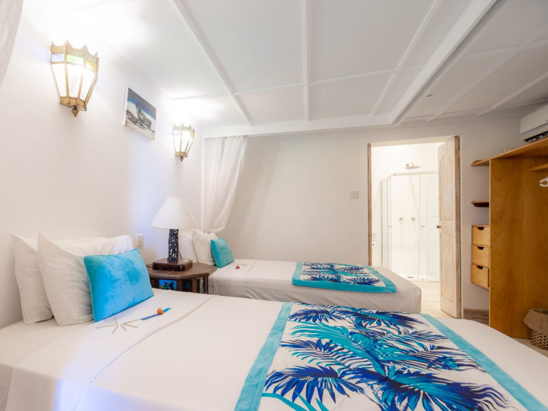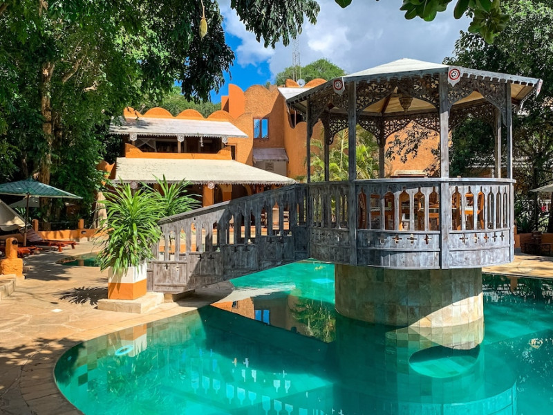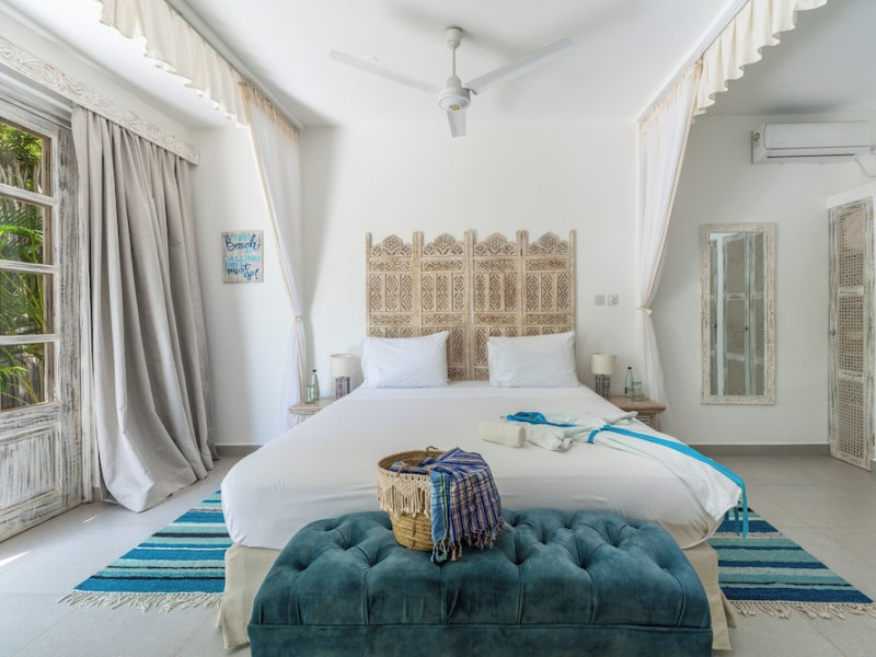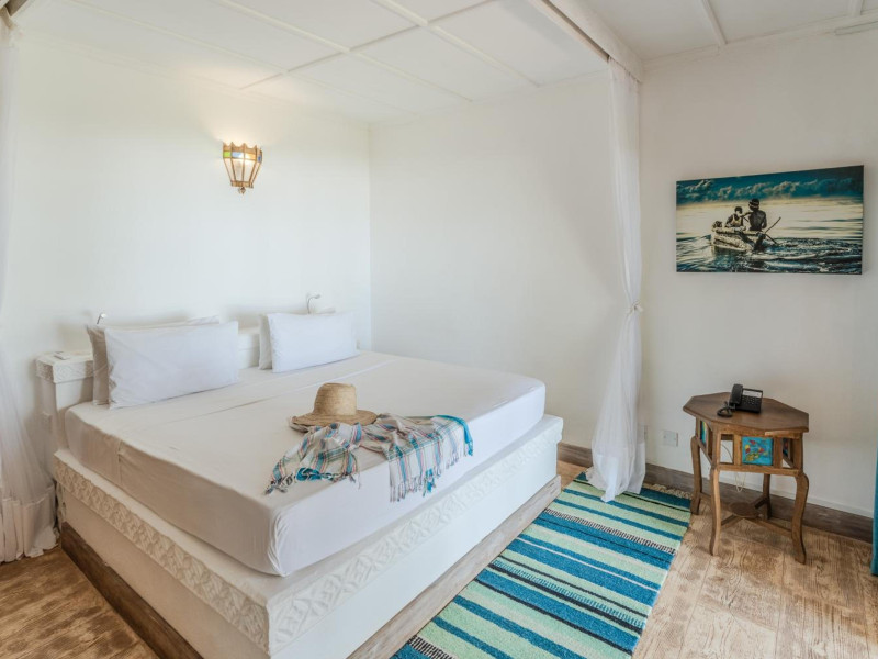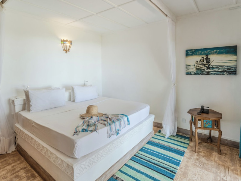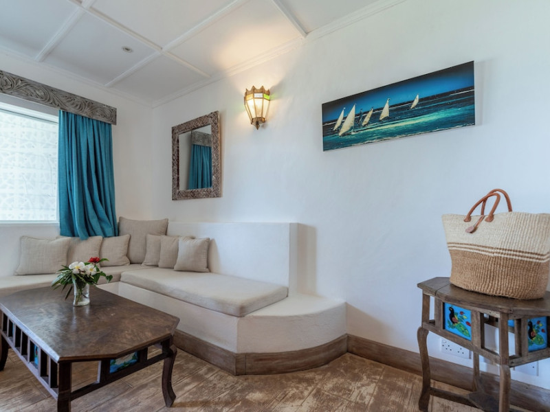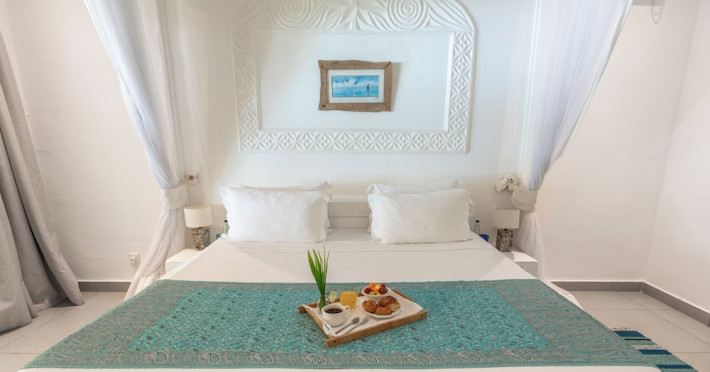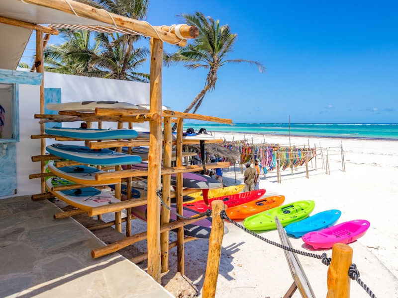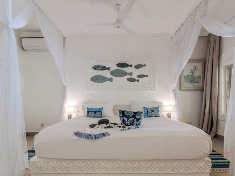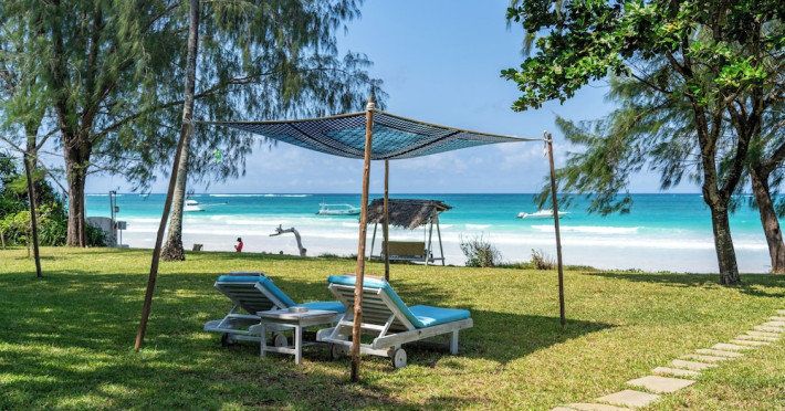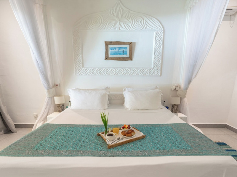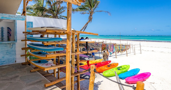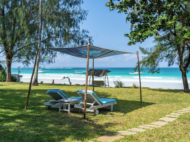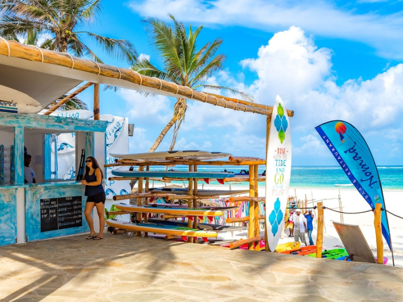 Nestled on Diani Beach along Kenya's south coast, Nomad Beach Resort is a boutique beach hotel offering a tranquil escape amidst lush green lawns and pristine white sands. The resort features air-conditioned rooms with minibars, showcasing Swahili art and elegant furnishings. Guests can enjoy amenities such as 24-hour reception, Wi-Fi, room and laundry services, currency exchange, and concierge services. The hotel boasts a spa, swimming pool, multiple restaurants and bars. Activities include diving, snorkeling, kayaking, and windsurfing. Located close to shops in Diani, the resort is accessible to Mombasa International Airport. Additional features include a private beach, gift shops, a wine cellar, and multilingual staff. The Nomad Beach Resort is a Tourist hotel. Located in Citycenter area. The nightlife/restaurants are located in the hotel.