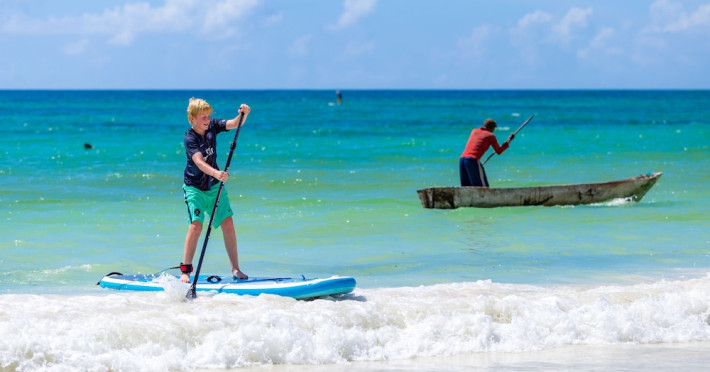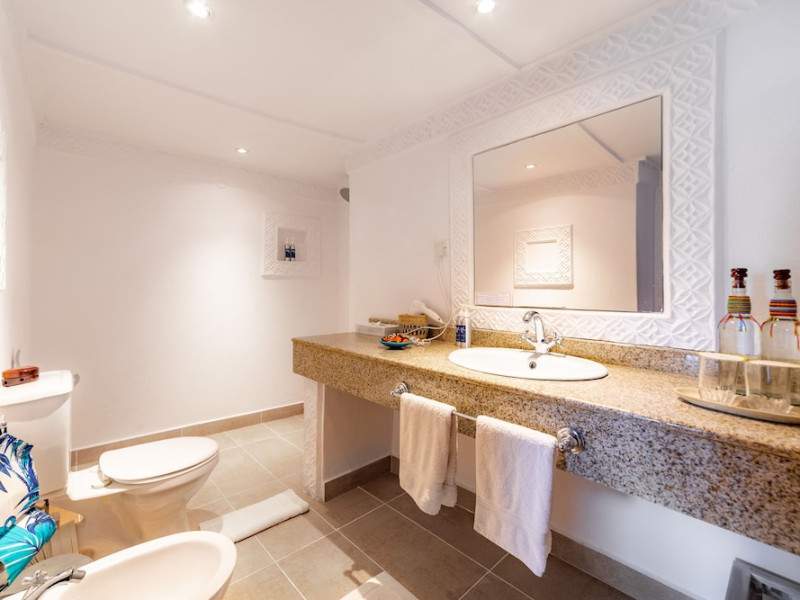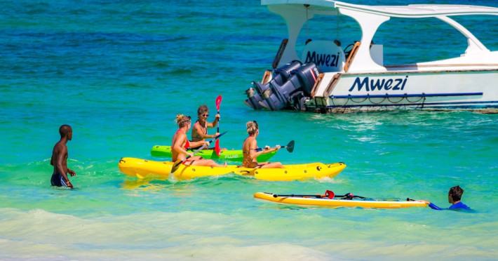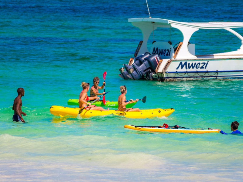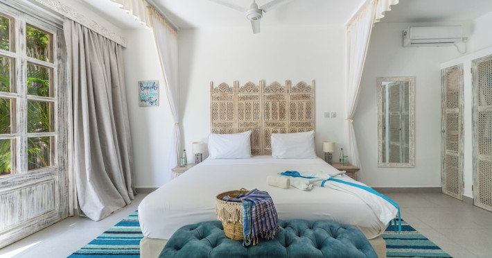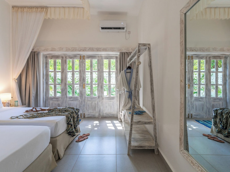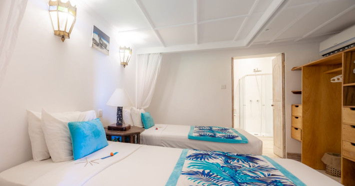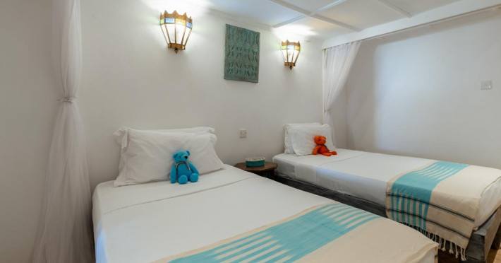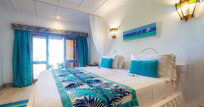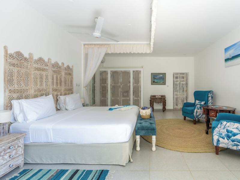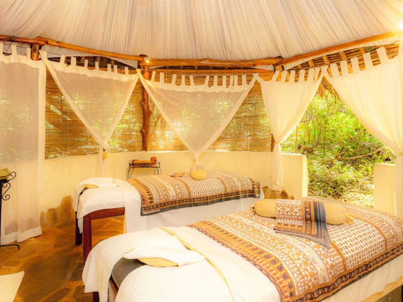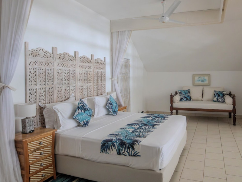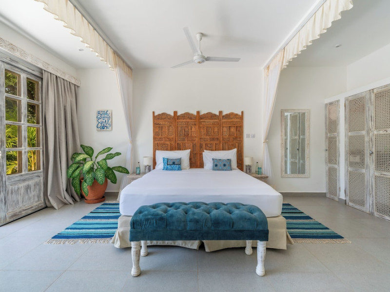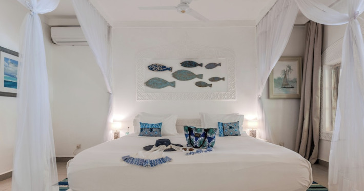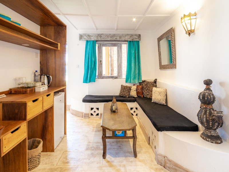 Nestled on Diani Beach along Kenya's south coast, Nomad Beach Resort is a boutique beach hotel offering a tranquil escape amidst lush green lawns and pristine white sands. The resort features air-conditioned rooms with minibars, showcasing Swahili art and elegant furnishings. Guests can enjoy amenities such as 24-hour reception, Wi-Fi, room and laundry services, currency exchange, and concierge services. The hotel boasts a spa, swimming pool, multiple restaurants and bars. Activities include diving, snorkeling, kayaking, and windsurfing. Located close to shops in Diani, the resort is accessible to Mombasa International Airport. Additional features include a private beach, gift shops, a wine cellar, and multilingual staff. The Nomad Beach Resort is a Tourist hotel. Located in Citycenter area. The nightlife/restaurants are located in the hotel.