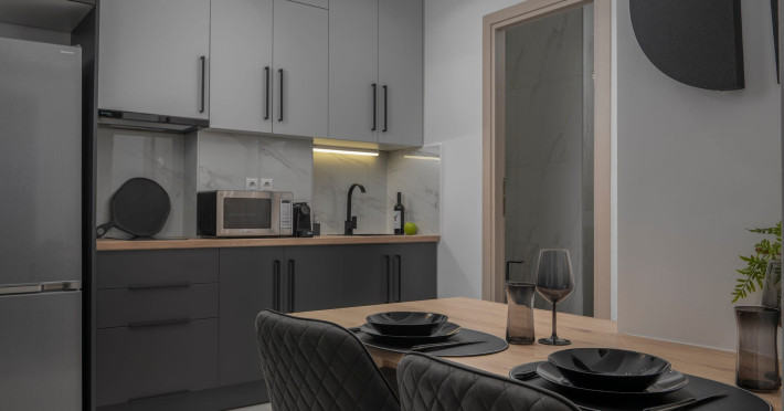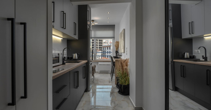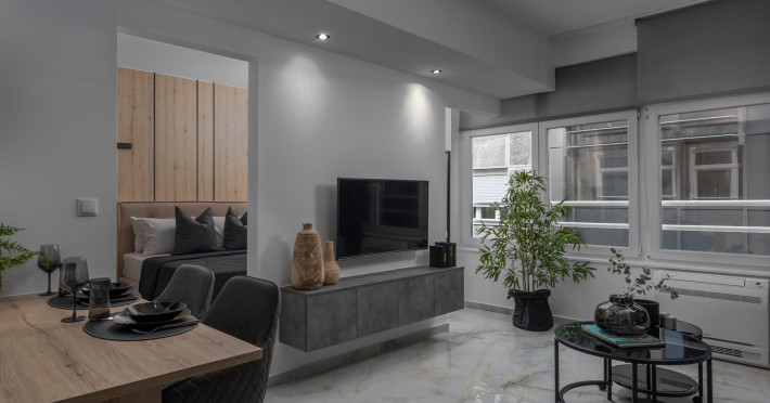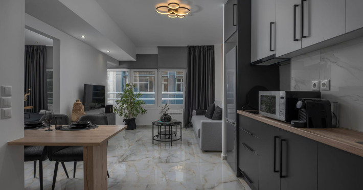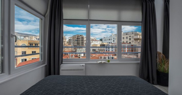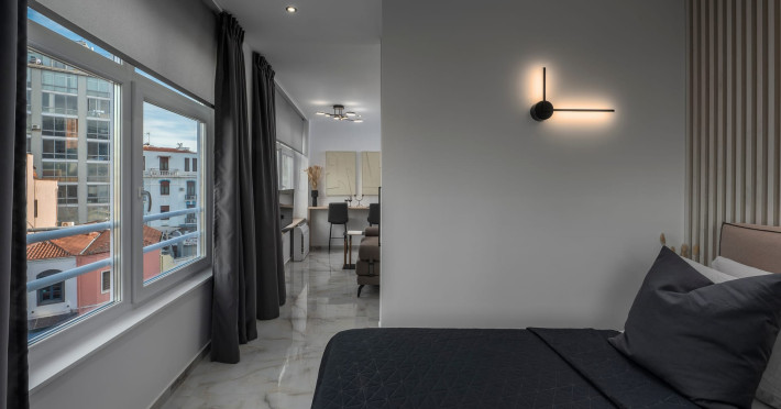 Our property features 4 fully renovated suites with modern design and spacious, comfortable interiors, located on the 3rd floor in the heart of Ladadika, one of Thessaloniki’s liveliest and most central neighborhoods.