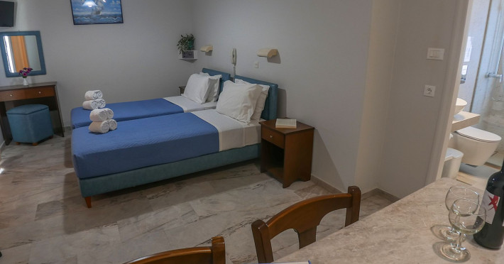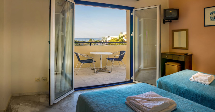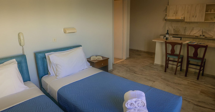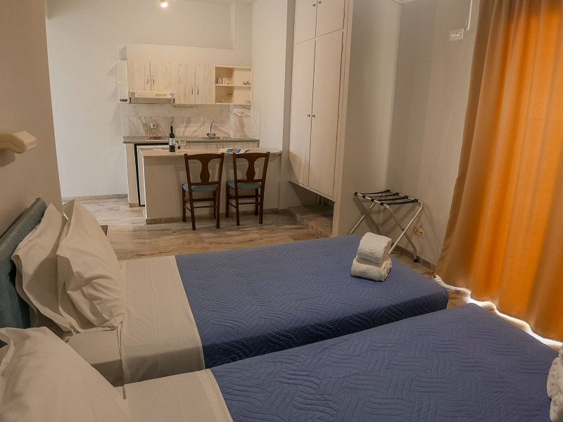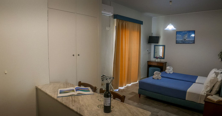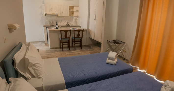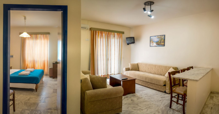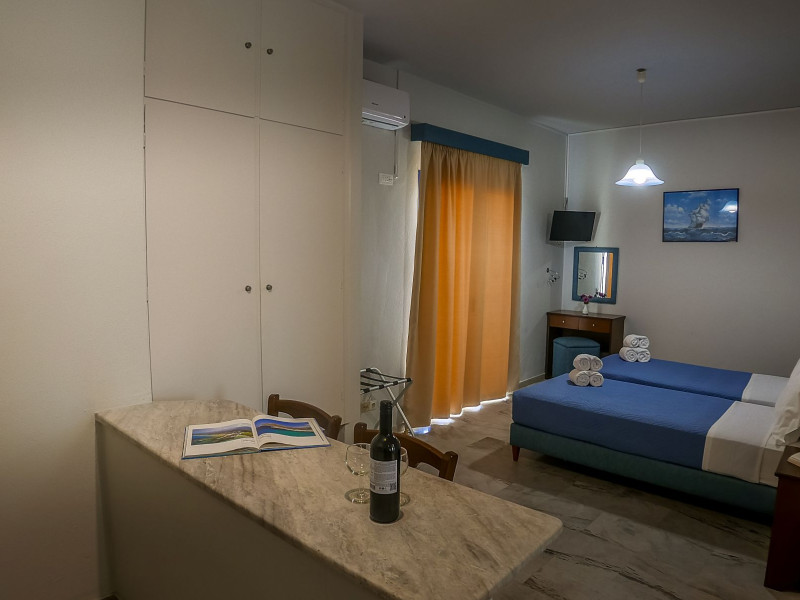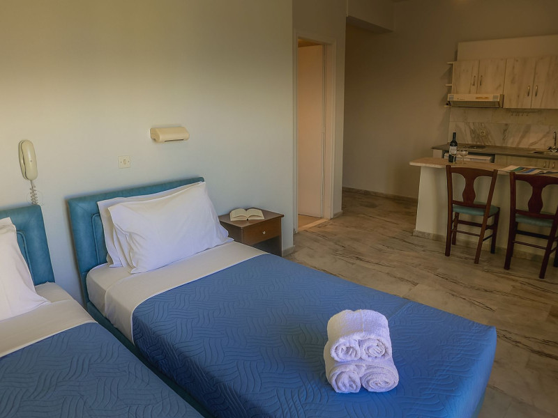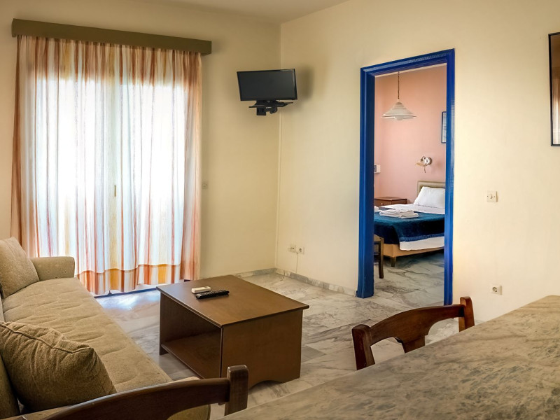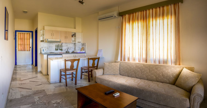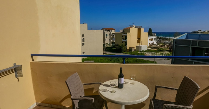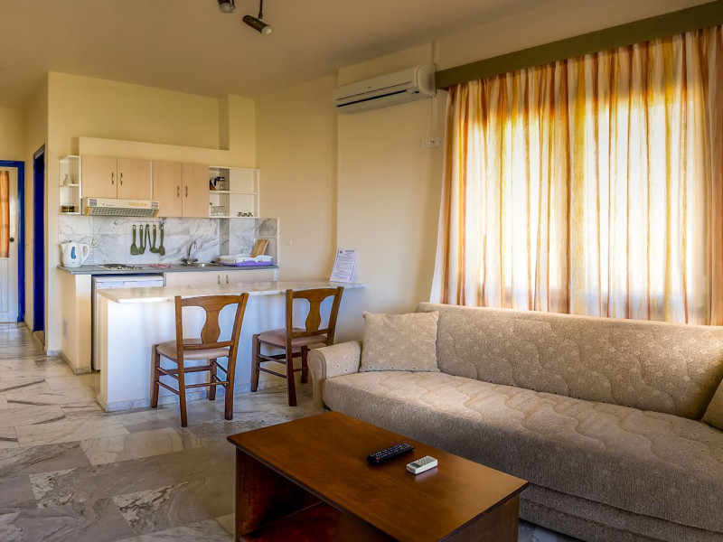 Combine traditional Cretan hospitality with the comfort of modern amenities. This creates a relaxed village atmosphere that is perfect for guests looking for an island getaway. The studios and apartments are comfortable and designed for couples, families and independent travelers. Guests can start the day with an alfresco breakfast in the fresh sea breeze, or unwind with a glass of local Cretan wine as the sun sets. The spacious balconies provide the perfect vantage point to soak in the tranquil village atmosphere.