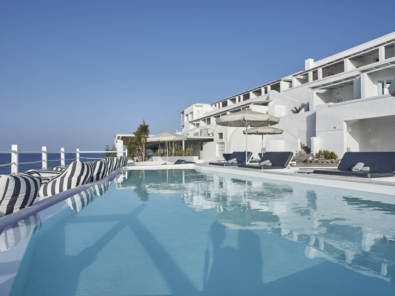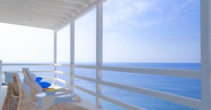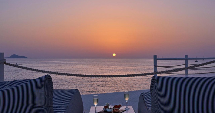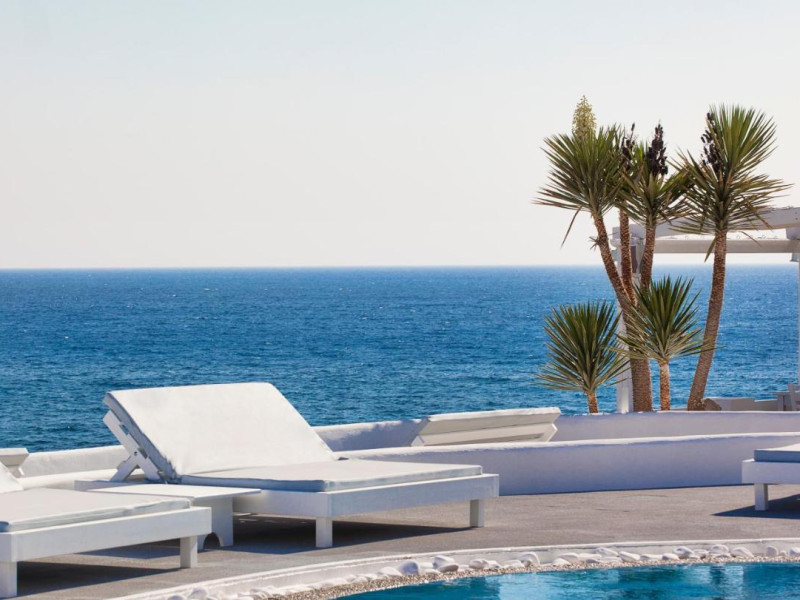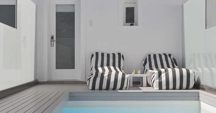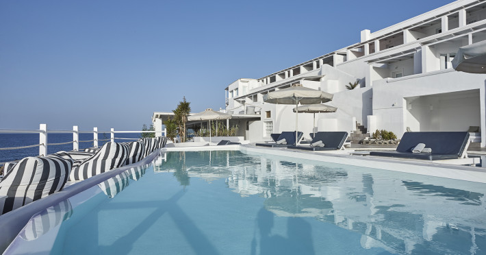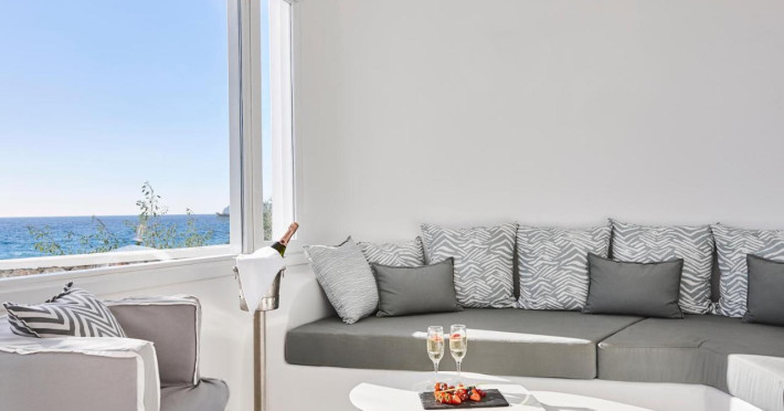 Notos Therme & Spa is located by the sea, at the secluded Vlychada on Santorini island. At the hotel, there is a great sense of relaxation with the quiet pace of the fishermen port and the marina, far away from the noise and crowds. The unique rural landscape with its impressive rocky formations is contrasted by open views to the sea and the blackness of the beach. The sea is visible from every room and suite.