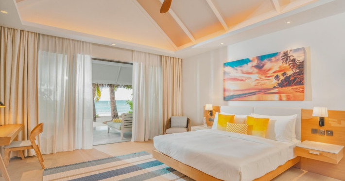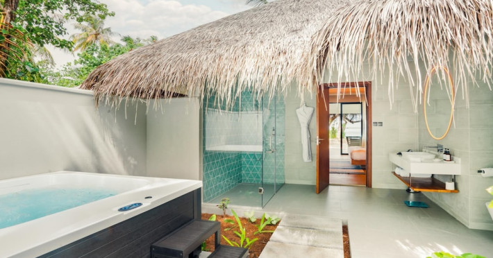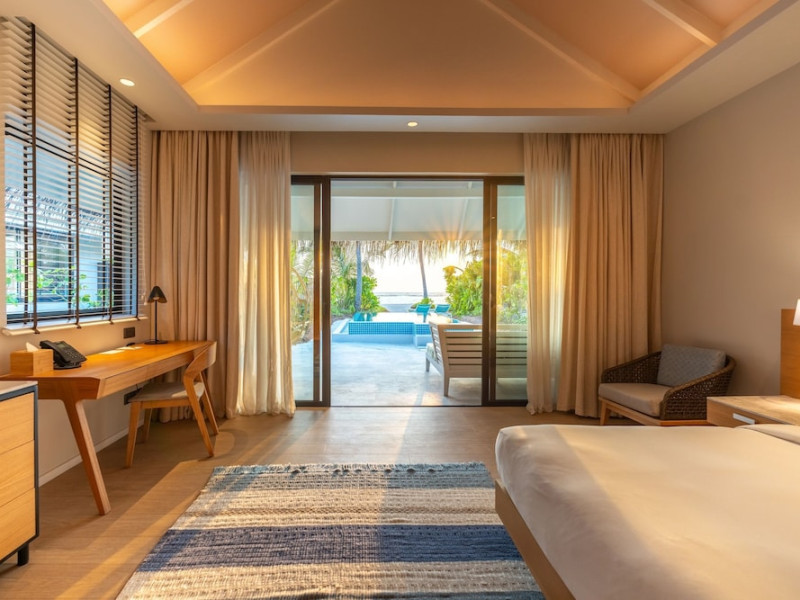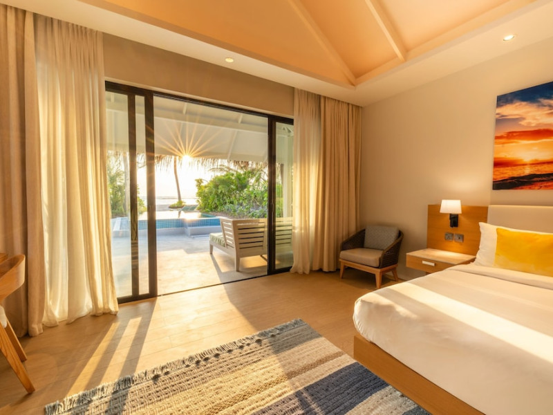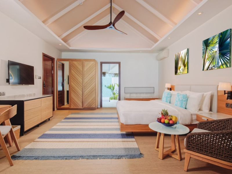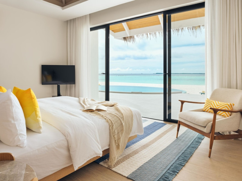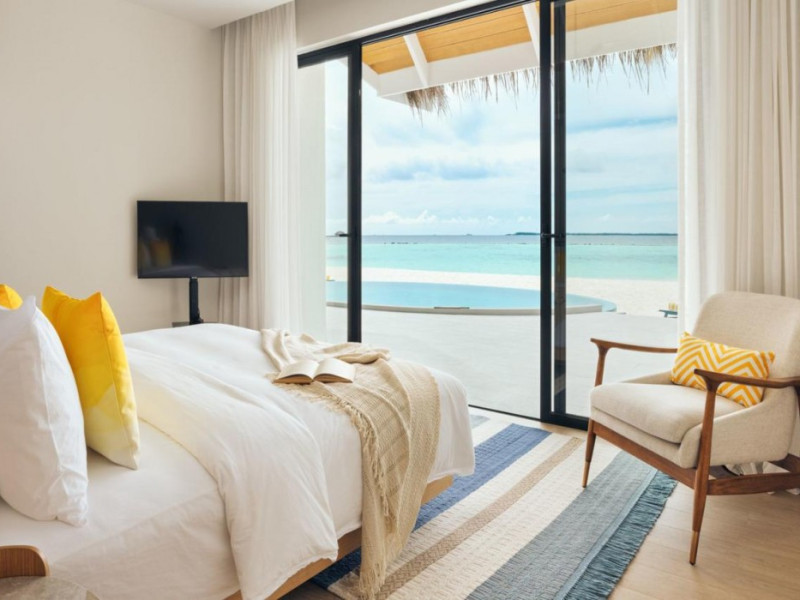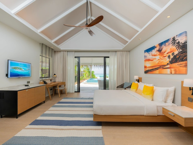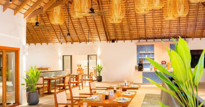 Nova Maldives in Vakaru offers 76 air-conditioned rooms with minibars, Smart TVs, memory foam beds, down comforters, Egyptian cotton sheets, private furnished balconies or patios, and private bathrooms featuring bathtubs or showers with rainfall showerheads and designer toiletries. Enjoy complimentary wireless internet access, satellite programming, a complimentary buffet breakfast (7:00 AM to 10:30 AM), and room service (limited hours). Onsite amenities include a spa with massages, body treatments, and facials; an outdoor pool; a 24-hour fitness center; barbecue grills; a poolside bar; five restaurants (including Soul Kitchen); a 24-hour front desk; multilingual staff; laundry facilities; and concierge services. All-inclusive rates are available, including meals and beverages at onsite dining establishments (charges may apply for some restaurants, special dinners and dishes, certain beverages, and other amenities). A roundtrip airport shuttle is available for a surcharge (limited hours). The resort is a 1-minute walk from Ari Atoll and an 8-minute walk from Dhigurah Beach. Maafushivaru Island Beach and Maafushivaru Island Jetty are 1.6 km away. Other nearby points of interest include Ranveli Beach (5 km), Villingilivaru Island Pier (5.2 km), Dhangethi Port (6.3 km), and Kuda Miskiy (6.3 km). Velana Intl. Airport (MLE) is 4.5 km from the property. The Nova Maldives is a hotel.