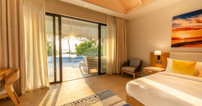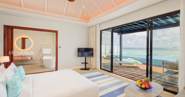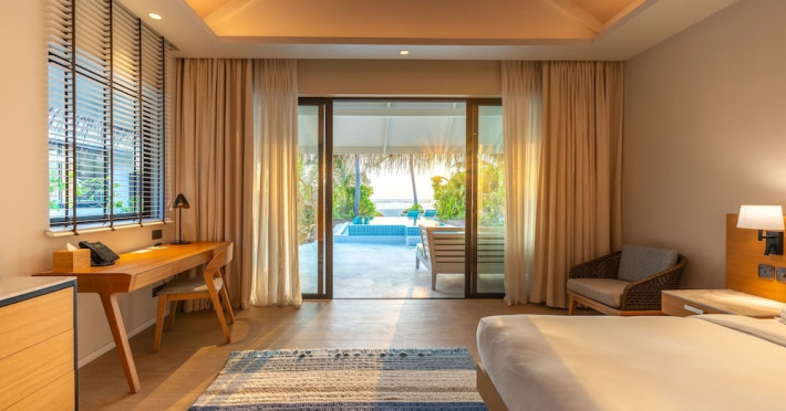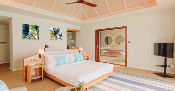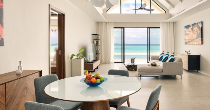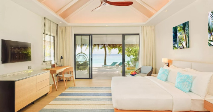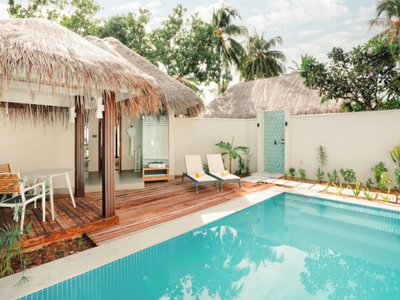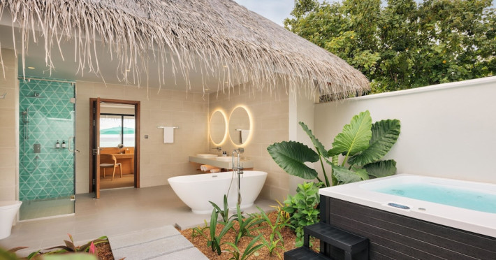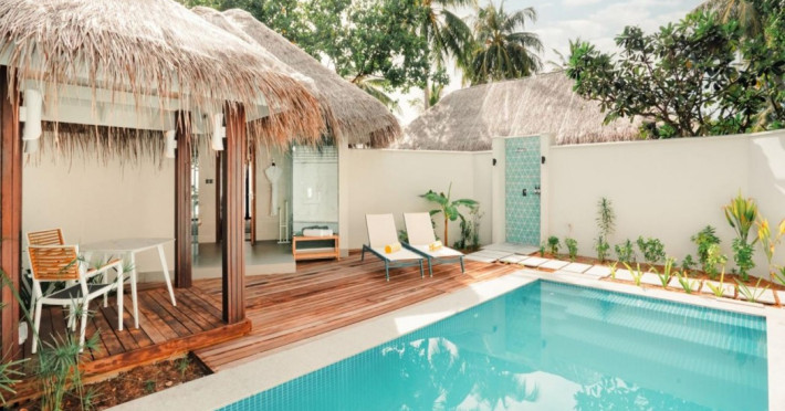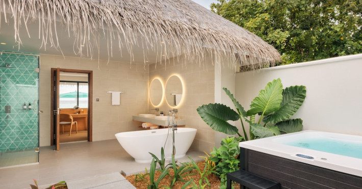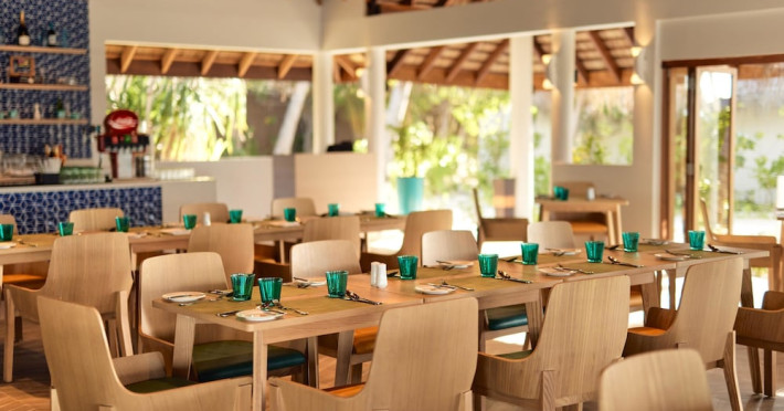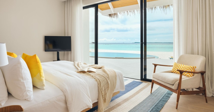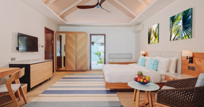 Nova Maldives in Vakaru offers 76 air-conditioned rooms with minibars, Smart TVs, memory foam beds, down comforters, Egyptian cotton sheets, private furnished balconies or patios, and private bathrooms featuring bathtubs or showers with rainfall showerheads and designer toiletries. Enjoy complimentary wireless internet access, satellite programming, a complimentary buffet breakfast (7:00 AM to 10:30 AM), and room service (limited hours). Onsite amenities include a spa with massages, body treatments, and facials; an outdoor pool; a 24-hour fitness center; barbecue grills; a poolside bar; five restaurants (including Soul Kitchen); a 24-hour front desk; multilingual staff; laundry facilities; and concierge services. All-inclusive rates are available, including meals and beverages at onsite dining establishments (charges may apply for some restaurants, special dinners and dishes, certain beverages, and other amenities). A roundtrip airport shuttle is available for a surcharge (limited hours). The resort is a 1-minute walk from Ari Atoll and an 8-minute walk from Dhigurah Beach. Maafushivaru Island Beach and Maafushivaru Island Jetty are 1.6 km away. Other nearby points of interest include Ranveli Beach (5 km), Villingilivaru Island Pier (5.2 km), Dhangethi Port (6.3 km), and Kuda Miskiy (6.3 km). Velana Intl. Airport (MLE) is 4.5 km from the property. The Nova Maldives is a hotel.
