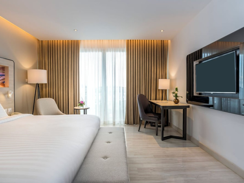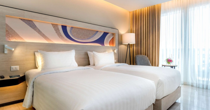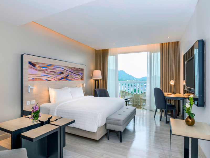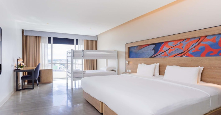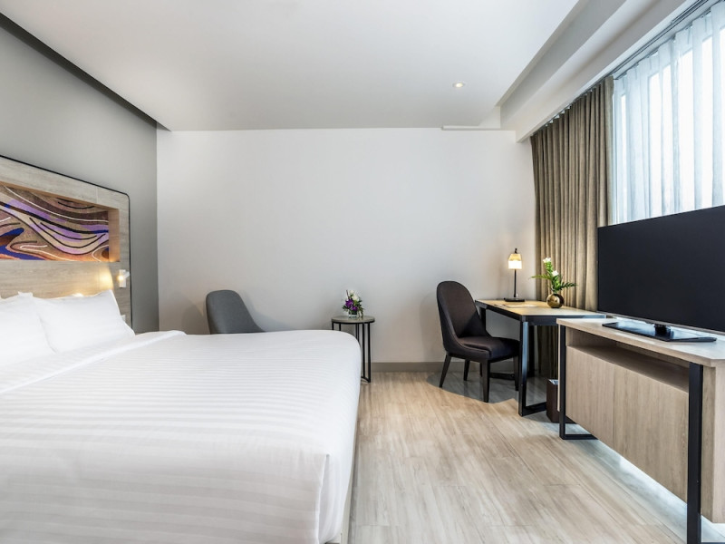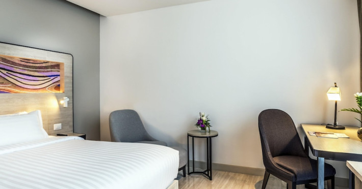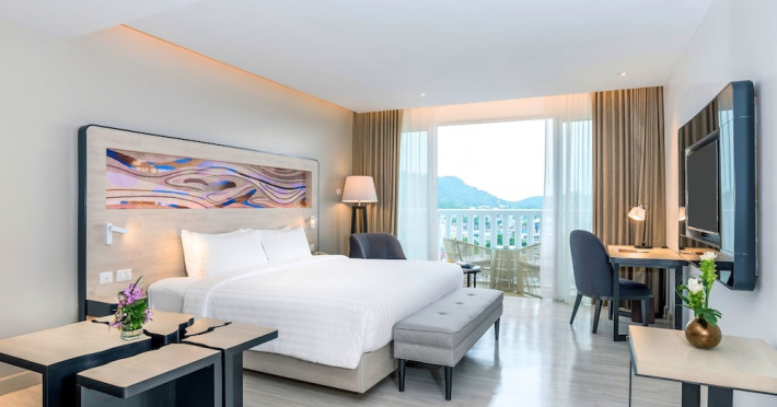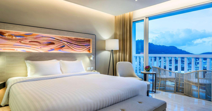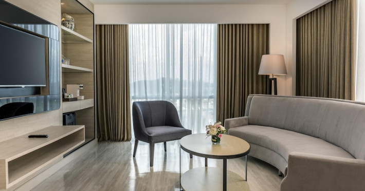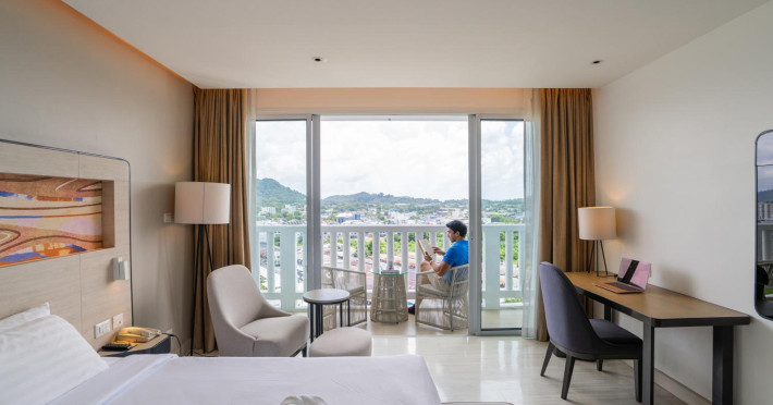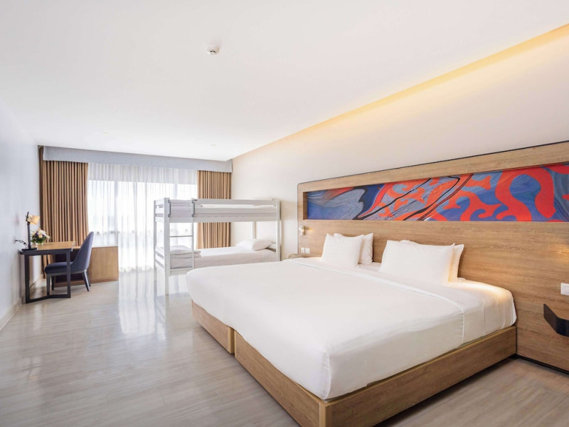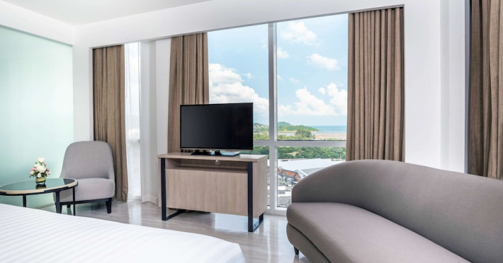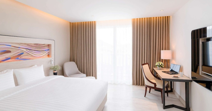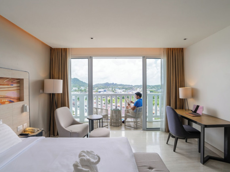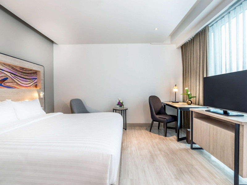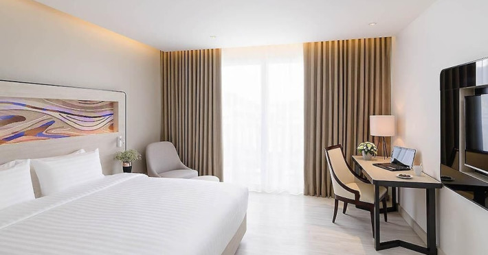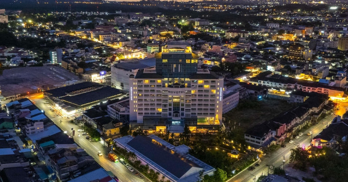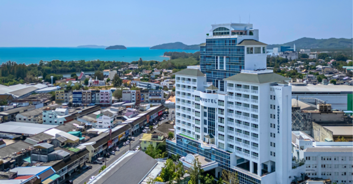 Novotel Phuket City Phokeethra - SHA Extra Plus, located in Phuket Town near the historic Old Town, offers 180 air-conditioned rooms with flat-screen satellite TVs, refrigerators, and private bathrooms with complimentary toiletries. Guests can enjoy amenities such as complimentary wireless internet access, an outdoor pool, a 24-hour fitness center, and a full-service spa offering massages and body treatments. Dining options include a restaurant serving local and international cuisine, 24-hour room service, and two bars/lounges. The hotel also provides concierge services, wedding services, a computer station, express check-in/check-out, and shuttle services (surcharge). Bike rentals and access to a free smart bus service are available for exploring the city. Phuket International Airport is approximately a 1-hour drive away. The Novotel Phuket City Phokeethra is a hotel.