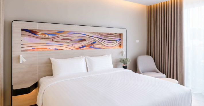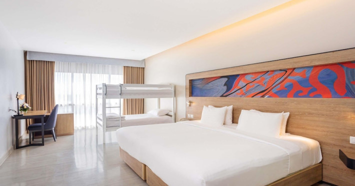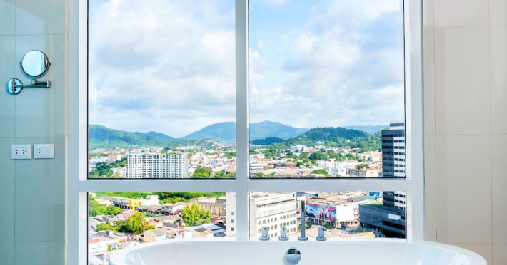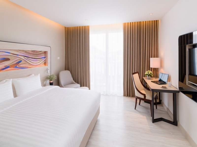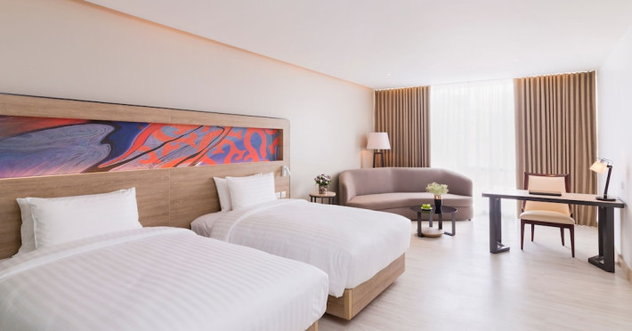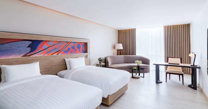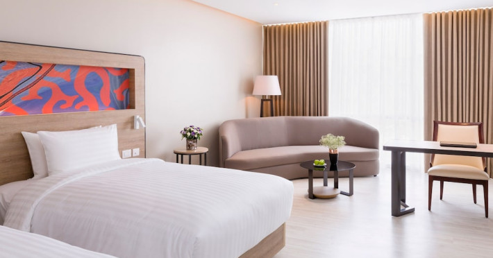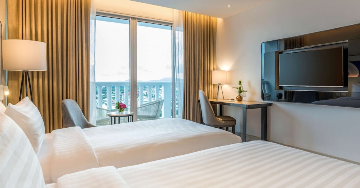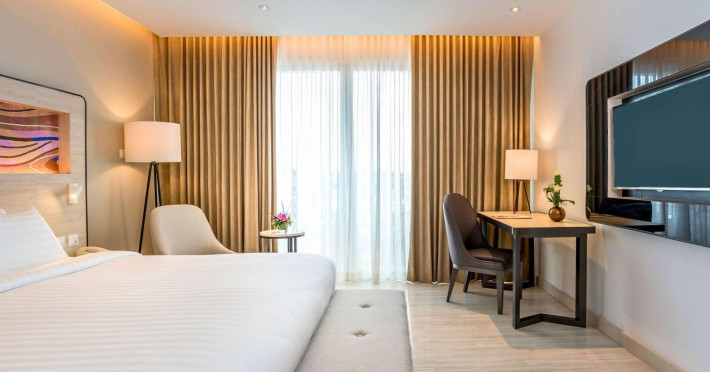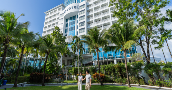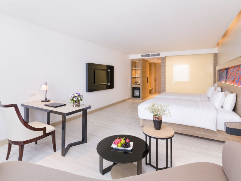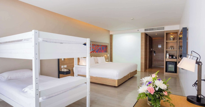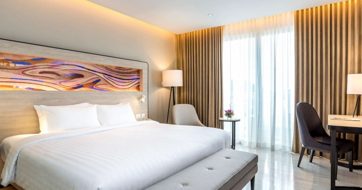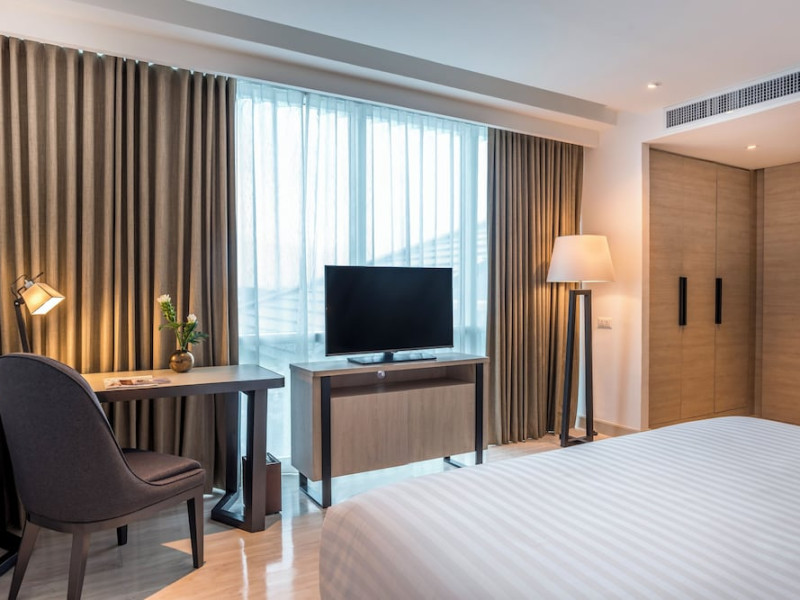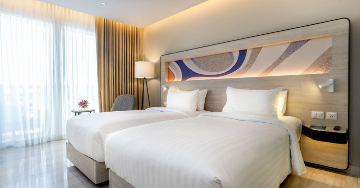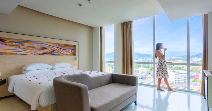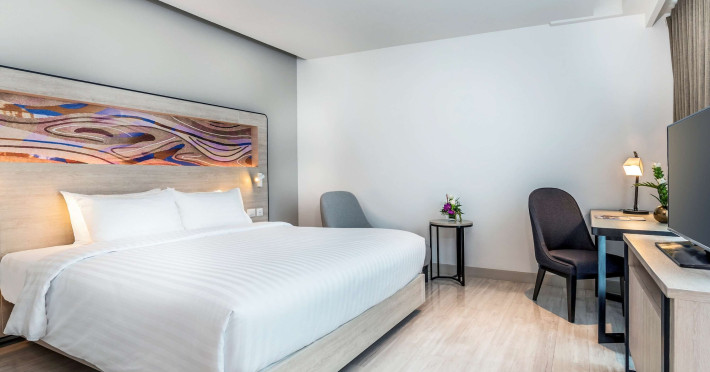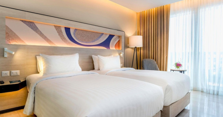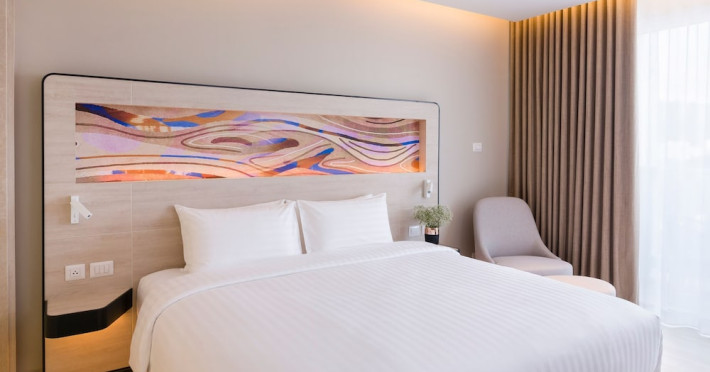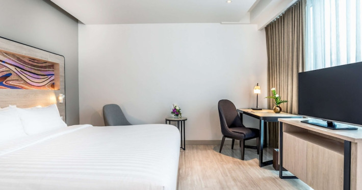 Novotel Phuket City Phokeethra - SHA Extra Plus, located in Phuket Town near the historic Old Town, offers 180 air-conditioned rooms with flat-screen satellite TVs, refrigerators, and private bathrooms with complimentary toiletries. Guests can enjoy amenities such as complimentary wireless internet access, an outdoor pool, a 24-hour fitness center, and a full-service spa offering massages and body treatments. Dining options include a restaurant serving local and international cuisine, 24-hour room service, and two bars/lounges. The hotel also provides concierge services, wedding services, a computer station, express check-in/check-out, and shuttle services (surcharge). Bike rentals and access to a free smart bus service are available for exploring the city. Phuket International Airport is approximately a 1-hour drive away. The Novotel Phuket City Phokeethra is a hotel.