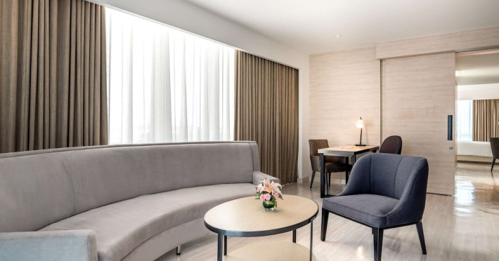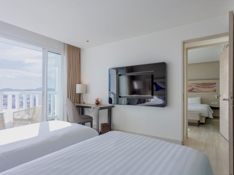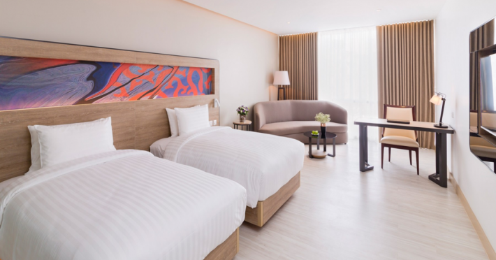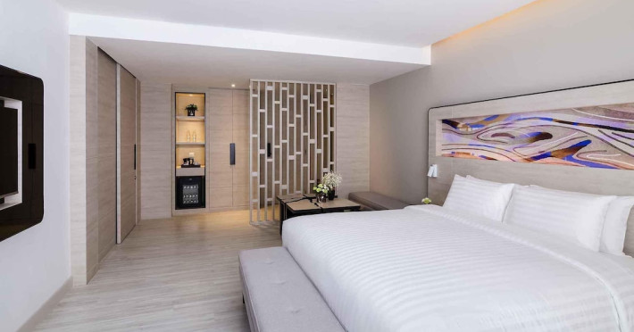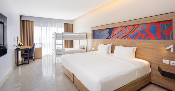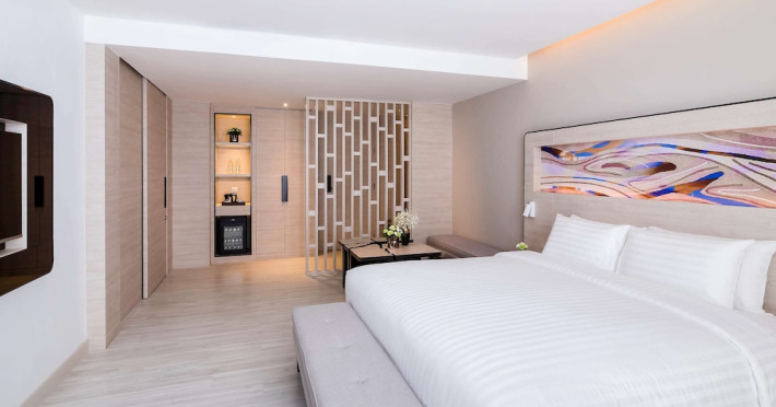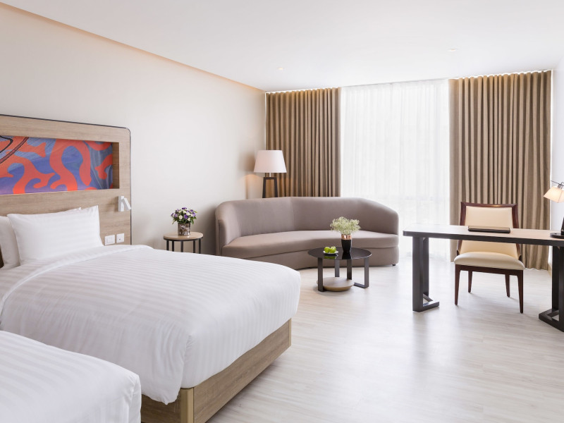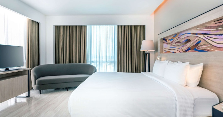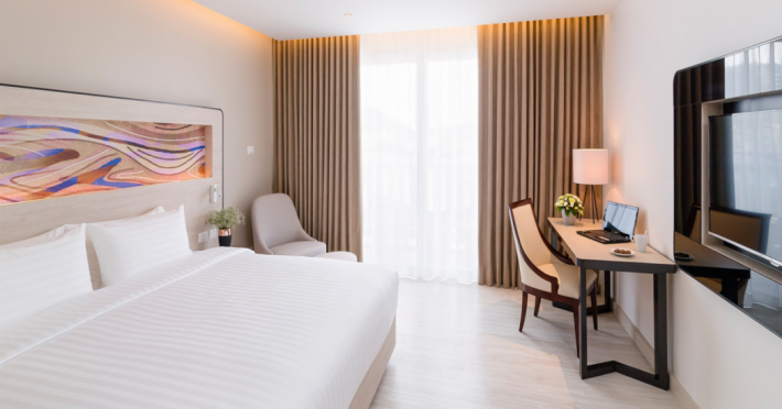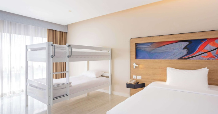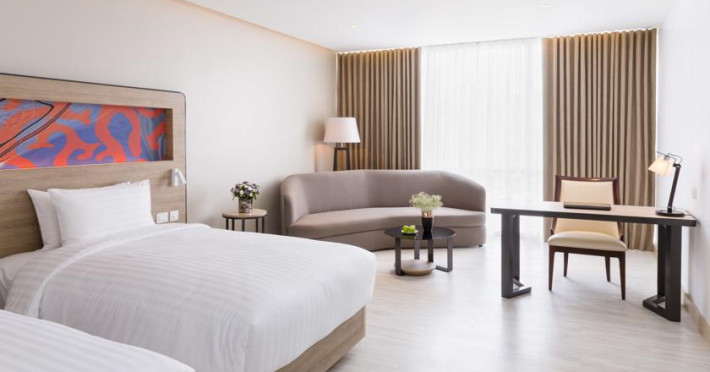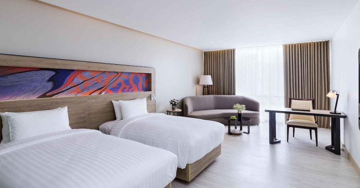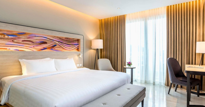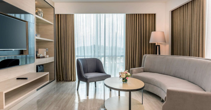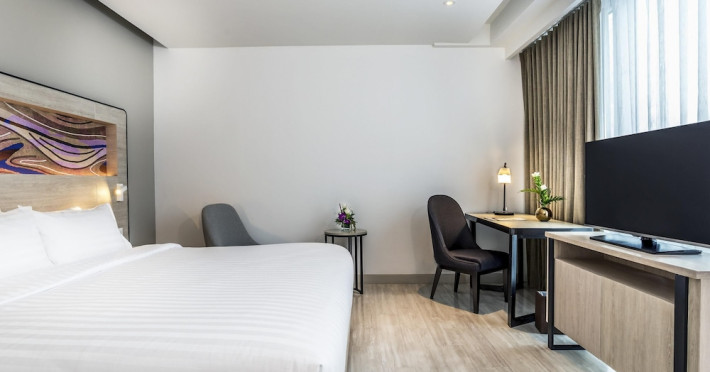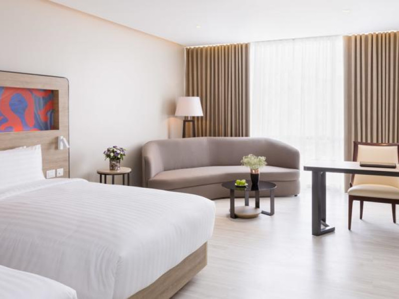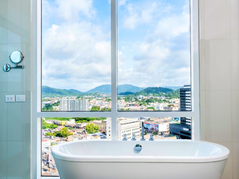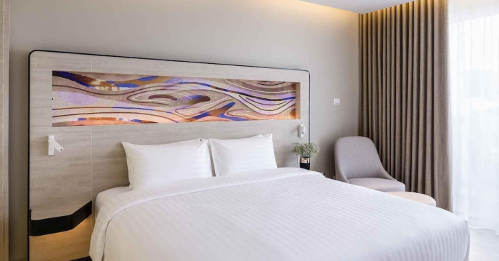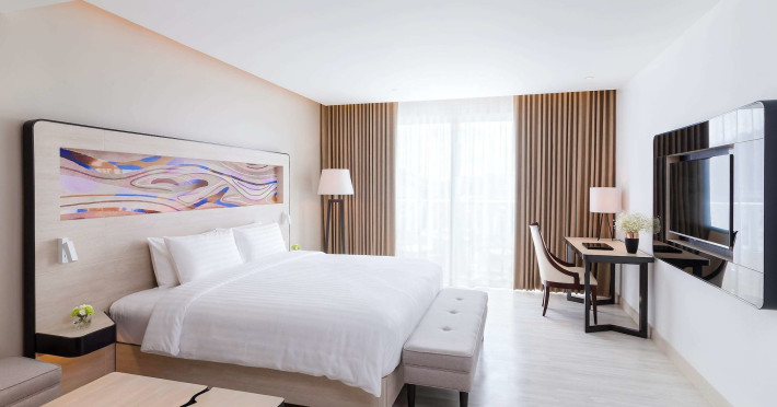 Novotel Phuket City Phokeethra - SHA Extra Plus, located in Phuket Town near the historic Old Town, offers 180 air-conditioned rooms with flat-screen satellite TVs, refrigerators, and private bathrooms with complimentary toiletries. Guests can enjoy amenities such as complimentary wireless internet access, an outdoor pool, a 24-hour fitness center, and a full-service spa offering massages and body treatments. Dining options include a restaurant serving local and international cuisine, 24-hour room service, and two bars/lounges. The hotel also provides concierge services, wedding services, a computer station, express check-in/check-out, and shuttle services (surcharge). Bike rentals and access to a free smart bus service are available for exploring the city. Phuket International Airport is approximately a 1-hour drive away. The Novotel Phuket City Phokeethra is a hotel.