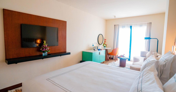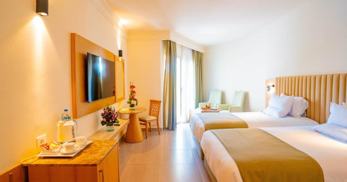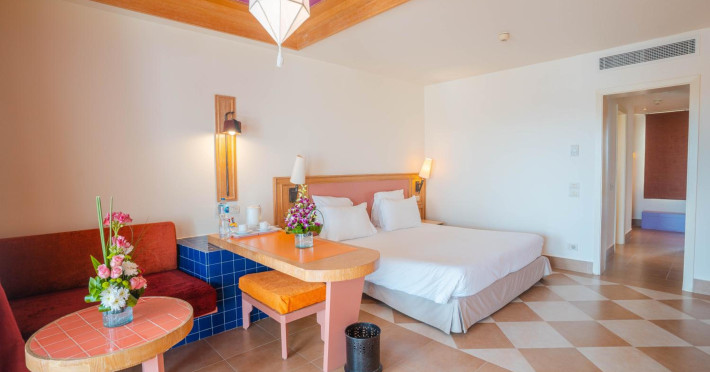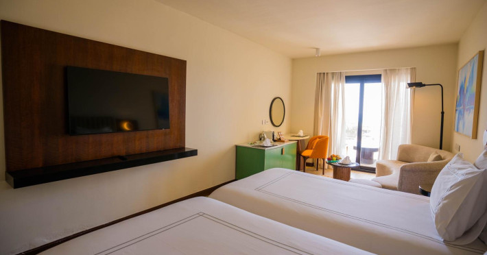 Novotel Sharm El-Sheikh, located in Naama Bay, boasts a private beach and five swimming pools. Air-conditioned rooms feature tiled floors, elegant furnishings, satellite TV, minibars, and tea/coffee making facilities. Some rooms offer balconies with panoramic views. The hotel comprises two wings: the Beach Wing and the Palm Wing. Three restaurants offer diverse cuisines, including Italian at Al Dente with Red Sea views. The Bedu Bar provides live entertainment. Amenities include a fitness centre, a games room with table tennis, a children’s playground, and a 24-hour front desk. Free private parking is available on-site. The hotel is less than 10 km from Sharm el-Sheikh International Airport. The Novotel Sharm El Sheikh Beach Side is a Beach Resort, Child Friendly, Honeymoon, Tourist hotel. The nightlife/restaurants are located in the hotel.