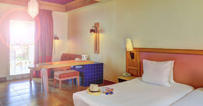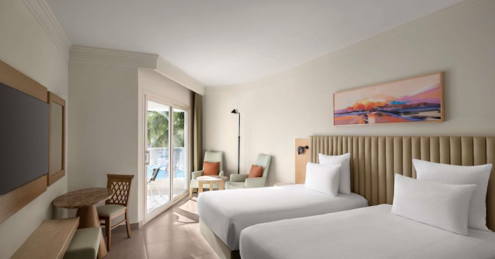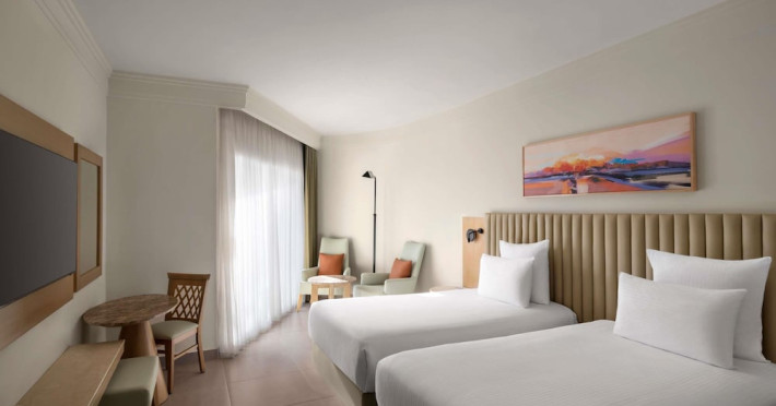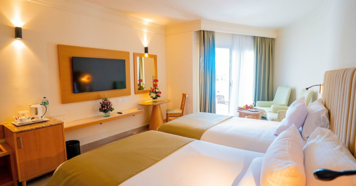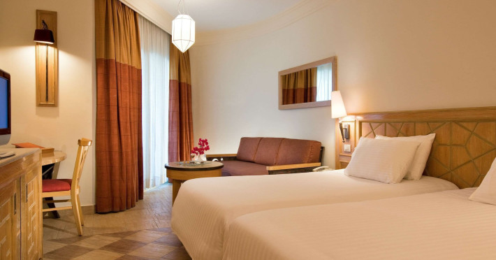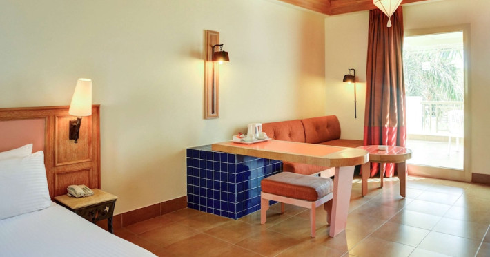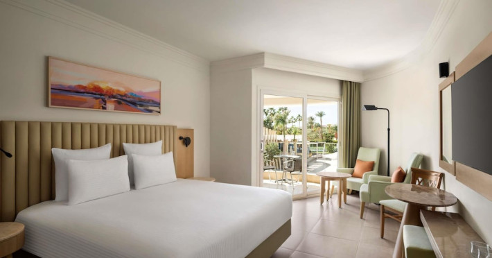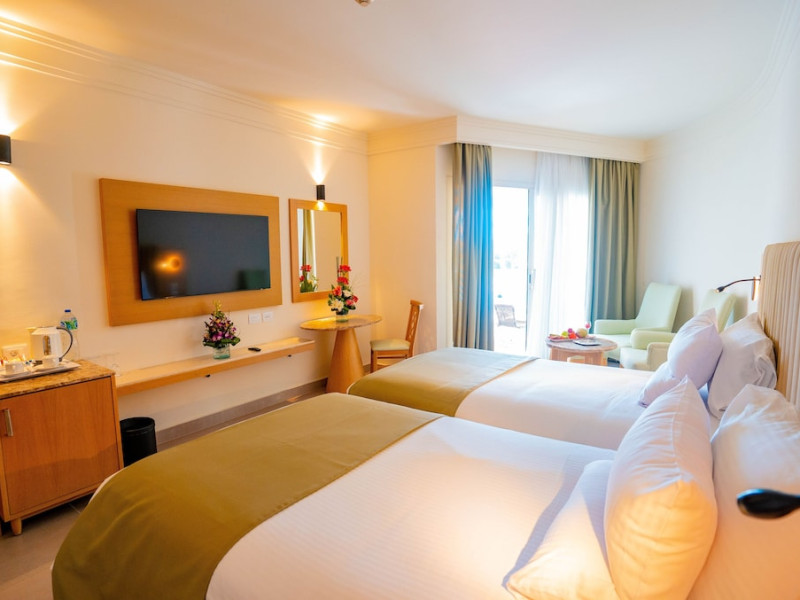 Located in central Sharm El Sheikh, Novotel Sharm El Sheikh Palm Side is near Naama Bay Beach and a short drive from Domina Coral Bay Congress Centre. This beach hotel offers 382 air-conditioned rooms featuring minibars, LCD televisions with satellite channels, private bathrooms with showers, designer toiletries, hair dryers, phones, safes, and desks. Guests can enjoy 24-hour room service, relax at the spa with massages, body treatments, and facials, or spend time at the private beach and one of the 4 outdoor swimming pools. Dining options include 4 restaurants, a coffee shop/cafe, and multiple bars, including beach and poolside options. All-inclusive rates are available. Amenities include a 24-hour business center, concierge services, dry cleaning/laundry services, an arcade/game room, and conference space and a meeting room. A roundtrip airport shuttle is available (surcharge), and limited onsite parking is offered. Nearby attractions include Ras Mohammed National Park, the Red Sea, and Cleo Park. The Novotel Sharm El Sheikh Palm Side is a Beach Resort, Leisure, Tourist hotel. The nightlife/restaurants are located in the hotel.