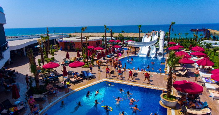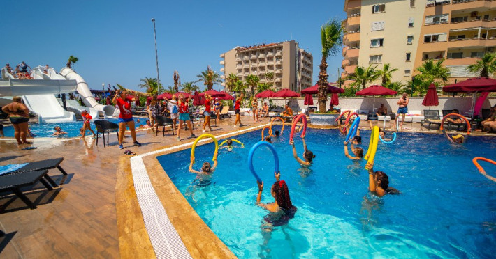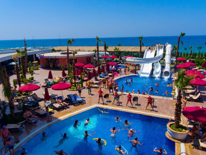 Facilitati hotel: Oaspetii pot beneficia de 4 piscine exterioare, 1 piscina interioara, piscina pentru copii, sezlonguri si umbrele, parcare, kids club, yoga, fitness, aerobic, spa, darts, programe de divertisment, spectacole.O gama variata de mancaruri si bauturi in cele 6 restaurante si 9 baruri, piscina, loc de joaca, tobogane, kids club.