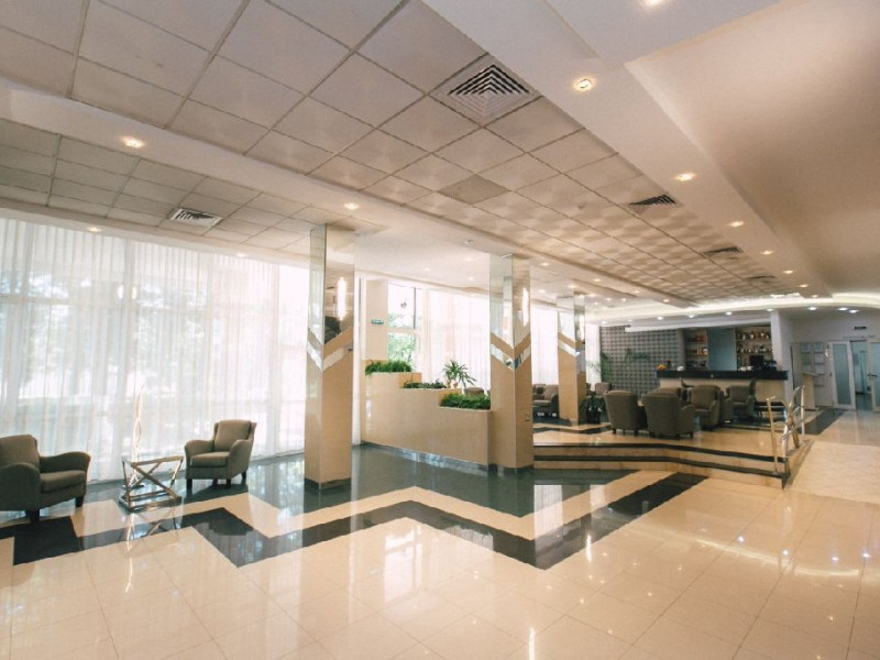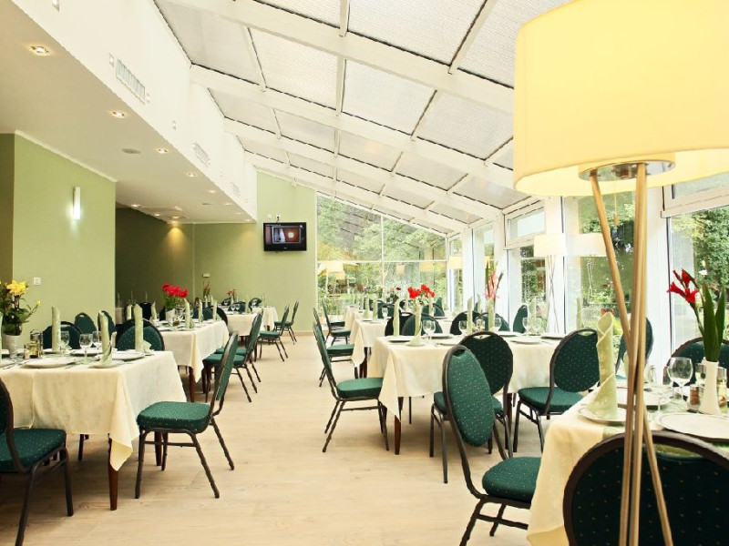 Hotelul dispune de: 68 camere duble, 4 de camere single si 4 apartament, restaurant, terasa, sala de conferinta (20 locuri), piscine interioare si exterioare (hotel Termal), sauna (hotel Termal) , sala fitness (hotel Termal), baza de tratament (hotel Termal), loc de joaca in interiorul hotelului si in exterior, parcare proprie.