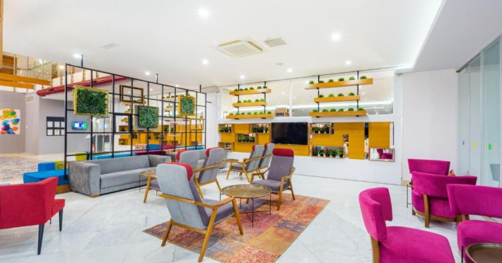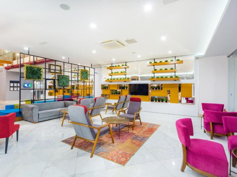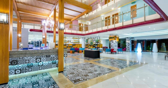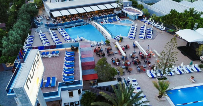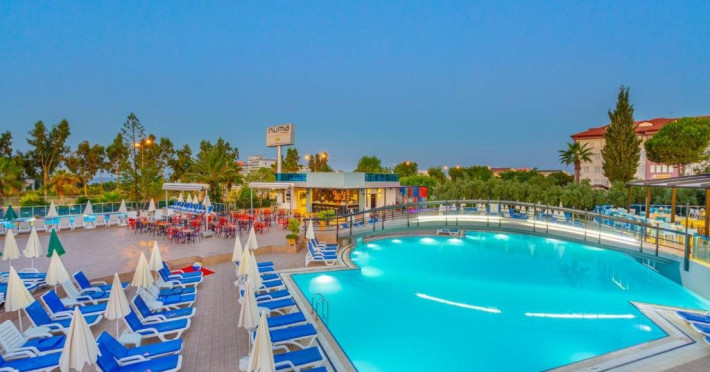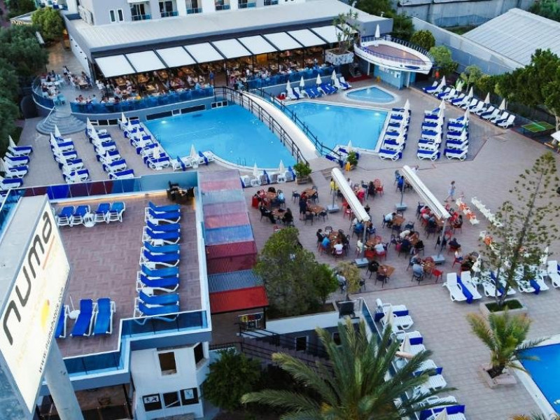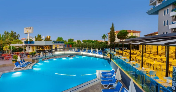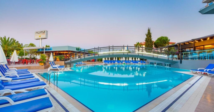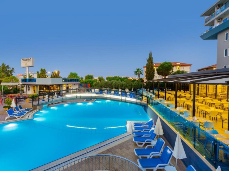 Descriere: Parte a lantului NUMA HOTELS, Numa Konaktepe Hotel ofera servicii de patru stele in regim all inclusive si pune la dispozitia oaspetilor facilitati precum transfer privat gratuit de la si/sau catre aeroport, parcare privata gratuita, sase piscine, acces imediat la plaja, bancomat si schimb valutar.