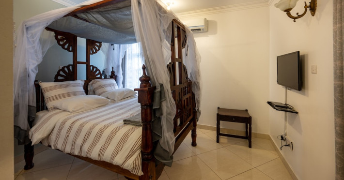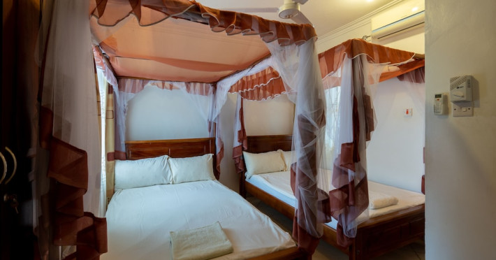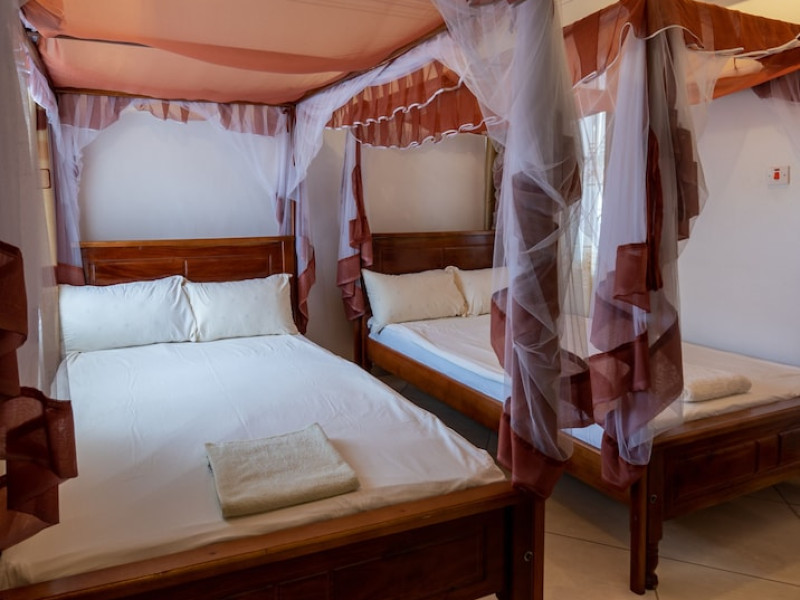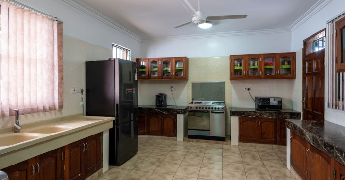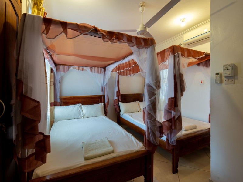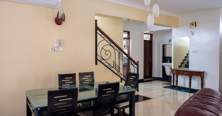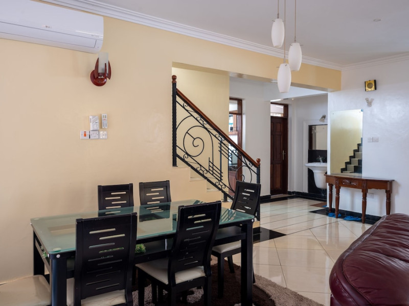 With a stay at Nyali Villa in Mombasa, you'll be convenient to Voyager Beach and Fort Jesus. This villa is within the vicinity of Bamburi Beach. Make yourself at home in one of the 5 air-conditioned rooms featuring refrigerators and microwaves. Prepare your meals in the shared/communal kitchen. Flat-screen televisions and DVD players are provided for your entertainment, while complimentary wireless Internet access keeps you connected. Private bathrooms with bathtubs or showers feature bidets and slippers. Take in the views from a garden and make use of amenities such as complimentary wireless Internet access and a television in a common area. Featured amenities include luggage storage, laundry facilities, and a water dispenser. A roundtrip airport shuttle is provided for a surcharge (available on request), and free self parking is available onsite.