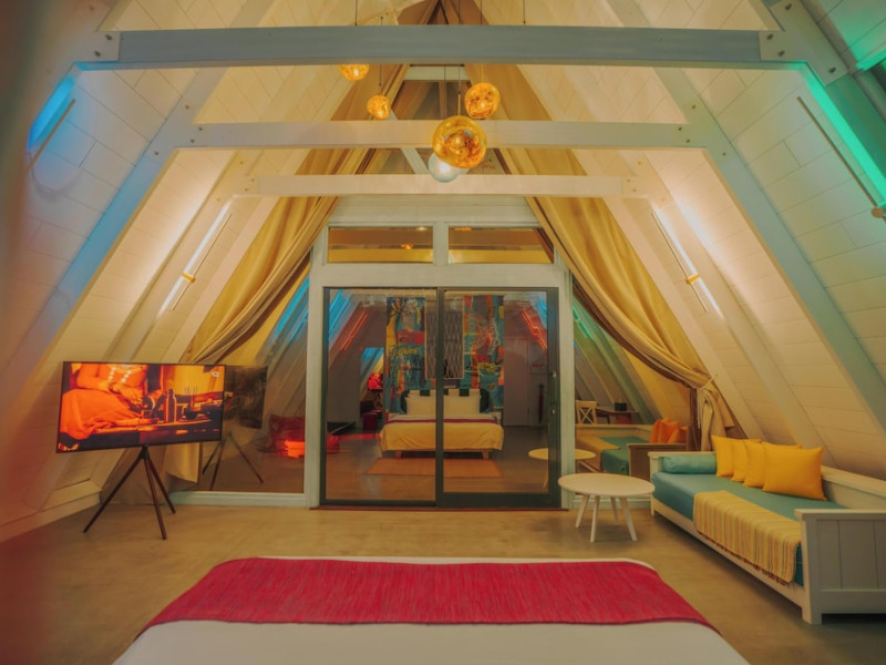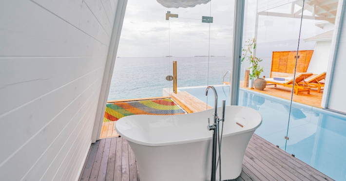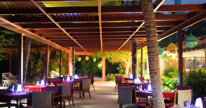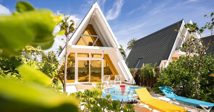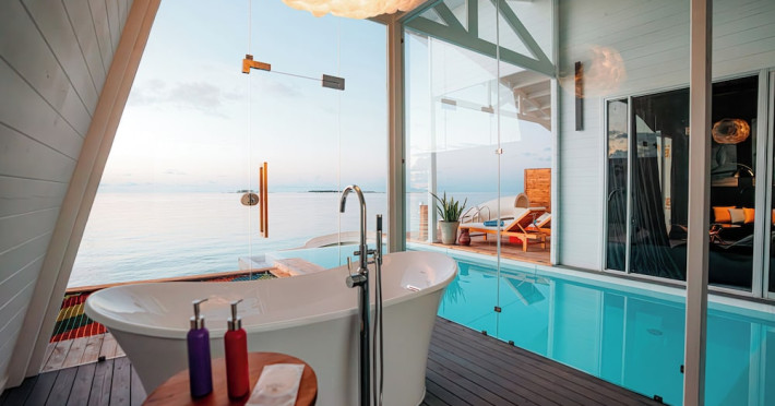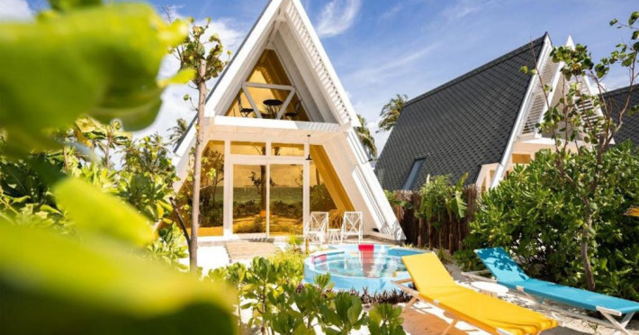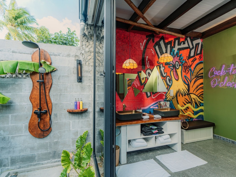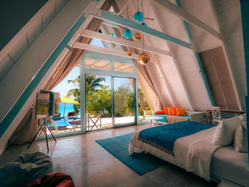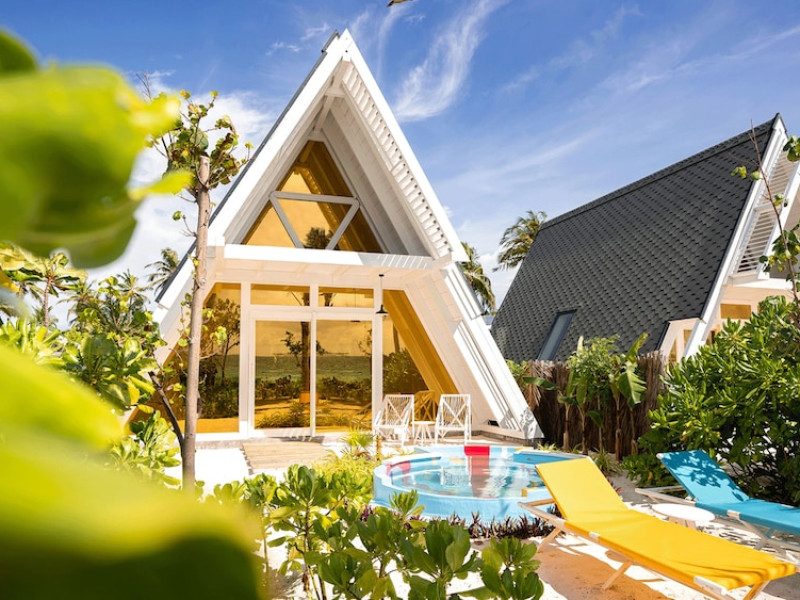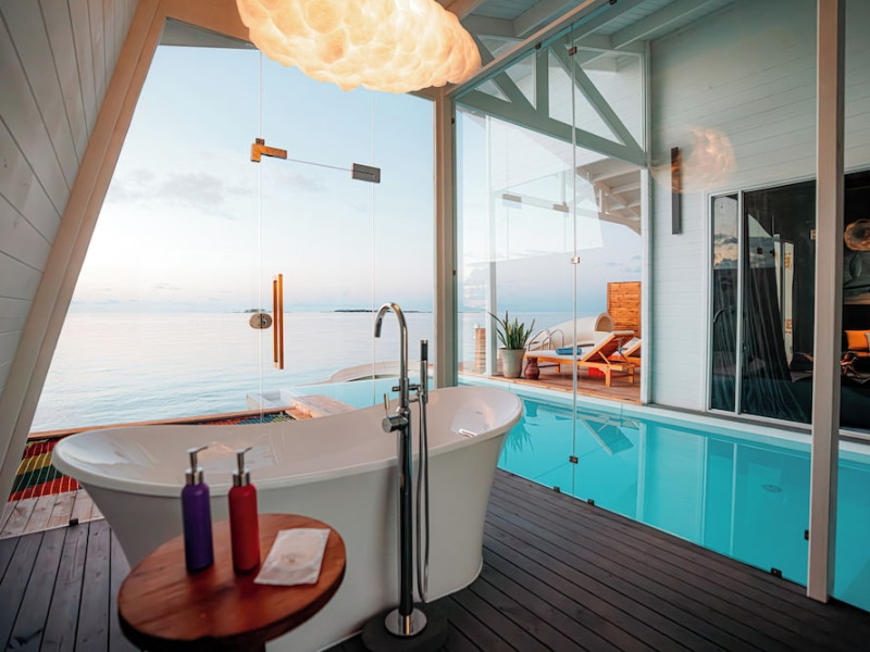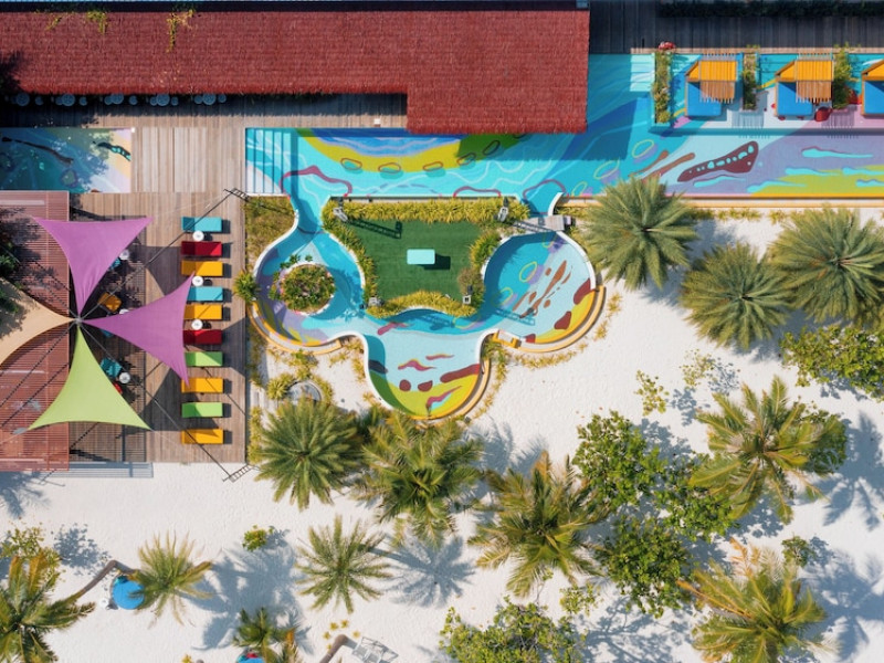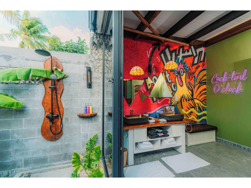 Located in the North Male Atoll in the Maldives, Oaga Art Resort Maldives is a 5-star Art Deco resort offering a private beach area, garden, and a tranquil escape with crystal-clear waters and lush vegetation. The resort features 60 individually decorated guestrooms with private pools, balconies or patios, air conditioning, flat-screen TVs with satellite channels, complimentary wireless internet access, desks, and safes. Bathrooms include showers, complimentary toiletries, and hair dryers. Guests can enjoy 2 outdoor swimming pools, a full-service spa with body treatments, a fitness center, and a kids' club. Dining options include 2 restaurants, a coffee shop/cafe, and 24-hour room service. Guests can enjoy a complimentary buffet breakfast, a daily reception, and drinks at the 2 bars/lounges, 2 beach bars, and 2 poolside bars. All-inclusive rates are available and include meals and beverages at onsite dining establishments; some charges may apply for certain restaurants, special meals, and beverages. The resort offers concierge services, babysitting (surcharge), free shuttle service, karaoke, laundry facilities, and a safe deposit box at the front desk. Activities include snorkeling, diving, yoga classes, canoeing, billiards, and darts. Excursions such as sunset cruises and fishing trips are available. The resort is approximately 48.7 km from Velana International Airport (MLE). The 24-hour front desk offers multilingual assistance (English, French, Hindi and Italian). The Oaga Art Resort is a hotel.