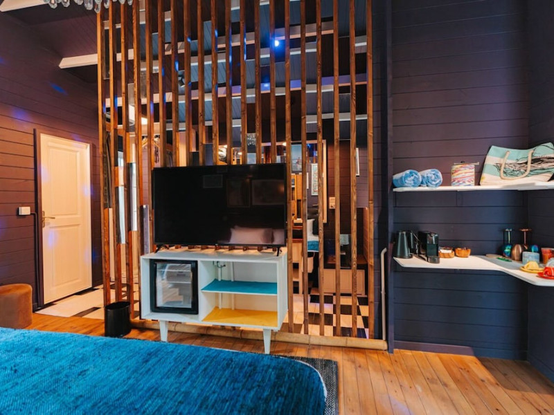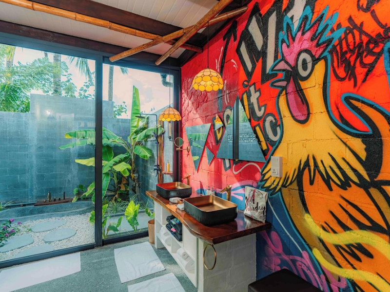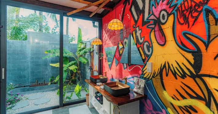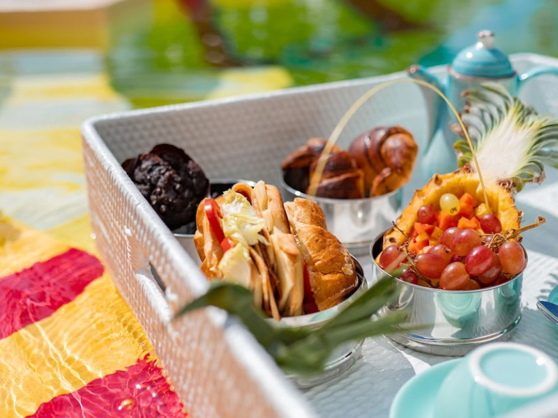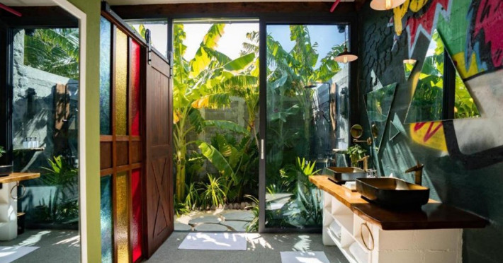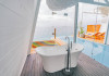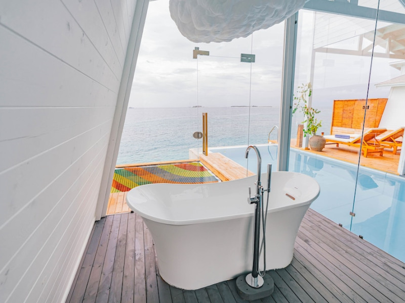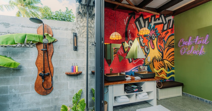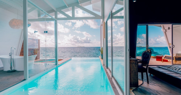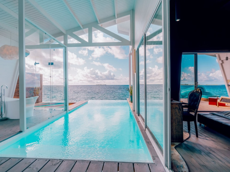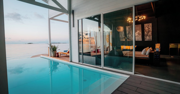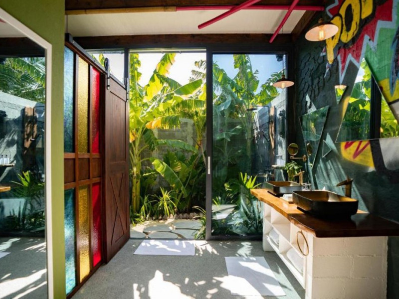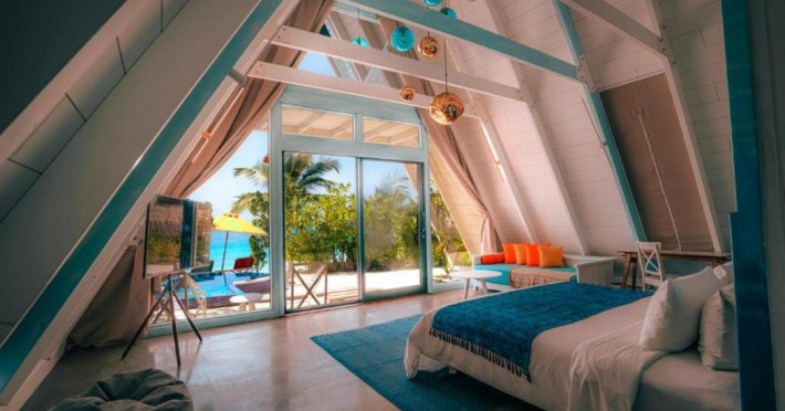 Located in the North Male Atoll in the Maldives, Oaga Art Resort Maldives is a 5-star Art Deco resort offering a private beach area, garden, and a tranquil escape with crystal-clear waters and lush vegetation. The resort features 60 individually decorated guestrooms with private pools, balconies or patios, air conditioning, flat-screen TVs with satellite channels, complimentary wireless internet access, desks, and safes. Bathrooms include showers, complimentary toiletries, and hair dryers. Guests can enjoy 2 outdoor swimming pools, a full-service spa with body treatments, a fitness center, and a kids' club. Dining options include 2 restaurants, a coffee shop/cafe, and 24-hour room service. Guests can enjoy a complimentary buffet breakfast, a daily reception, and drinks at the 2 bars/lounges, 2 beach bars, and 2 poolside bars. All-inclusive rates are available and include meals and beverages at onsite dining establishments; some charges may apply for certain restaurants, special meals, and beverages. The resort offers concierge services, babysitting (surcharge), free shuttle service, karaoke, laundry facilities, and a safe deposit box at the front desk. Activities include snorkeling, diving, yoga classes, canoeing, billiards, and darts. Excursions such as sunset cruises and fishing trips are available. The resort is approximately 48.7 km from Velana International Airport (MLE). The 24-hour front desk offers multilingual assistance (English, French, Hindi and Italian). The Oaga Art Resort is a hotel.