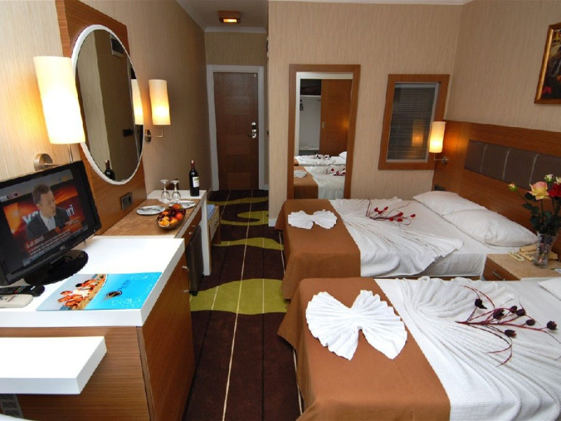 Facilitati hotel: Hotelul ofera oaspetilor sai urmatoarele facilitati: restaurant, snack restaurant, 3 baruri, patiserie, gozleme, 2 piscine exterioare, o piscina pentru copii cu 2 tobogane, centru Spa, animatie soft, gimnastica in apa, volei pe plaja, tenis de masa, centru fitness, baie turceasca, sauna, internet cafe. Servicii cu plata: fresh-uri din fructe, inghetata ambalata, unele bauturi de import, berea la barul de pe plaja, cafea turceasca, sporturi acvatice, masaj si alte tratamente in centrul Spa, room service, telefon, fax, servicii de curatatorie, mini club (4-12 ani), mini disco, piscina pentru copii.