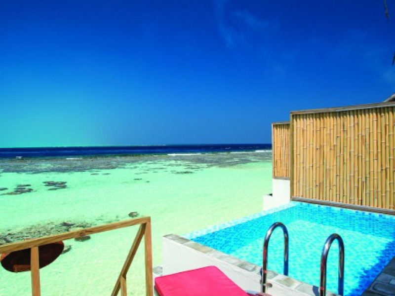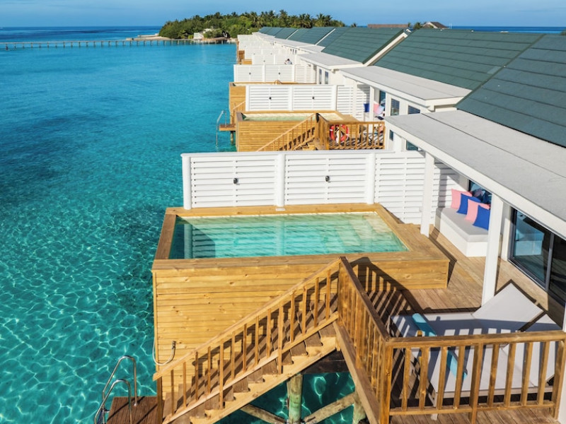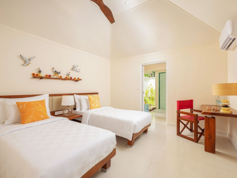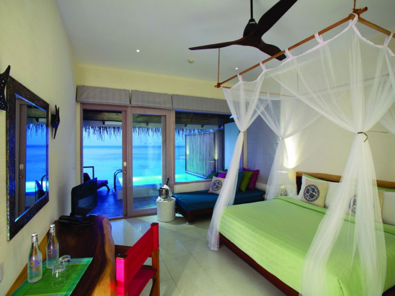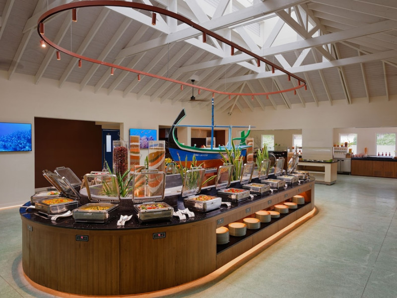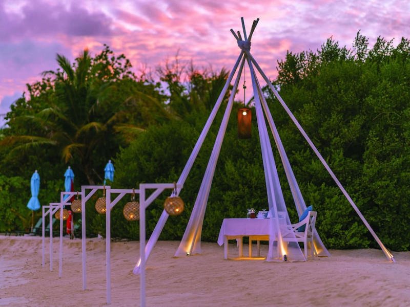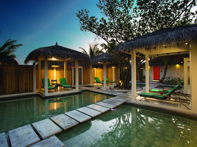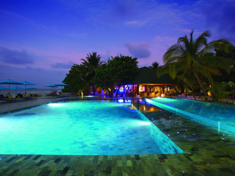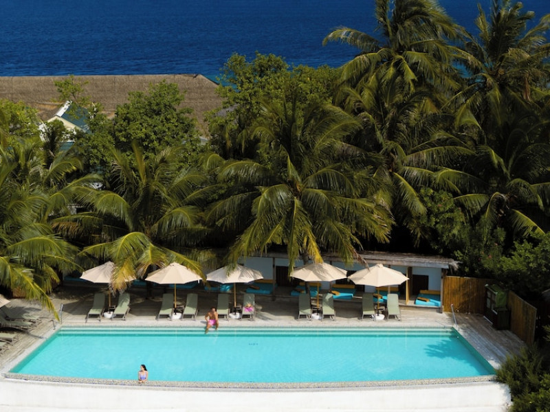 OBLU NATURE Helengeli - All-Inclusive with Free Transfers is a secluded Maldivian island resort featuring 153 air-conditioned bungalows, two outdoor swimming pools, a spa offering Swedish, Thai, and aromatherapy massages, and a dive school with multilingual PADI instructors. The resort offers a complimentary breakfast buffet daily from 7:00 AM to 10:30 AM, and an additional restaurant, THE SPICE, serving international cuisine. A bar/lounge and poolside bar are also available. All-inclusive rates include meals and beverages at onsite dining establishments (charges may apply for some restaurants, special dinners, certain beverages, and other amenities). Additional amenities include complimentary Wi-Fi, concierge services, babysitting (surcharge), a steam room, a fitness center, complimentary newspapers in the lobby, dry cleaning/laundry services, and a 24-hour front desk. Guestrooms include free minibar items, flat-screen televisions, Tempur-Pedic beds with Egyptian cotton sheets, and bathrooms with rainfall showerheads and complimentary toiletries. Nearby attractions include Kassan Faru (17.1 km), Asdhoo Island (21.6 km), and various dive sites and beaches within a 35 km radius. Velana International Airport (MLE) is 50.3 km away. The OBLU NATURE Helengeli by SENTIDO is a hotel.