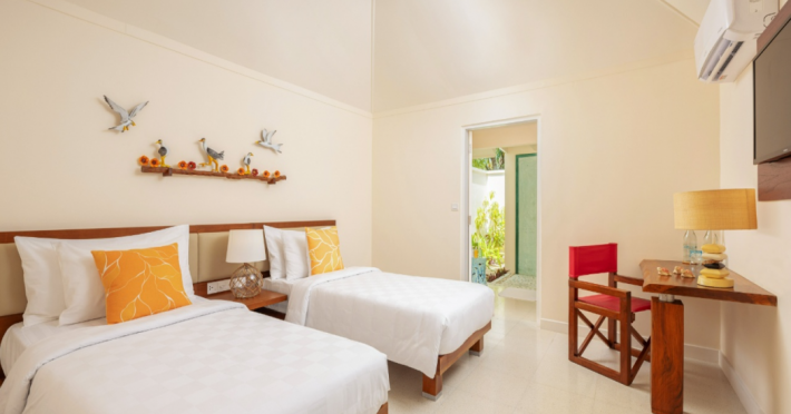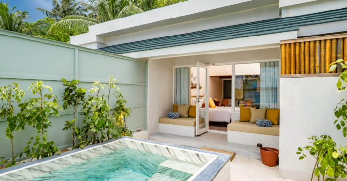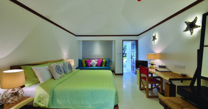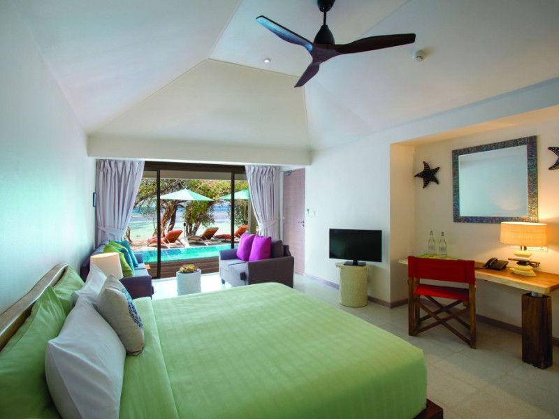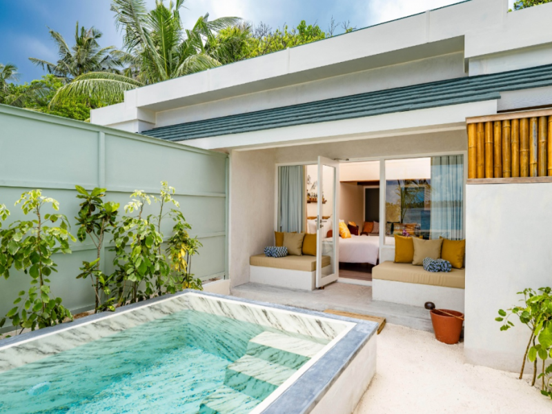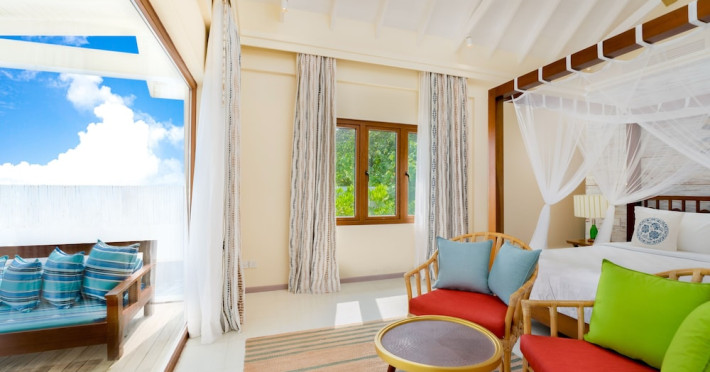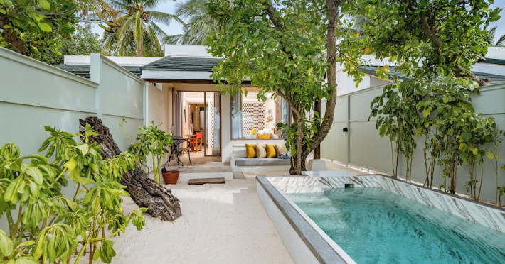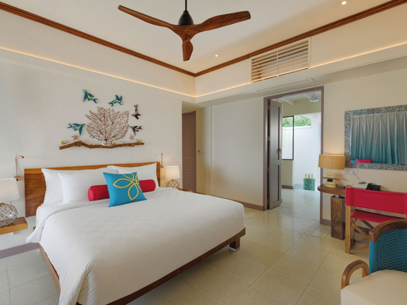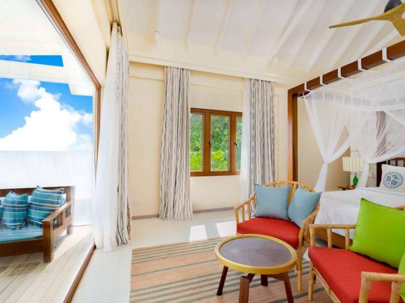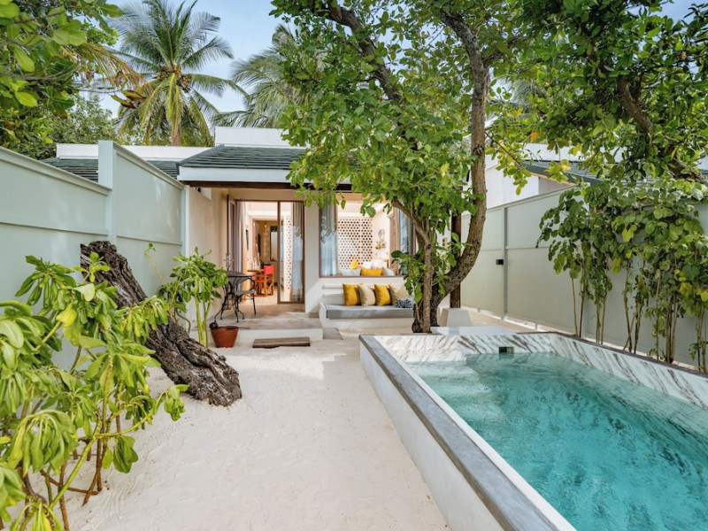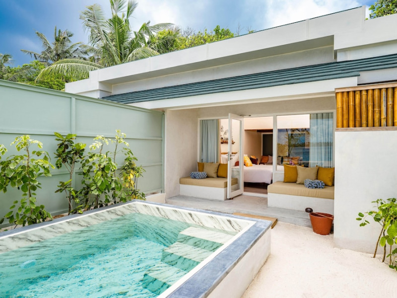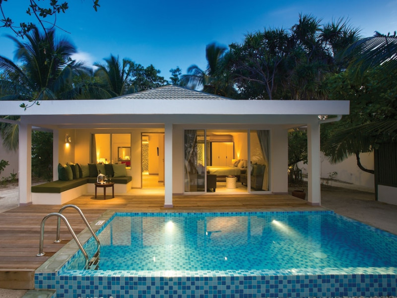 OBLU NATURE Helengeli - All-Inclusive with Free Transfers is a secluded Maldivian island resort featuring 153 air-conditioned bungalows, two outdoor swimming pools, a spa offering Swedish, Thai, and aromatherapy massages, and a dive school with multilingual PADI instructors. The resort offers a complimentary breakfast buffet daily from 7:00 AM to 10:30 AM, and an additional restaurant, THE SPICE, serving international cuisine. A bar/lounge and poolside bar are also available. All-inclusive rates include meals and beverages at onsite dining establishments (charges may apply for some restaurants, special dinners, certain beverages, and other amenities). Additional amenities include complimentary Wi-Fi, concierge services, babysitting (surcharge), a steam room, a fitness center, complimentary newspapers in the lobby, dry cleaning/laundry services, and a 24-hour front desk. Guestrooms include free minibar items, flat-screen televisions, Tempur-Pedic beds with Egyptian cotton sheets, and bathrooms with rainfall showerheads and complimentary toiletries. Nearby attractions include Kassan Faru (17.1 km), Asdhoo Island (21.6 km), and various dive sites and beaches within a 35 km radius. Velana International Airport (MLE) is 50.3 km away. The OBLU NATURE Helengeli by SENTIDO is a hotel.