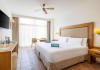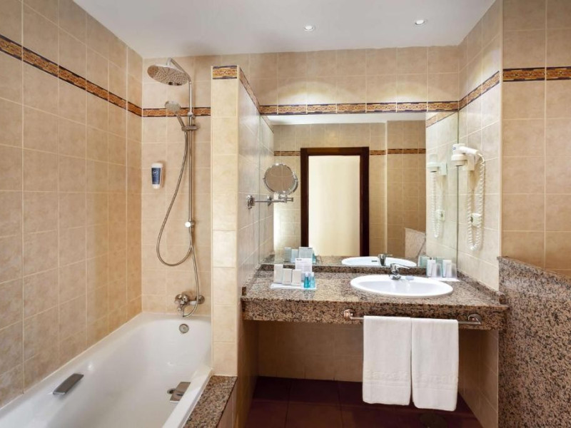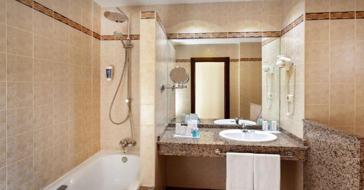 Camera dubla: baie/WC (uscator de par), aer conditionat individual, telefon, TV/sat., seif contra cost, mini-frigider, balcon sau terasa.
