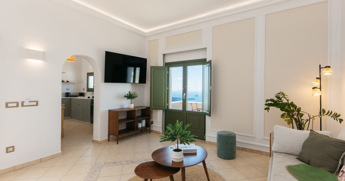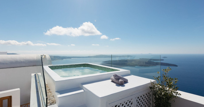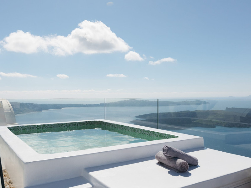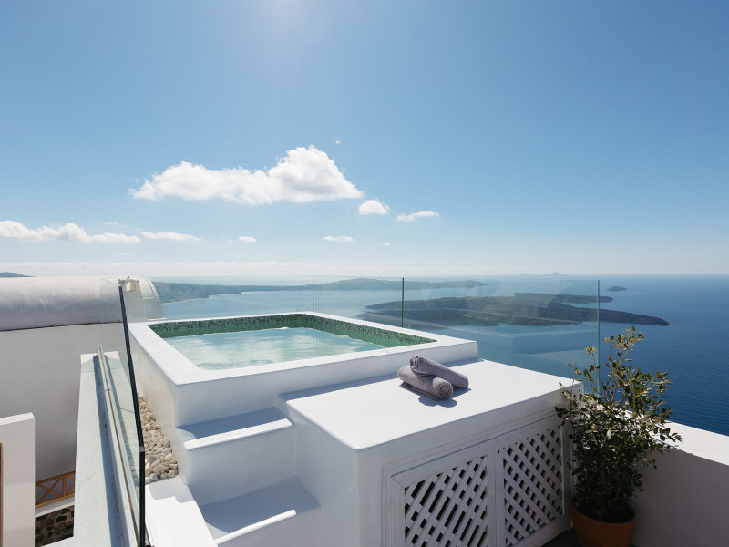 Your one of a kind experience staying at the edge of the world overlooking the Santorini Sunset and Volcano while enjoying your favourite drink in the heated private jacuzzi .Truly unique and unforgettable experience. Ocean Cave Villa is a traditional Santorini Cave Villa hanging at the cliff, which has been carefully restored and redesigned to a luxurious and modern villa. Cave villa, is offering a one of a kind experience, maintaining the Cycladic tradition with exceptional modern aesthetics.Cherish every moment of your stay under complete privacy at your own villa.Cave villa encompasses an area of 49 sq meters fitted with a king size bed and a luxurious bathroom and two sofa beds in living room.The villa comes with an exceptionally designed kitchenette. Unwind in the sofa while you stare the deep blue of the Aegean sea and the Volcanic islets.Step out to the unique balcony and enjoy your breakfast, brunch or drink in the heated private jacuzzi while you enjoy the unique Caldera view and the unique sunsetMaximum occupancy: 4 guests (1 king size bed and 2 sofa beds View: Caldera view, Sunset view, Sea view,Oia view & Volcanic islets