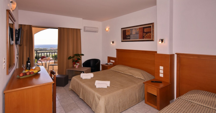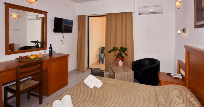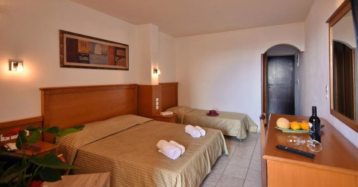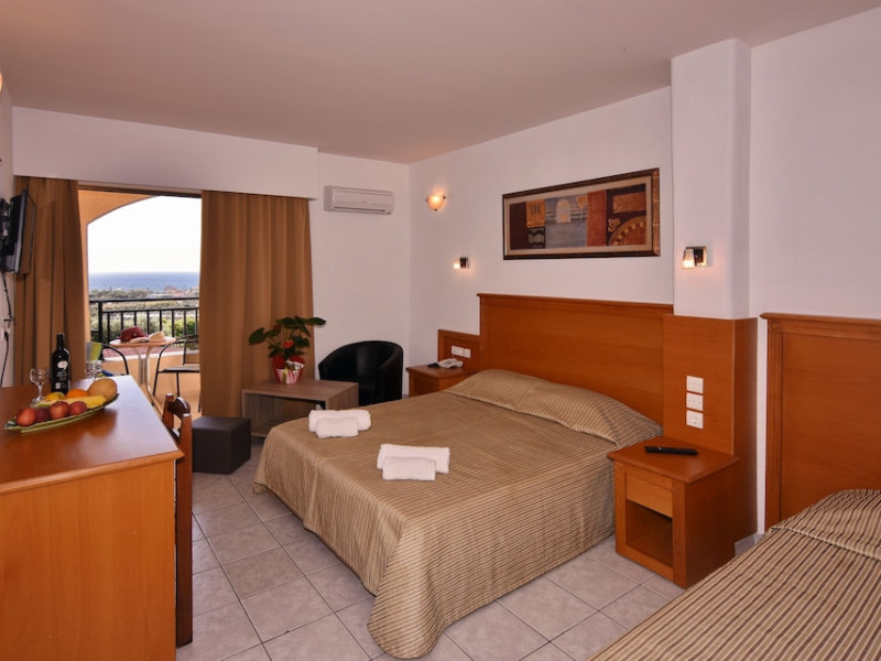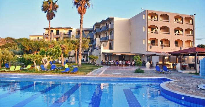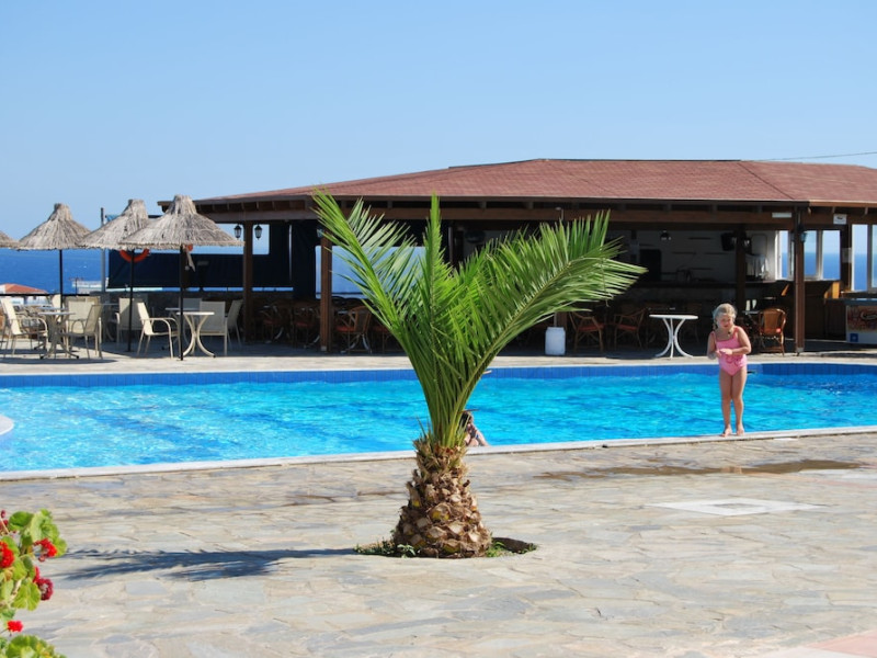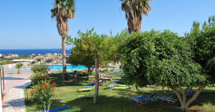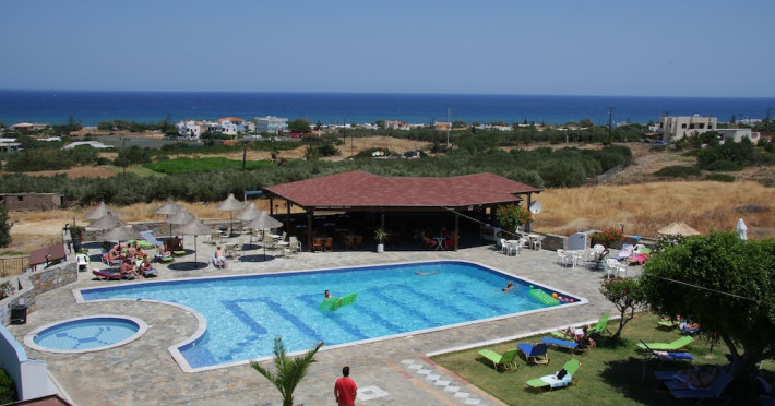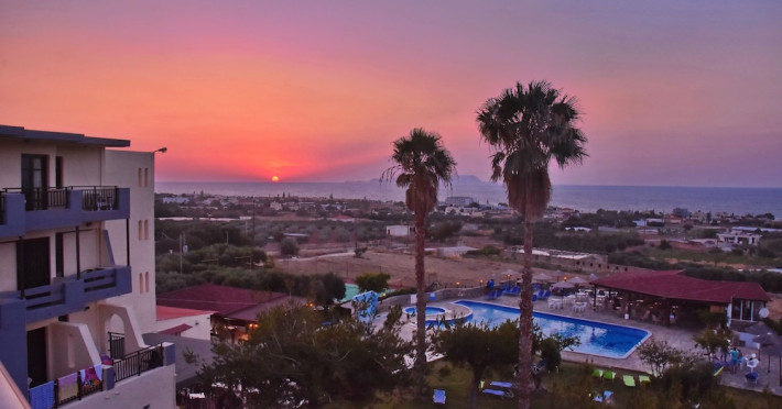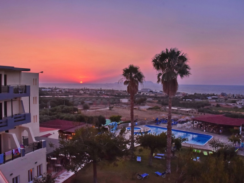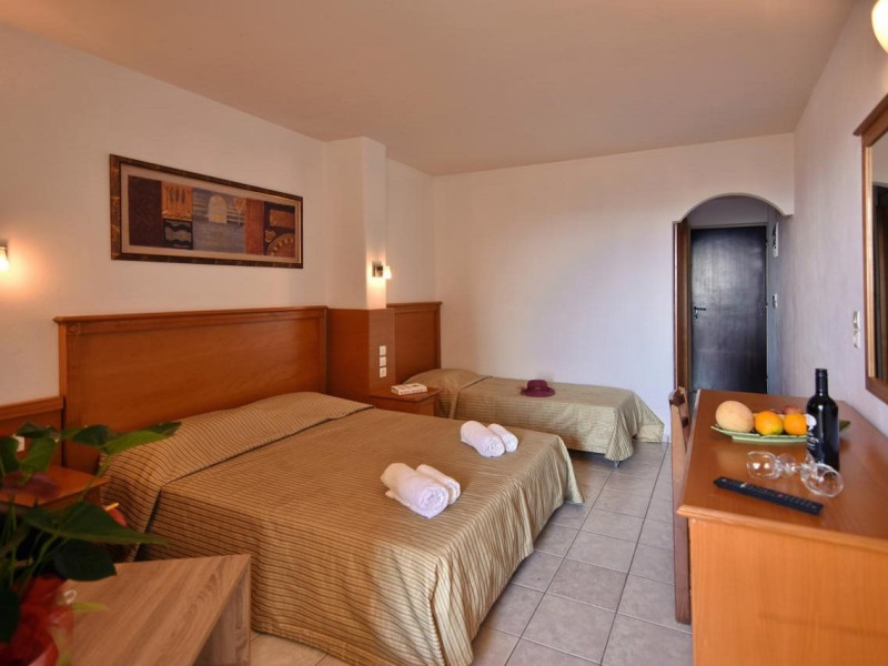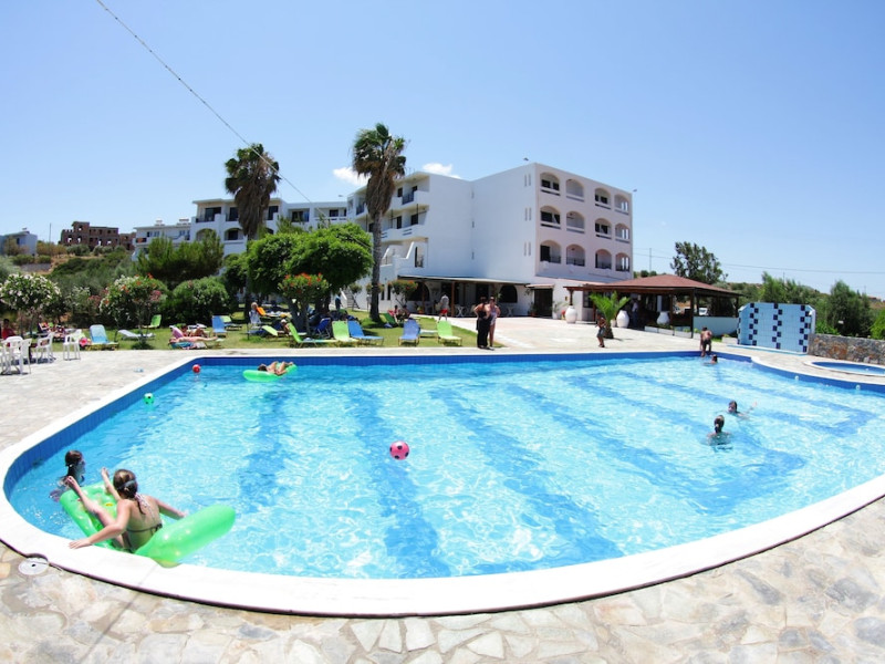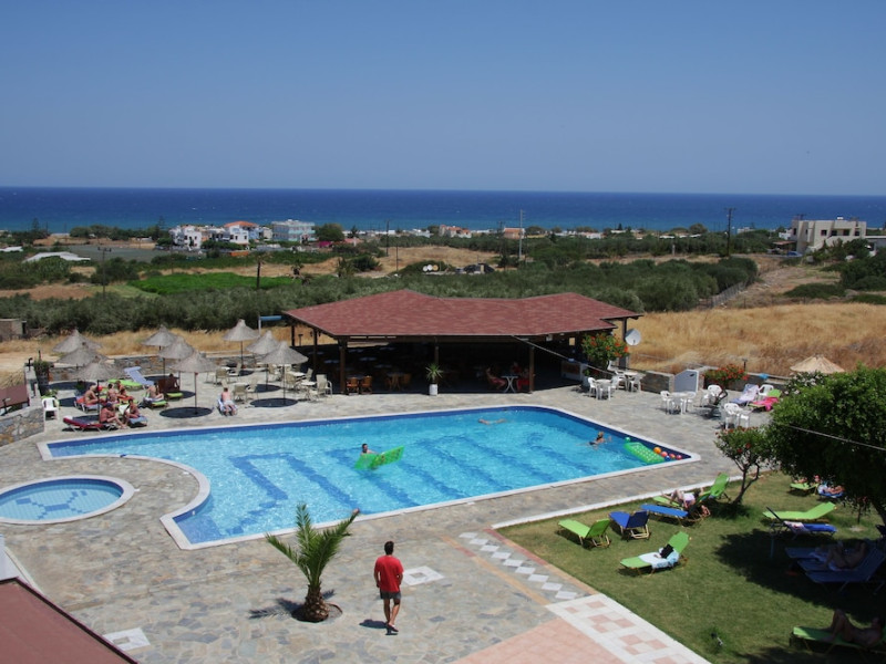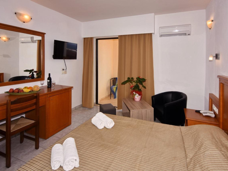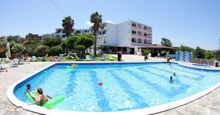 This Hotel is situated 1km from the beach and just 3 km from Hersonissos a lively resort with many restaurant, bars and shops.The hotel facilities includes reception, safety deposit box (extra charge), restaurant, bar, pool, children's pool, tennis court, parking, shuttle service to the beach (except Sundays) and to Hersonissos. All rooms are equipped with telephone, bath or shower, air conditioning, satellite TV, hairdryer and fridge (extra charge). Note: air conditioning is working from June through September **The All Inclusive-concept includes all meals (breakfast, lunch, dinner and snacks) and mealtime drinks such as soft drinks, beer, wine, water and alcoholic drinks, all of local brands. Drinks are served from morning until late evening (approx until 22.-24.00 hrs). Opening times vary between different hotels. In certain hotels the activities program is also included.Address: L. Hersonissos Anissaras, 70014 Chersonissos, Crete, Greece