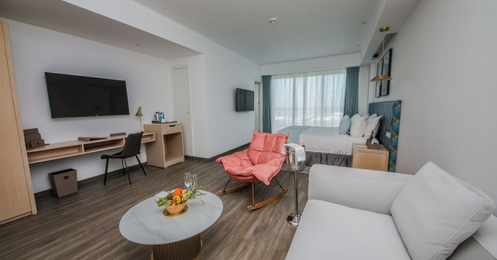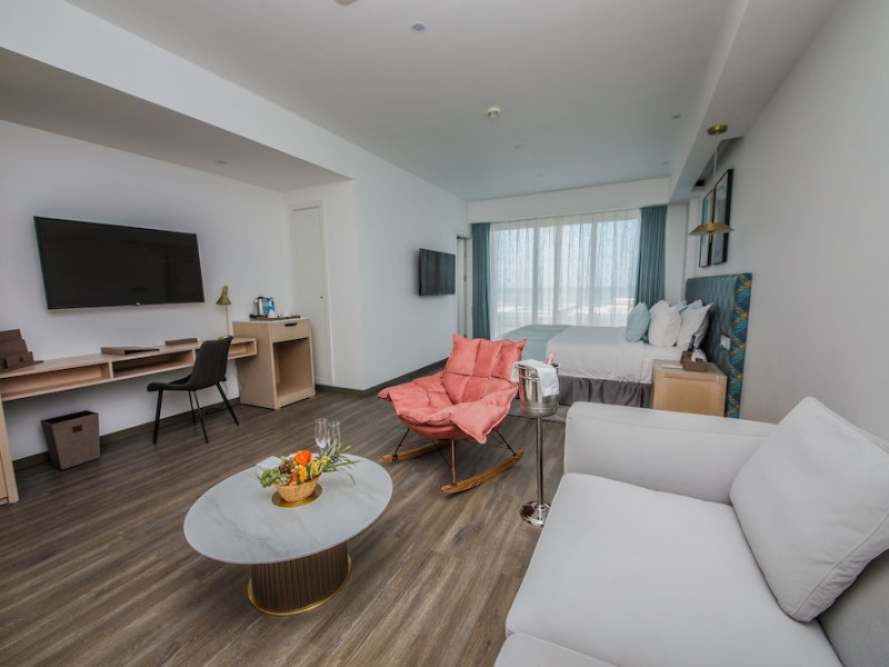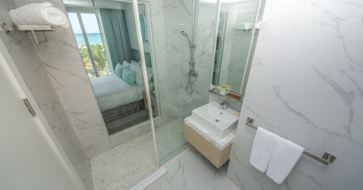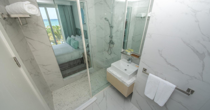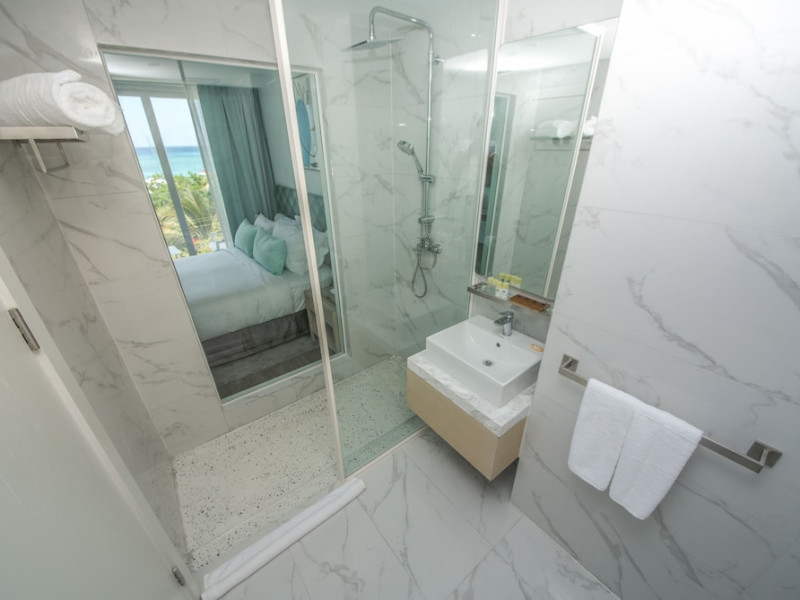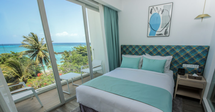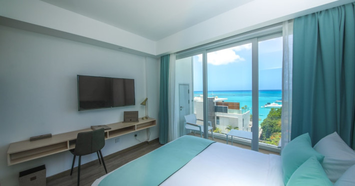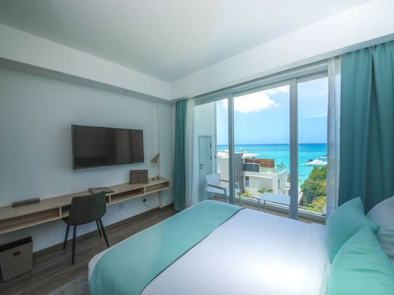 Located in Grand-Baie near the beach, Ocean V Hotel is a short walk from Pereybere Beach and Merville Beach. This hotel offers a full-service spa with massages, complimentary wireless internet access, concierge services, and a television in a common area. Guests can enjoy local and international cuisine at the Rooftop Restaurant, one of the hotel's dining establishments, which include 2 restaurants and a coffee shop/cafe, as well as 2 bars/lounges. A complimentary continental breakfast is served daily. The hotel features a 24-hour front desk, multilingual staff, dry cleaning/laundry services, free self-parking, and bike parking. A roundtrip airport shuttle is available for a surcharge. The air-conditioned rooms include minibars, complimentary wireless internet access, satellite programming, private bathrooms with showers, complimentary toiletries, hair dryers, phones, safes, and desks. The hotel also offers an infinity rooftop swimming pool, Asian-Fusion Teppanyaki, and a ground café. The Ocean V Hotel - Adult only is a hotel.