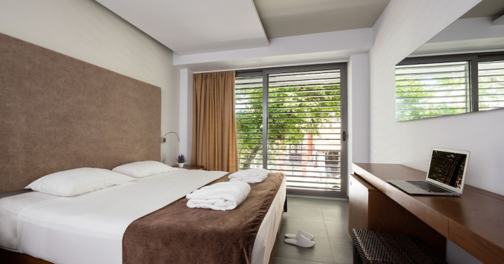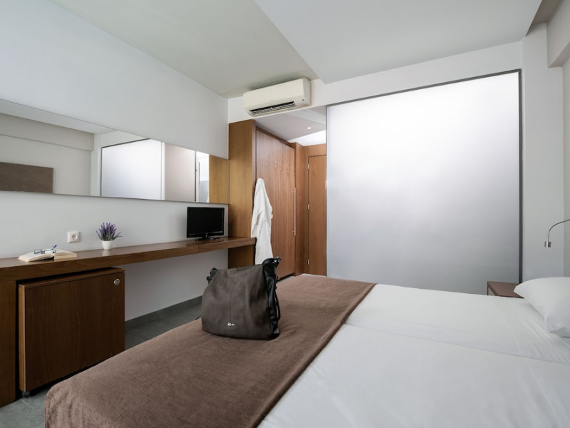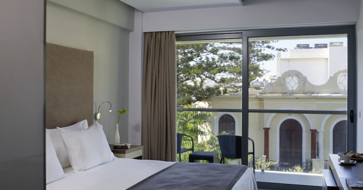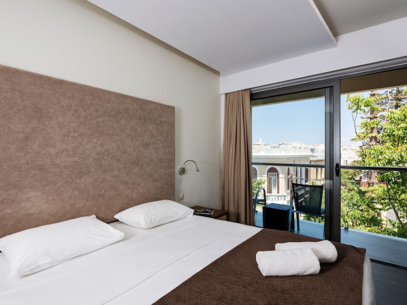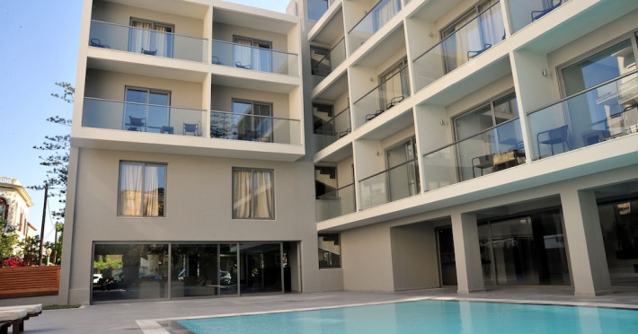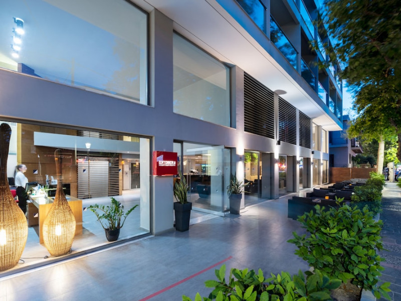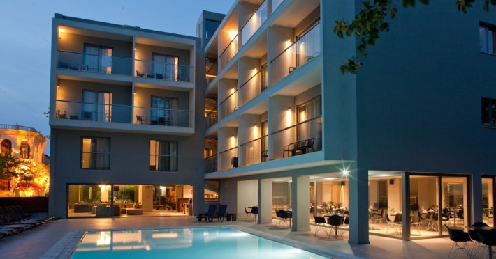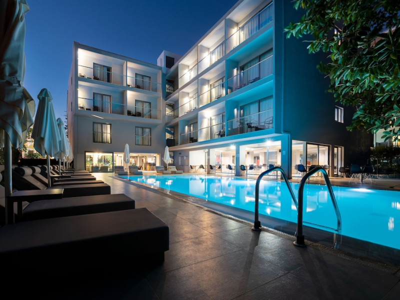 Oktober Downtown Boutique Hotel offers a central location in Rhodes Town, close to the medieval town, beach, and Rhodes Casino. It features air-conditioned rooms with balconies offering city or pool views, a TV, and a private bathroom with a rain shower and complimentary toiletries. Guests can enjoy an outdoor pool, a restaurant serving breakfast, and a bar/lounge. Complimentary wireless internet access is available. Additional amenities include a 24-hour front desk, multilingual staff, concierge services, and dry cleaning/laundry services. An airport shuttle is available (surcharge). The hotel is within walking distance of attractions such as Bar Street, Akti Miaouli Beach, and the Old Town Gates. Diagoras Airport (RHO) is approximately 13 km away. The Oktober Downtown Boutique Hotel is a hotel.