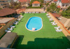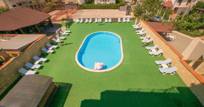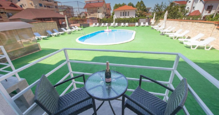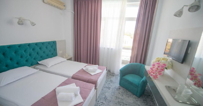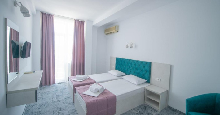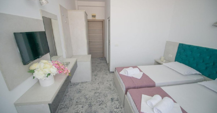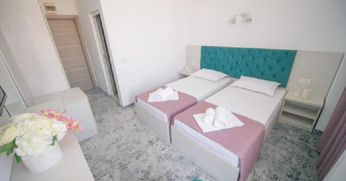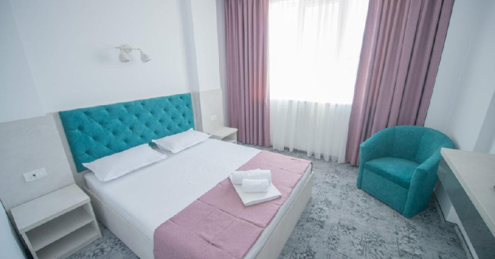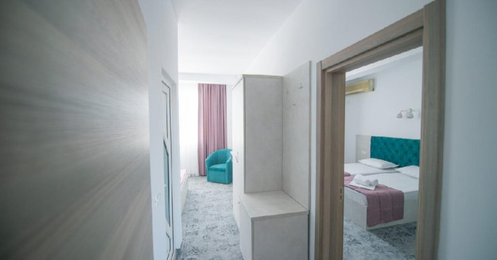 HOTEL OLGUTA este situat in Eforie Nord, zona Steaua de Mare, la aproximativ 400 de metri de plaja. Hotelul a fost complet renovat si modernizat in anul 2020, oferind turistilor conditii confortabile si facilitati actualizate pentru un sejur placut pe litoral. Turistii peste 14 ani vor achita la receptia hotelului taxa de statiune dupa cum urmeaza: 3 lei/pers/zi in perioada 01.01 - 30.04 si 01.10 - 31.12, respectiv 5 lei/ pers/zi in perioada 01.05 - 30.09. Persoanele cu handicap sunt scutite de la plata. DOTARI SERVICII: Hotelul pune la dispozitia turistilor 27 de camere duble si 3 apartamente, precum si o gama variata de facilitati menite sa asigure confortul si relaxarea pe durata sejurului, precum piscina exterioara cu terasa, zona de relaxare acoperita in curtea interioara, precum si un loc de joaca special amenajat pentru copii. Curtea interioara dispune de o zona de relaxare acoperita, iar oaspetii se pot bucura de soare pe terasa, langa piscina. Parcare privata gratuita, in limita disponibilitatii. Accesul cu animalele de companie strict interzis. Check-in: incepand cu ora 16:00 / Check-out: pana la ora 12:00. DOTARI CAMERE: Camerele duble au o suprafata de aproximativ 15 mp, dispun de pat matrimonial (160x200 cm) sau doua paturi twin (90x200 cm), aer conditionat, LCD TV, WiFi, racitor, baie cu cabina de dus, uscator de par si cosmetice hoteliere, plase de tantari si balcon. Unele camere au vedere la piscina. Capacitate maxima camera dubla: 2 adulti si 1 copil (0-7 ani). Camerele duble cu fotoliu extensibil au o suprafata de aproximativ 18 mp, dispun de pat matrimonial (160x200 cm) sau doua paturi twin (90x200 cm), fotoliu extensibil (70x195 cm ), aer conditionat, LCD TV, WiFi, racitor, baie cu cabina de dus, uscator de par si cosmetice hoteliere, plase de tantari si balcon. Unele camere au vedere la piscina. Capacitate maxima camera dubla + fotoliu extensibil: 2 adulti si 2 copii. Apartamentele, au o suprafata de aproximativ 30 mp, se compun din doua dormitoare separate cu usa: unul cu pat matrimonial si unul cu paturi twin. Acestea dispun de baie cu cabina de dus, uscator de par si cosmetice hoteliere, balcon, aer conditionat si LCD TV in ambele camere, precum si WiFi, racitor si plase de tantari. Capacitate maxima apartament: 4 adulti si 1 copil (0-7 ani) sau 2 adulti si 2 copii. Repartizarea camerelor se face la receptie, in functie de disponibilitatea din momentul cazarii. Nu exista optiunea de adaugare a unui pat suplimentar. FACILITATI COPII: In camera cu 2 adulti: - un copil cu varsta intre 0 si 7 ani sta gratuit daca foloseste patul existent; - un copil cu varsta intre 7 si 18 ani sau un adult plateste 60 lei/noapte/fotoliu extensibil, hotelul punandu-i la dispozitie un fotoliu extensibil.