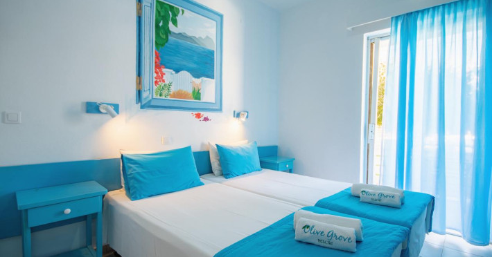 to the long, sandy beach of Kavos, the Olive Grove Resort is located in the