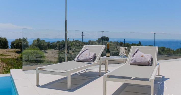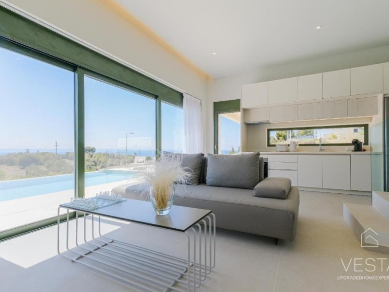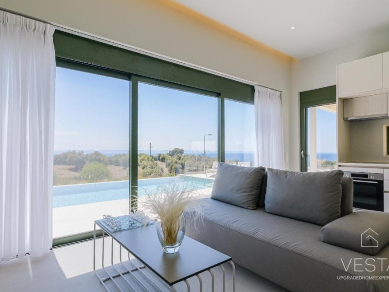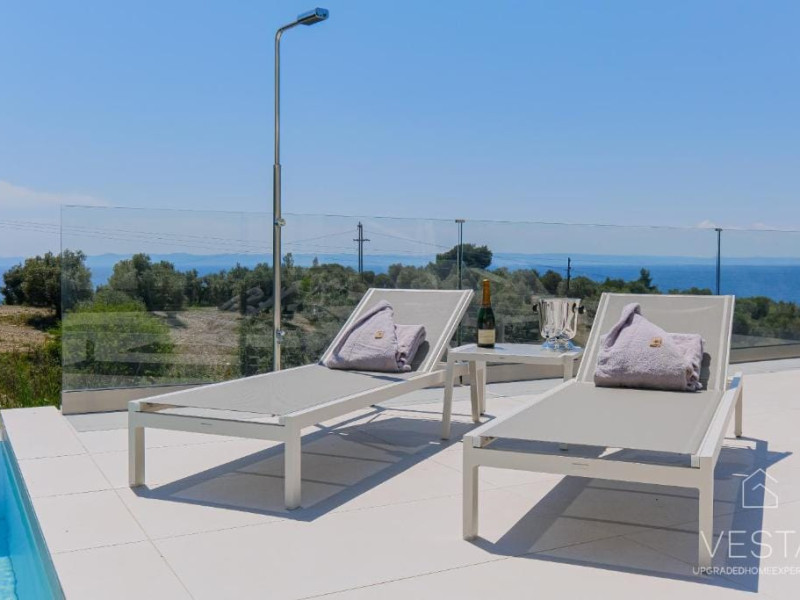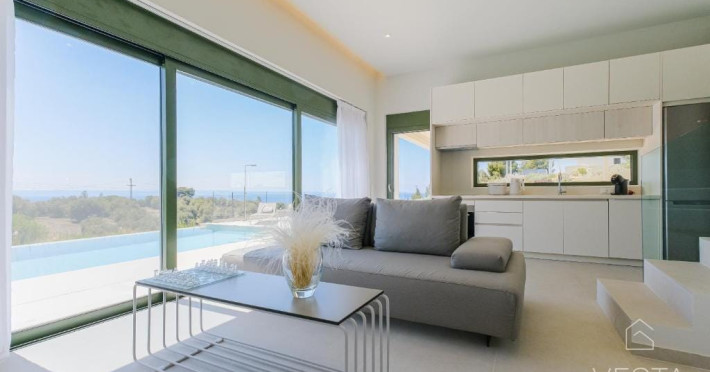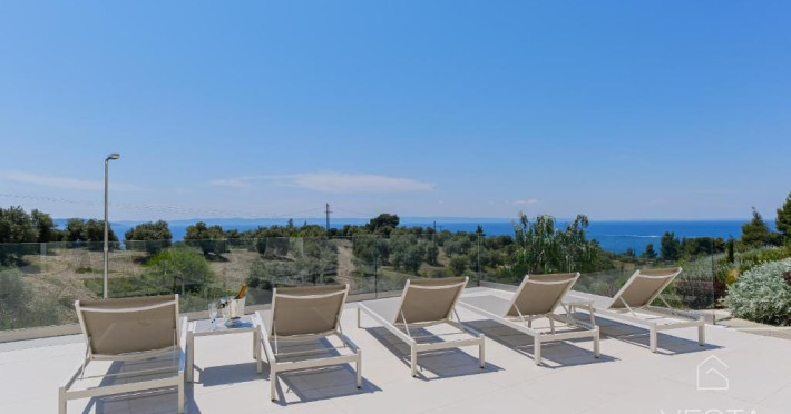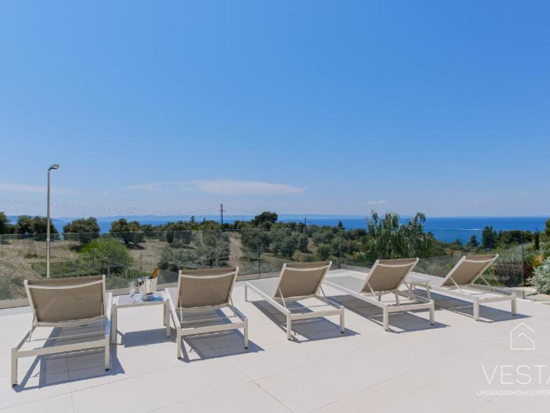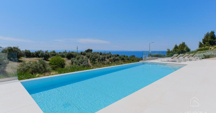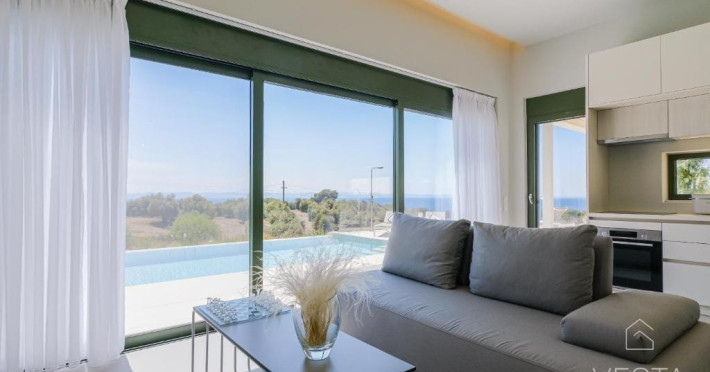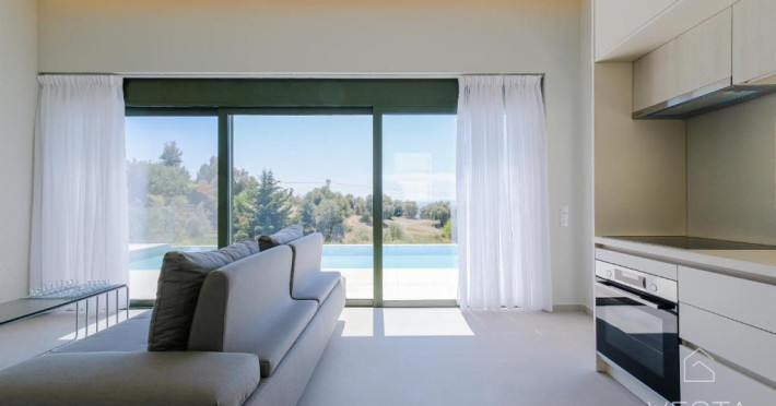 Nestled on a serene hillside, surrounded by lush pine forests and centuries-old olive groves, Olive Grove Suites & Villas offers an exclusive escape with breathtaking panoramic views of the Aegean Sea. These three newly built, luxurious villas combine modern elegance with ultimate comfort, making them the perfect choice for those seeking privacy, tranquility, and relaxation.Each 100 sqm villa is designed with a minimalist aesthetic, featuring expansive floor-to-ceiling windows, refined interiors, and high-end amenities. Every villa boasts a private infinity pool (40 sqm), a spacious 400 sqm private garden, and an outdoor lounge area, ensuring an unparalleled setting for unwinding in nature.The two-level living space includes a stylish living room with a 43” Smart TV (Netflix & YouTube), air conditioning, and plush furnishings. The fully equipped modern kitchen provides everything needed for a seamless stay, including an electric oven, stovetop, dishwasher, refrigerator, and premium kitchenware.Each villa accommodates up to six guests in three elegantly designed bedrooms, each featuring a queen-size bed, a 32” flat-screen TV, air conditioning, and an en-suite bathroom with a modern walk-in shower.The outdoor spaces are designed for both relaxation and entertainment, featuring a shaded 6-seater dining area under a 30 sqm pergola, a lounge with comfortable armchairs, and six sunbeds overlooking the private infinity pool. Guests can also enjoy private parking for two cars, high-speed unlimited Wi-Fi, and a Sony Sound Bar with universal Hi-Fi USB connection.Whether you’re looking for a romantic getaway, a family vacation, or a peaceful retreat, Olive Grove Suites & Villas offers an unparalleled experience of luxury, comfort, and natural beauty.