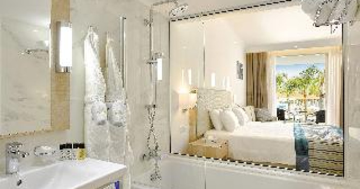 Near Landa Beach. When you stay at Olympic Lagoon Resort â Ayia Napa in Ayia Napa, youll be near the beach, within a 5-minute drive of Nissi Beach and Makronissos Beach. This beach hotel is 13.5 mi (21.8 km) from Fig Tree Bay and 12.5 mi (20.1 km) from Konnos Bay Beach. Make yourself at home in one of the 314 air-conditioned rooms featuring refrigerators and minibars (stocked with some free items). Rooms have private balconies. 32-inch flat-screen televisions with digital programming provide entertainment, while complimentary wireless internet access keeps you connected. Private bathrooms with bathtubs feature complimentary toiletries and hair dryers. All-inclusive rates are available at this hotel. Meals and beverages at onsite dining establishments are included in all-inclusive rates. Charges may be applied for dining at some restaurants, special dinners and dishes, some beverages, and other amenities. Enjoy Italian cuisine at Garibaldi Ristorante, one of the hotels 8 restaurants, or stay in and take advantage of the room service (during limited hours). Snacks are also available at the coffee shop/cafe. Relax with a refreshing drink from the poolside bar or one of the 4 bars/lounges. Pamper yourself with a visit to the spa, which offers massages, body treatments, and facials. Youre sure to appreciate the recreational amenities, which include 6 outdoor swimming pools, a health club, and a lazy river. Additional features at this hotel include complimentary wireless internet access, concierge services, and babysitting (surcharge).