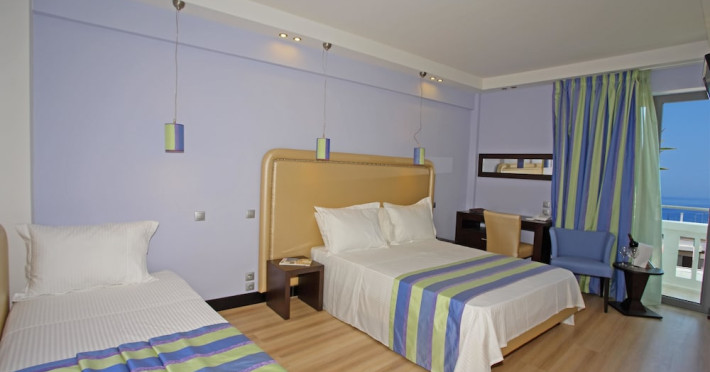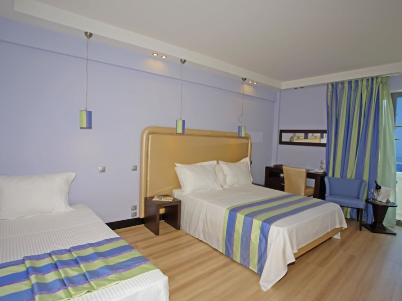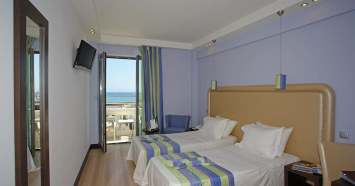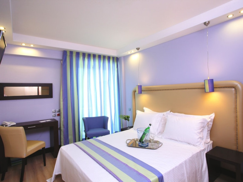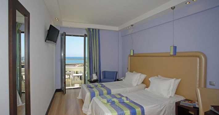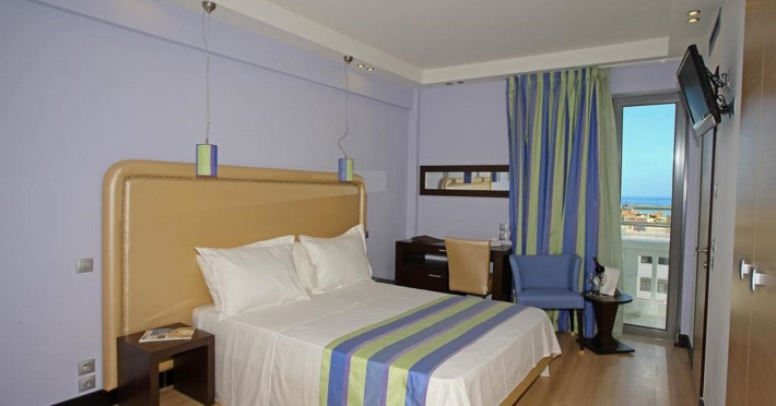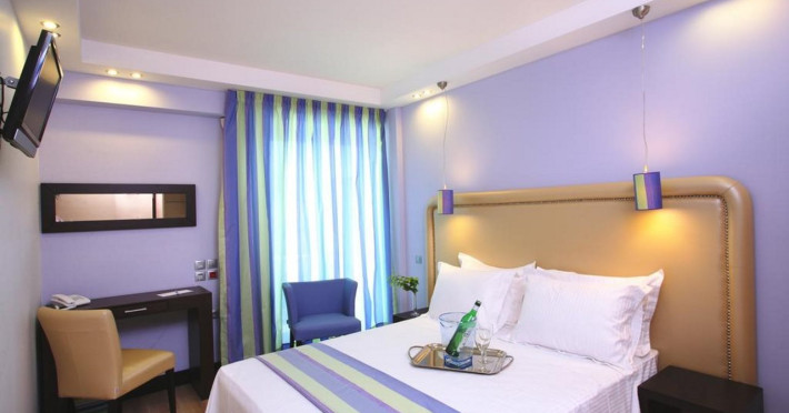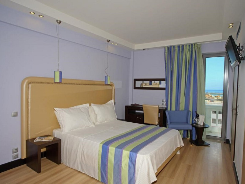 The Olympic Palladium hotel is located in the centre of the city of Rethymnon, 100 m away from the historic old town, 400 m away from the harbour and 350 m from the beach. In a short distance, there is the Olympic Aqua Fitness as well as a variety of bars, restaurants, taverns, the public transport and shops. The nearest airport in Chania is 62 km from the hotel.The hotel facilities and services include reception 24 h., lobby area with lift, lounge, conference facilities and meeting rooms, indoor and outdoor restaurant, main bar, café, gym, luggage storage with showers, self service laundry, outdoor pool, outdoor Jacuzzi, sun terrace and roof garden with bar café and sitting area with terrace.The rooms are equipped with A/C, TV, telephone, safe (with extra charge), wired ADSL internet access, ironing set, mini fridge, balcony and bathroom with bathtub/shower and hair dryer. Room service (07:00-23:00) and laundry service are available (both with extra charge).**Air conditioning is working from June to September.****Safe with extra charge.****Please note that some of the above facilities may be closed due to weather / seasonal conditions**Address: 42, Themistokli Moatsou Street, 741 00 Rethymnon, Crete, Greece.