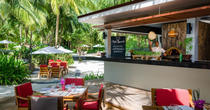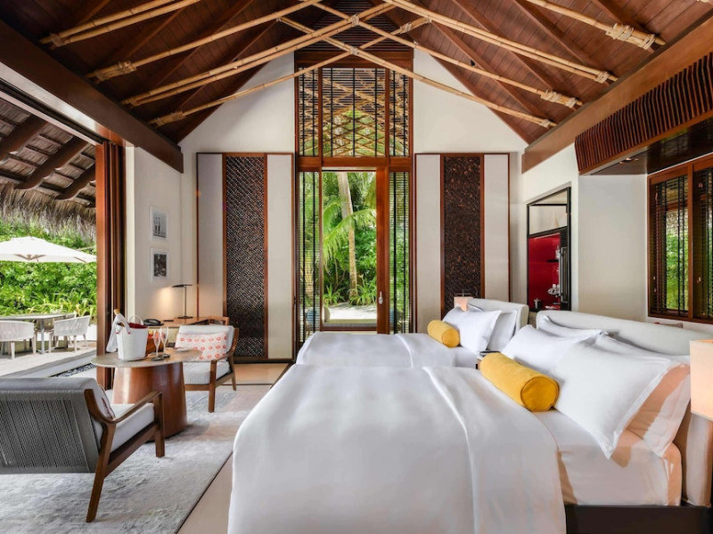 One&Only Reethi Rah is a beachfront resort in Reethi Rah, Maldives, located near several beaches (Thulhagiri, Angsana, Bandos, Vabbininfaru, Full Moon, Paradise Island, Gili Lankanfushi, Kani, Meeru, Dhonveli, Dhiffushi East Kite, Dhiffushi South, Kurumba, Hulhumale, and Laguna). The resort offers 122 individually decorated guestrooms with private balconies, private bathrooms featuring separate bathtubs and showers with deep soaking tubs and rainfall showerheads, LED televisions, and complimentary wired and wireless internet access. Many rooms also include indoor private spa tubs. Amenities include a spa with massages, body treatments, and facials; outdoor tennis courts; an outdoor pool; complimentary beach shuttle; six restaurants (including Reethi, featuring Asian cuisine); 24-hour room service; a coffee shop/cafe; a bar/lounge; a beach bar; and a poolside bar. Additional amenities include complimentary wireless internet access, concierge services, babysitting (surcharge), complimentary wired internet access, complimentary newspapers in the lobby, dry cleaning/laundry services, and free valet parking. The resort is approximately 9.7 km from Velana International Airport (MLE). The One&Only Reethi Rah is a Beach Resort, Diving Resort, Honeymoon, Leisure, Tourist hotel. The nightlife/restaurants are easily accessible by taxi or bus from the hotel.
