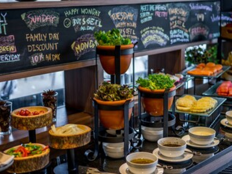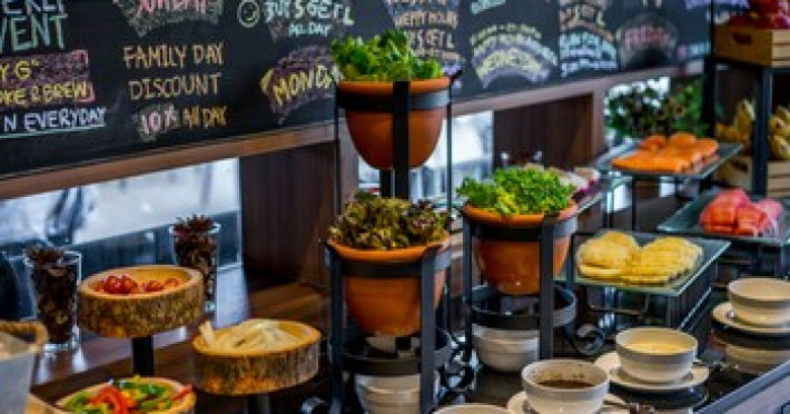 Dining Satisfy your appetite for lunch or dinner at the hotel's restaurant, or stay in and take advantage of the room service. Wrap up your day with a drink at the bar/lounge. Cooked-to-order breakfasts are available daily from 7:00 AM to 10:00 AM for a fee.
