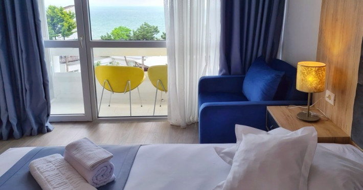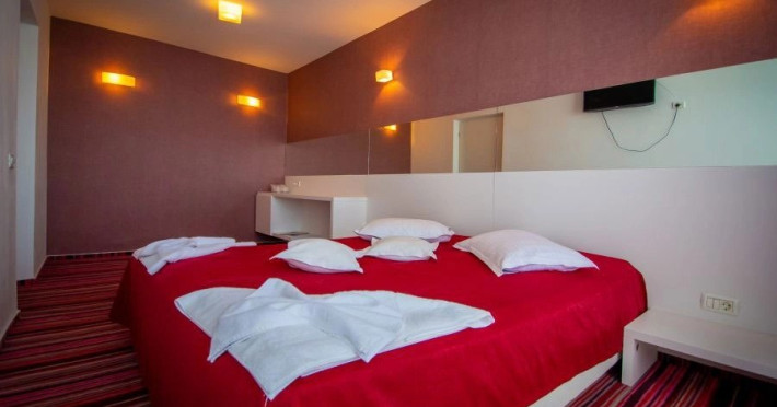 Camerele duble superioare sunt situate la etajele 4, 5 si 6, sunt dotate cu paturi matrimoniale (160x200) si au vedere spre mare sau spre padurea Comorova. Sunt renovate complet in anii 2018-2020, au 19 mp si sunt dotate cu televizor LED (diagonala 80 cm), aer conditionat, minibar, feon, internet wireless, balcon cu mobilier si uscator, mocheta sau parchet, plasa impotriva insectelor. Baile sunt renovate, sunt dotate cu dus si sunt mai spatioase ca baile camerelor standard. Toate camerele au in dotare fotoliu extensibil.