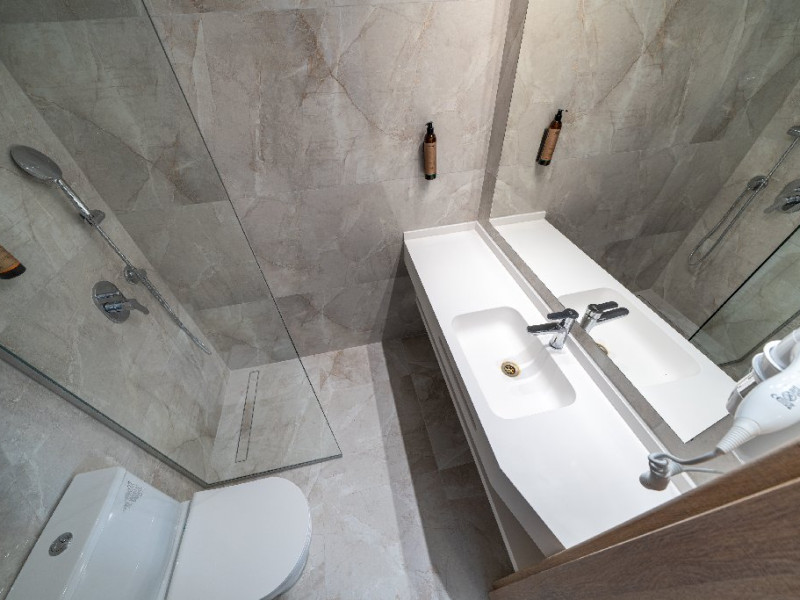 Apartamentele au vedere spre mare si sunt formate din living (canapea extensibila), dormitor (pat matrimonial), dressing, baie, 2 balcoane. Intre cele doua camere exista usa despartitoare. Au aproximativ 40 mp si sunt dotate cu: 2 televizoare LED (diagonala 80 cm), aer conditionat, feon, minibar, baie cu dus, internet wireless, 2 balcoane cu mobilier si uscator, mocheta, plasa impotriva insectelor.
