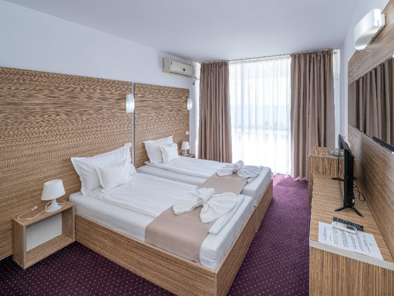 Camerele duble standard sunt situate la etajele 1, 2 si 3 ale hotelului si au vedere spre mare sau spre padure, au 2 paturi twin (care pot fi unite). Au fost renovate in anul 2017, au 19 mp si sunt dotate cu televizor LED (diagonala 80 cm), minibar, baie cu dus (aprox. 2,2 mp), aer conditionat, feon, internet wireless, balcon cu mobilier si uscator, mocheta, plasa impotriva insectelor.