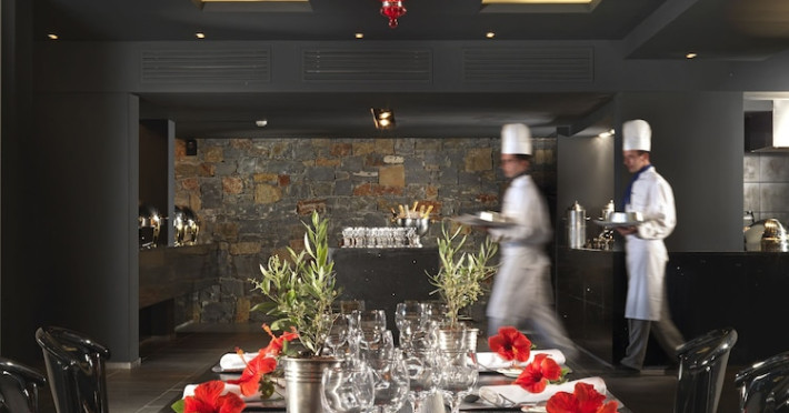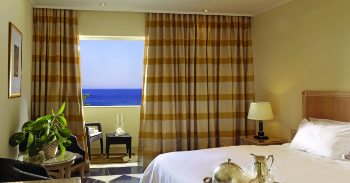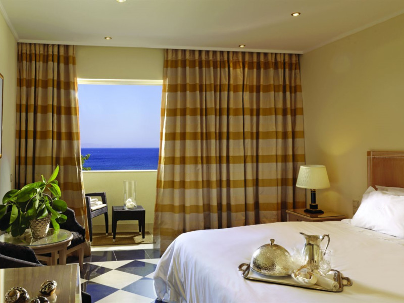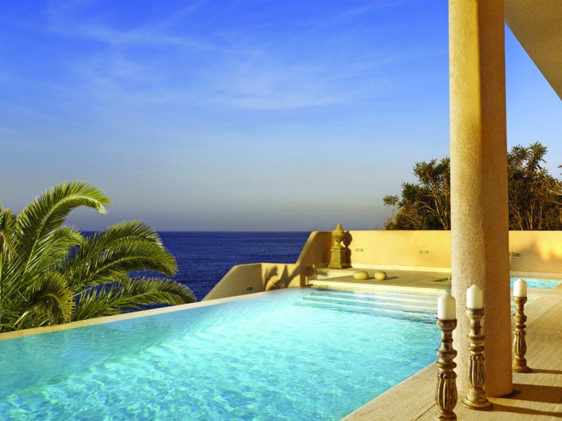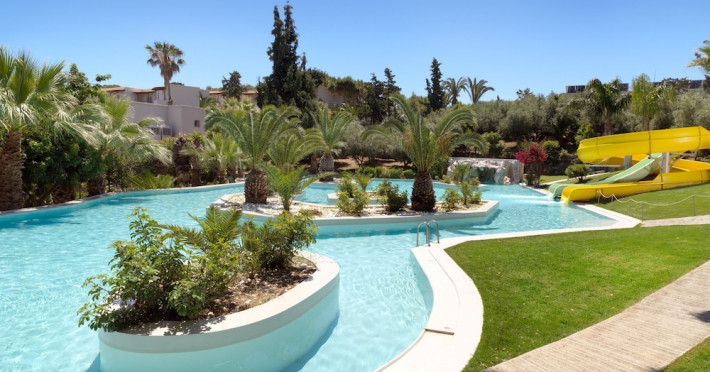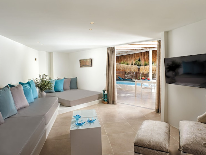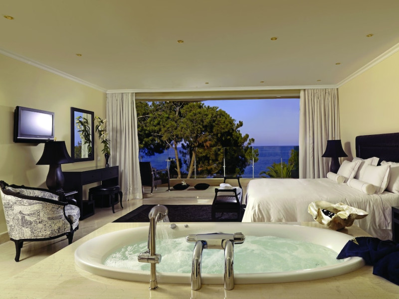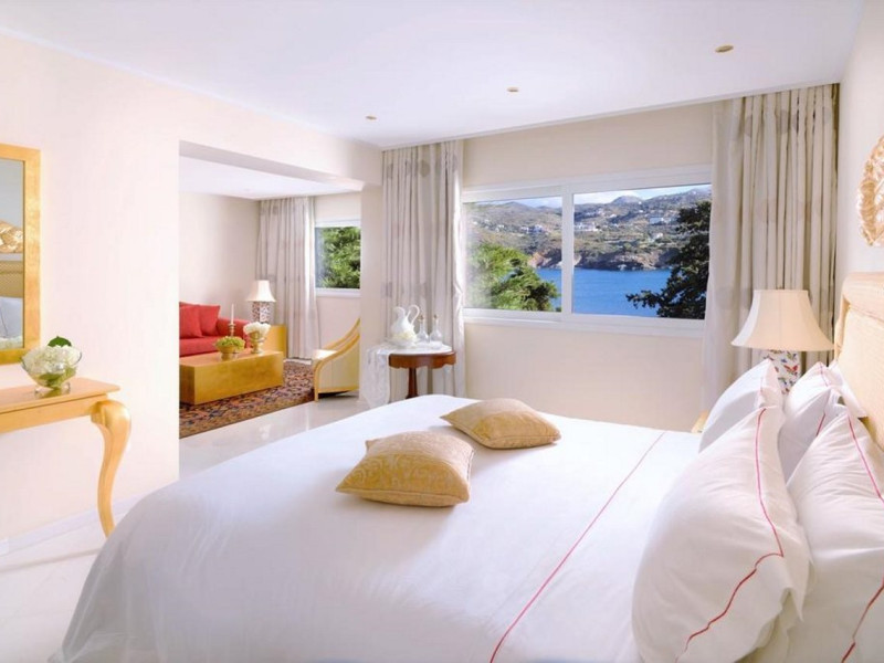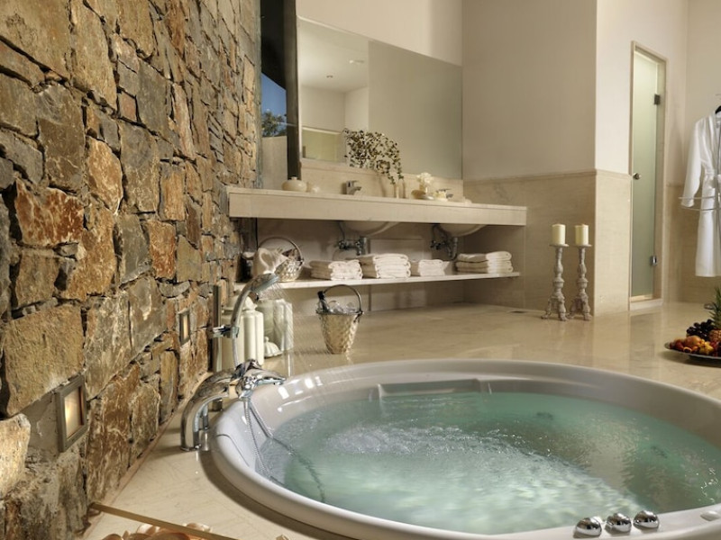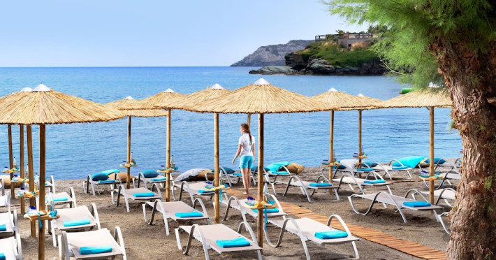 Located on a private peninsula in Agia Pelagia, Crete, Out Of The Blue Resort & Spa offers accommodations surrounded by botanical gardens and with access to two beaches. The resort is a short drive from Heraklion International Airport. Rooms, maisonettes, suites, and villas feature a balcony or terrace, satellite TV, air conditioning, and internet access. The resort features multiple restaurants offering a variety of cuisines, as well as bars and lounges. Guests can relax at the full-service spa with massages and hydrotherapy, enjoy swimming pools, and access a health club. A Minoan-themed kids' club is available. Amenities include complimentary wireless internet access, concierge services, and on-site parking.