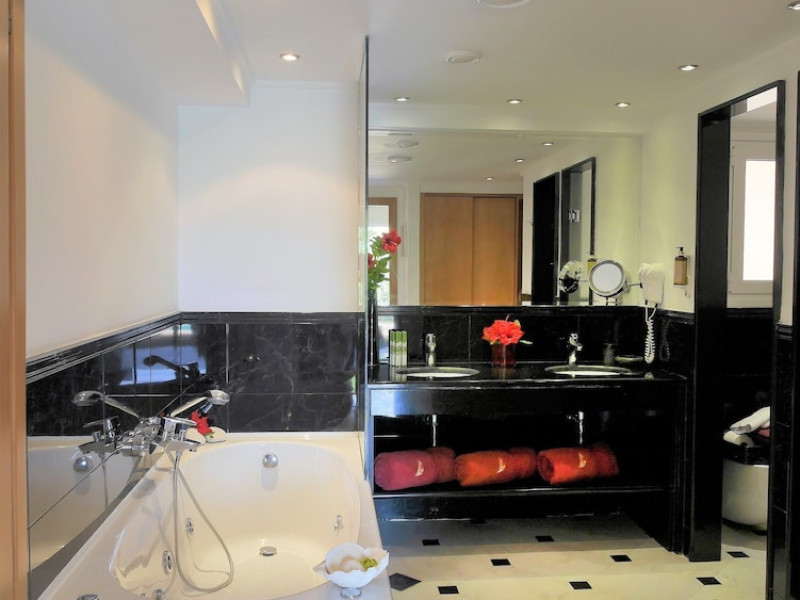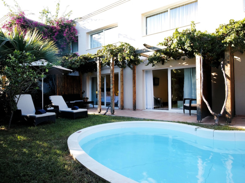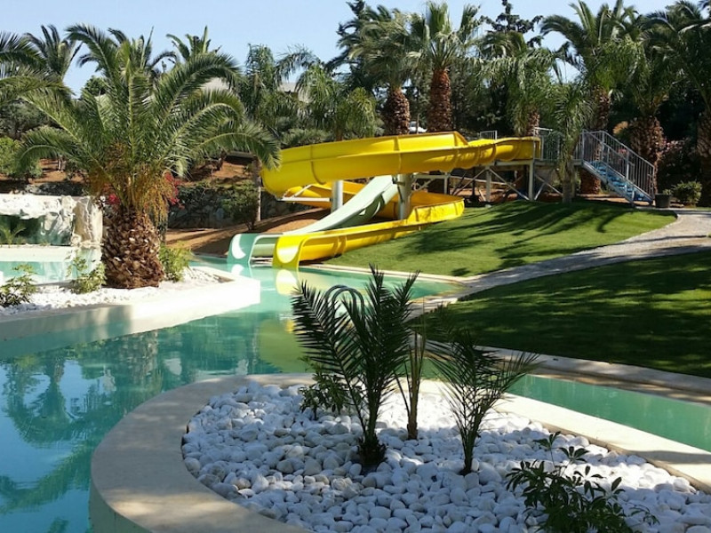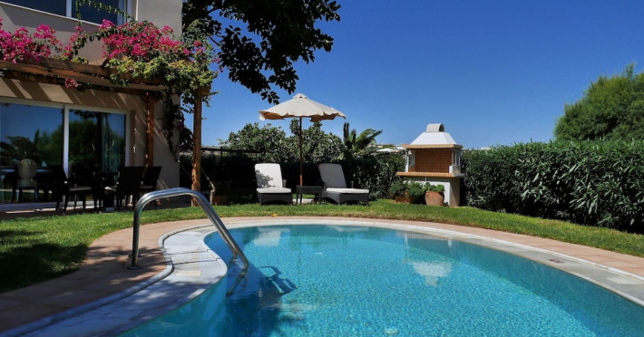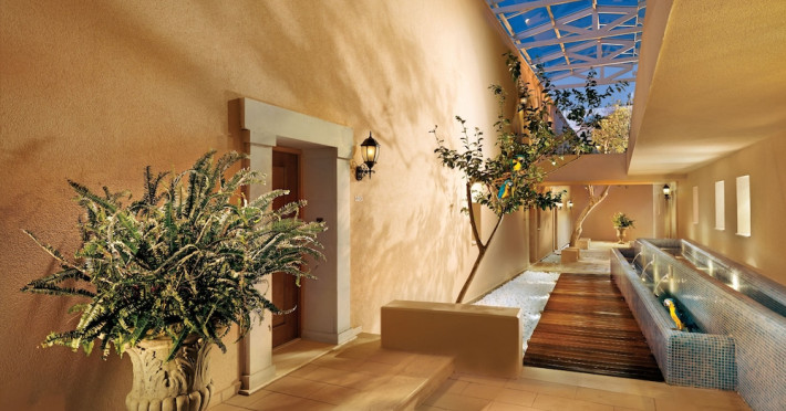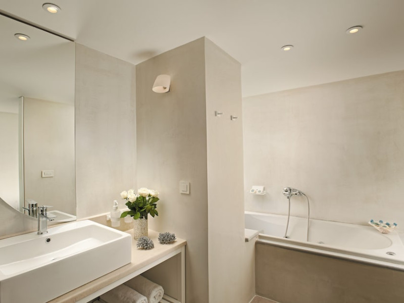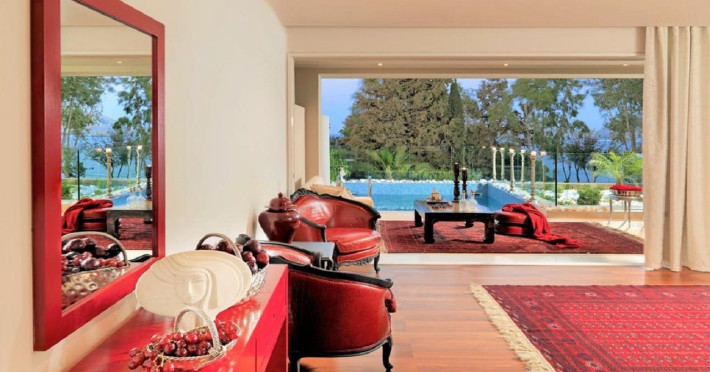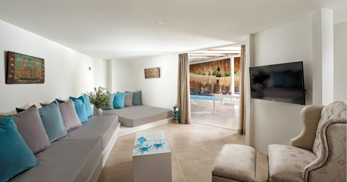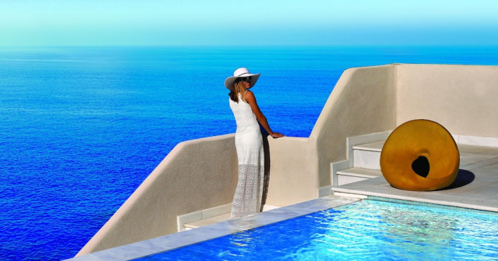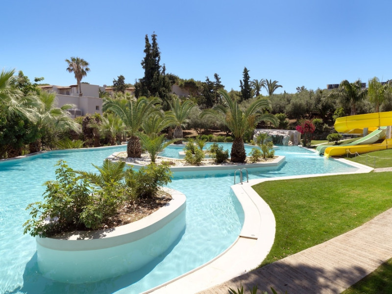 Located on a private peninsula in Agia Pelagia, Crete, Out Of The Blue Resort & Spa offers accommodations surrounded by botanical gardens and with access to two beaches. The resort is a short drive from Heraklion International Airport. Rooms, maisonettes, suites, and villas feature a balcony or terrace, satellite TV, air conditioning, and internet access. The resort features multiple restaurants offering a variety of cuisines, as well as bars and lounges. Guests can relax at the full-service spa with massages and hydrotherapy, enjoy swimming pools, and access a health club. A Minoan-themed kids' club is available. Amenities include complimentary wireless internet access, concierge services, and on-site parking.