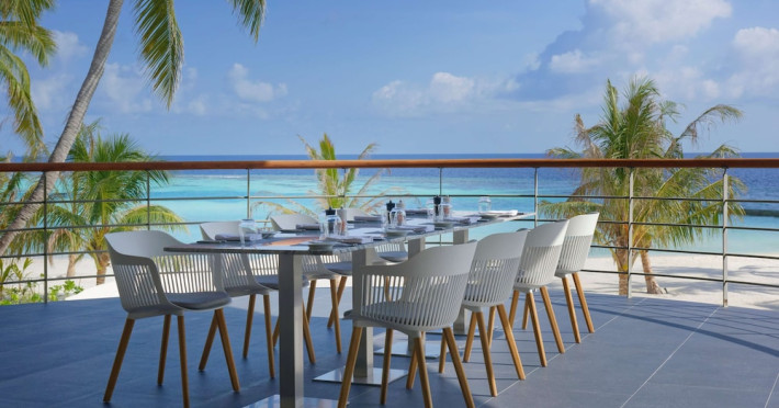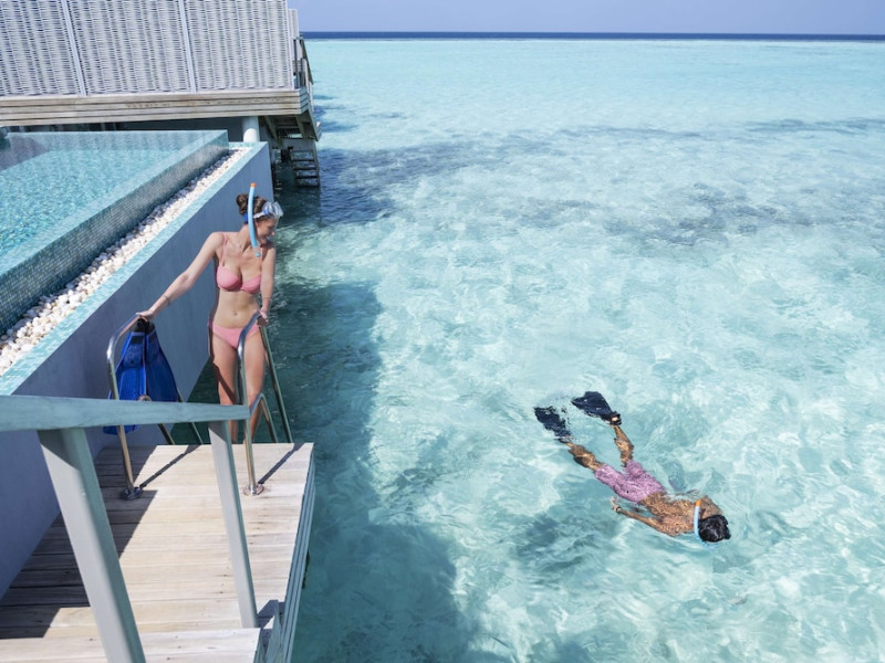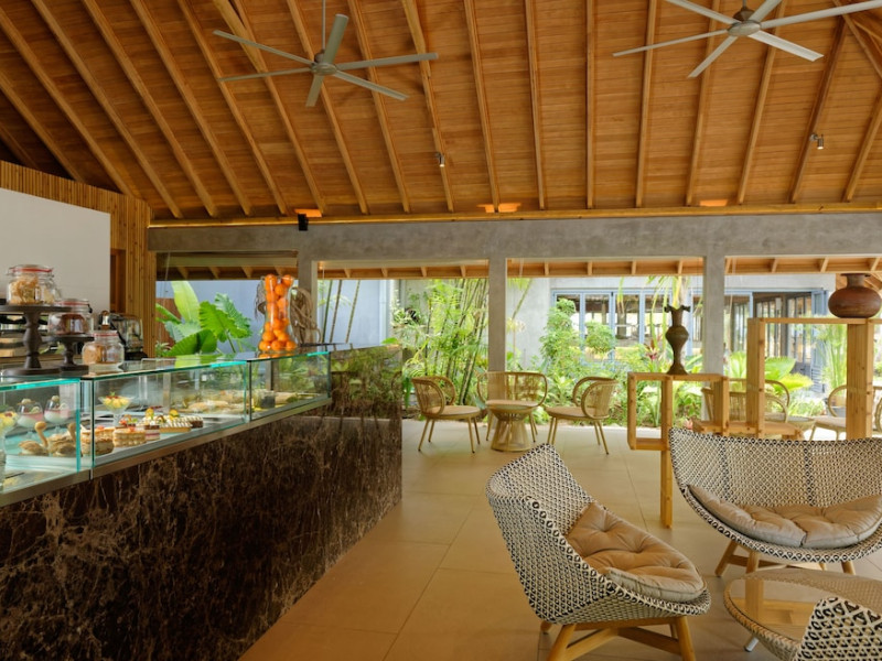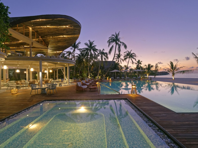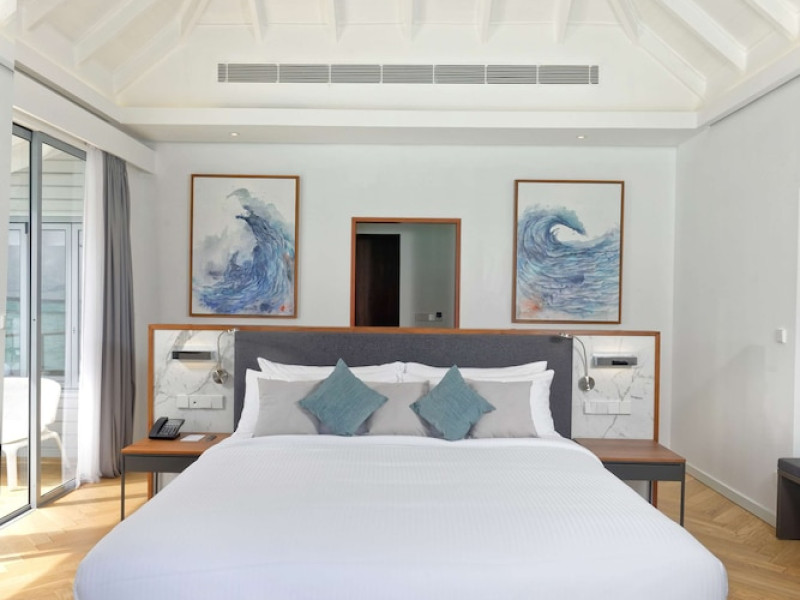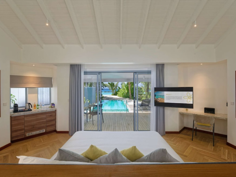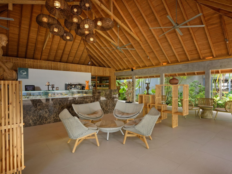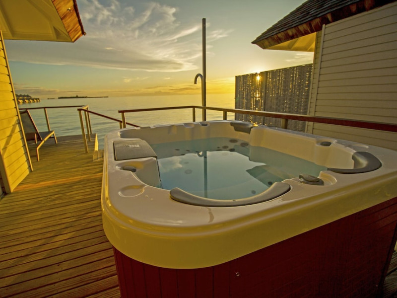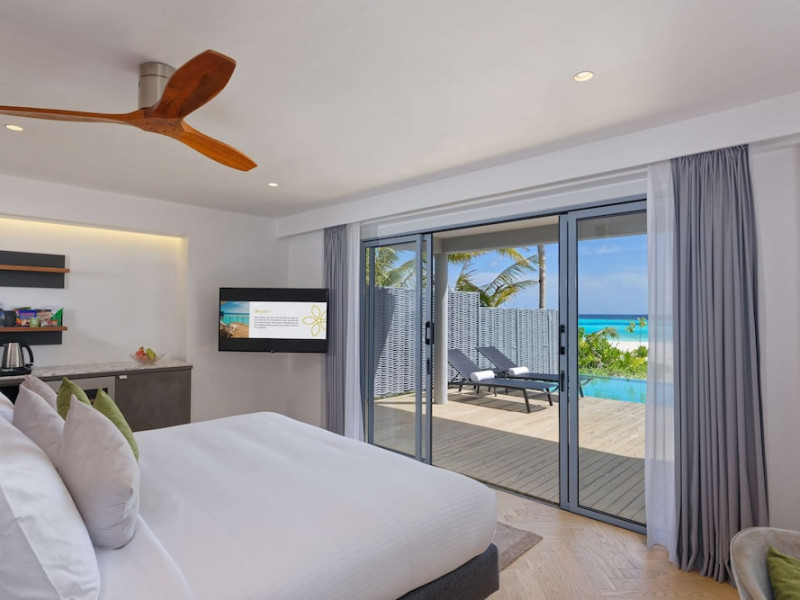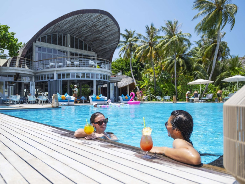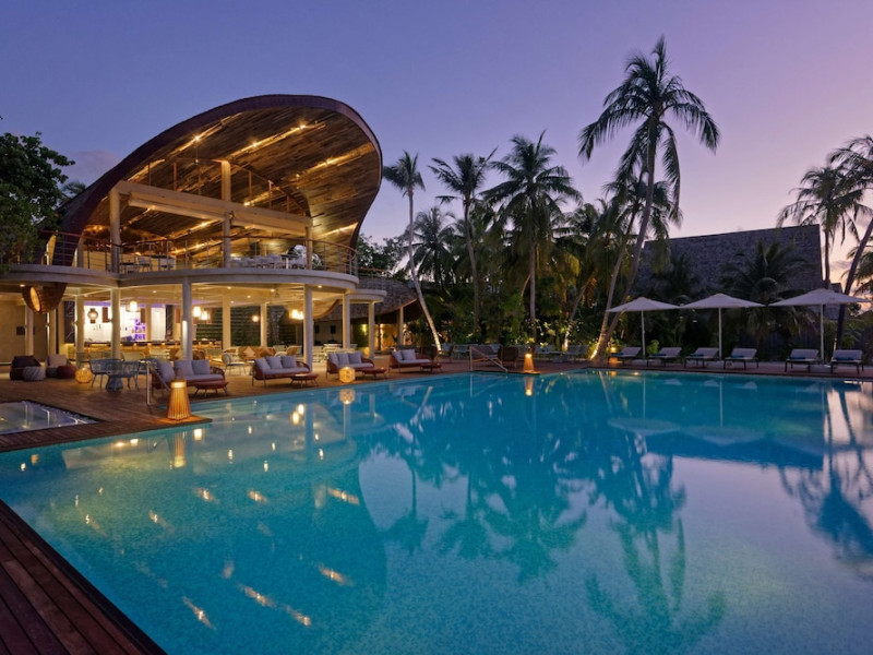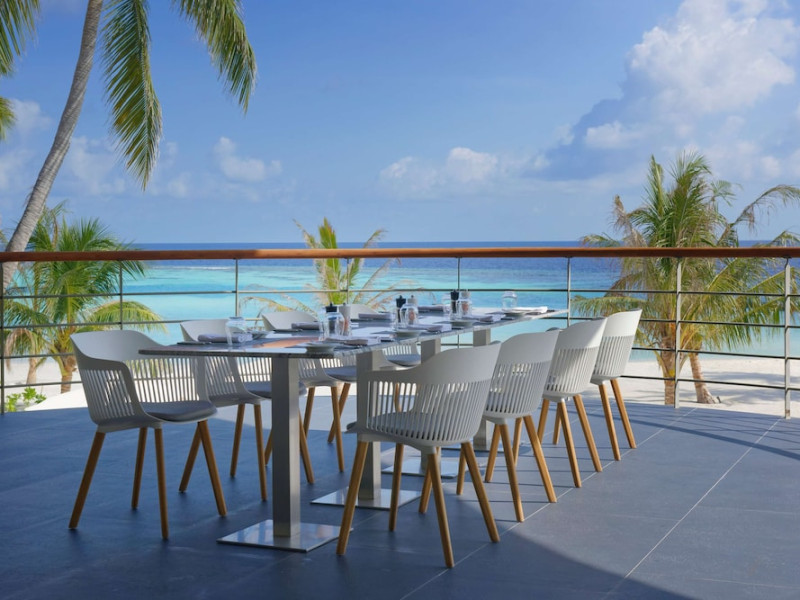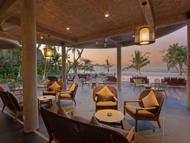 OUTRIGGER Maldives Maafushivaru Resort is a beachfront resort located on a private island in the South Ari Atoll, a 25-minute seaplane flight from Malé International Airport. The island, measuring just over 350 meters, features lush vegetation, powder-white sand, and a house reef teeming with tropical fish. Elegant villas, inspired by local architecture, offer direct beach or sea access. Amenities include an outdoor pool, an indoor pool, a spa offering massages and treatments, complimentary Wi-Fi, concierge services, gift shops, and all-inclusive rate options (some dining restrictions may apply). The resort has four restaurants, a coffee shop/cafe, a bar/lounge, a beach bar, and a poolside bar. A complimentary buffet breakfast is served daily. Additional amenities include dry cleaning/laundry services, a 24-hour front desk, and multilingual staff. Rooms feature air-conditioning, iPod docking stations, LCD televisions, pillowtop beds with down comforters, and bathrooms with separate bathtubs and showers. The resort is within a 5-minute walk of Ari Atoll and Dhangethi Beach and 0.1 km from Bunbaru Public Beach. Velana International Airport (MLE) is 4.5 km away. The OUTRIGGER Maldives Maafushivaru Resort is a Beach Resort, Diving Resort, Honeymoon, Resort, Spa Resort, Tourist, Villa Resort hotel. The nightlife/restaurants are located in the hotel.