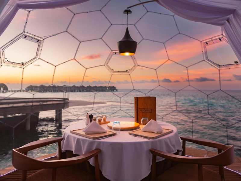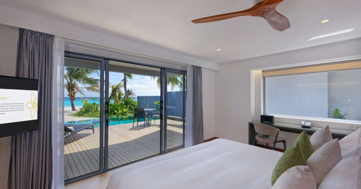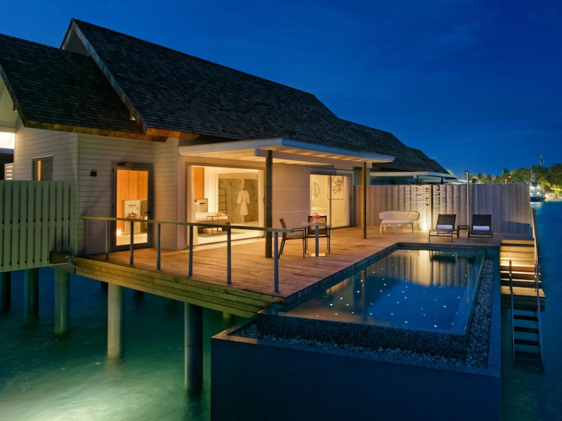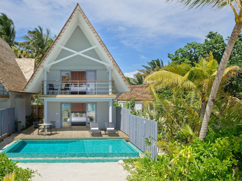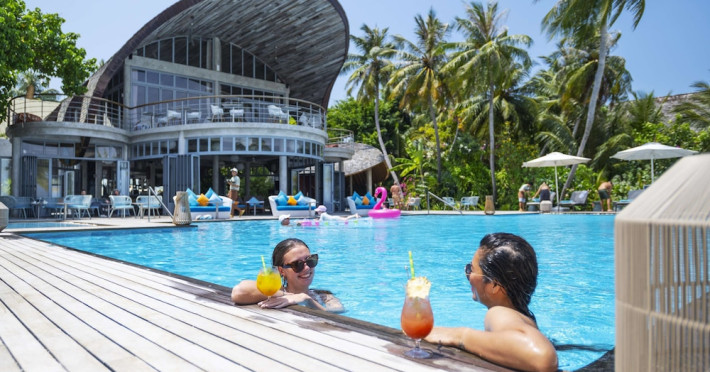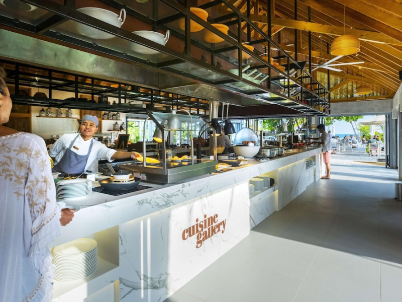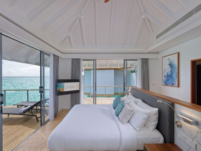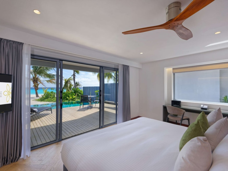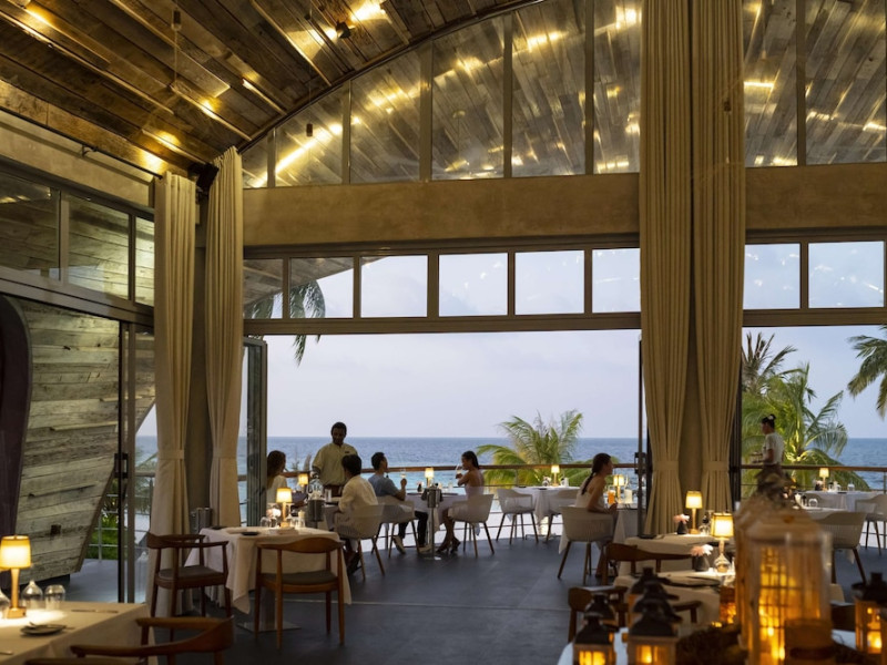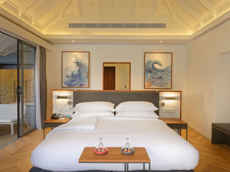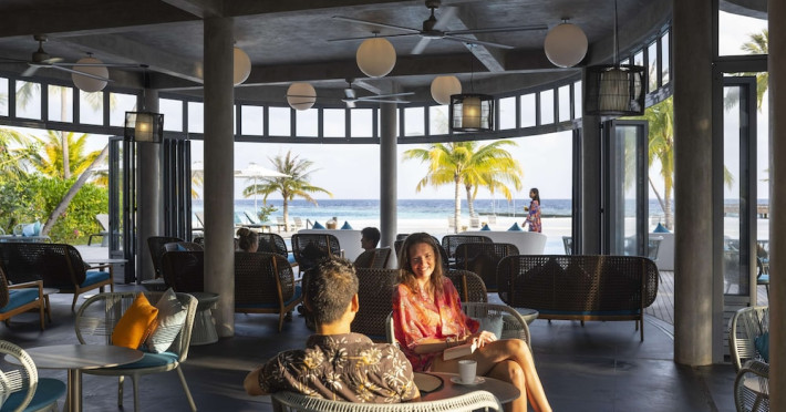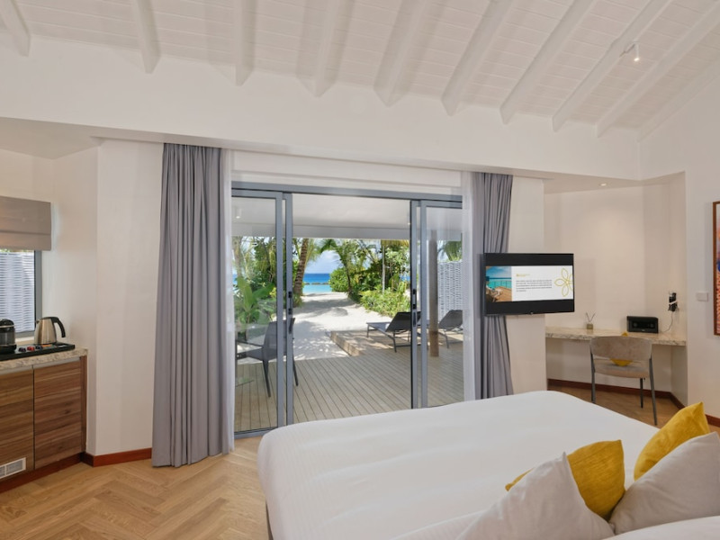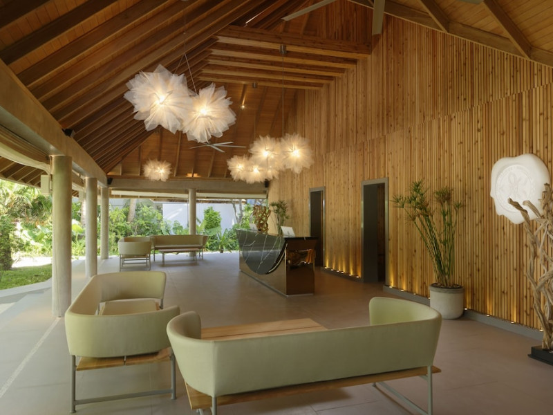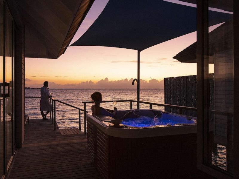 OUTRIGGER Maldives Maafushivaru Resort is a beachfront resort located on a private island in the South Ari Atoll, a 25-minute seaplane flight from Malé International Airport. The island, measuring just over 350 meters, features lush vegetation, powder-white sand, and a house reef teeming with tropical fish. Elegant villas, inspired by local architecture, offer direct beach or sea access. Amenities include an outdoor pool, an indoor pool, a spa offering massages and treatments, complimentary Wi-Fi, concierge services, gift shops, and all-inclusive rate options (some dining restrictions may apply). The resort has four restaurants, a coffee shop/cafe, a bar/lounge, a beach bar, and a poolside bar. A complimentary buffet breakfast is served daily. Additional amenities include dry cleaning/laundry services, a 24-hour front desk, and multilingual staff. Rooms feature air-conditioning, iPod docking stations, LCD televisions, pillowtop beds with down comforters, and bathrooms with separate bathtubs and showers. The resort is within a 5-minute walk of Ari Atoll and Dhangethi Beach and 0.1 km from Bunbaru Public Beach. Velana International Airport (MLE) is 4.5 km away. The OUTRIGGER Maldives Maafushivaru Resort is a Beach Resort, Diving Resort, Honeymoon, Resort, Spa Resort, Tourist, Villa Resort hotel. The nightlife/restaurants are located in the hotel.