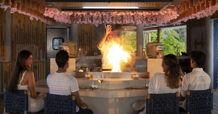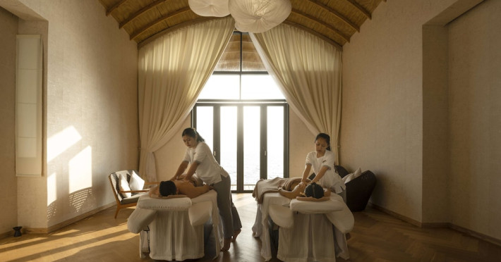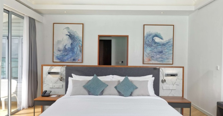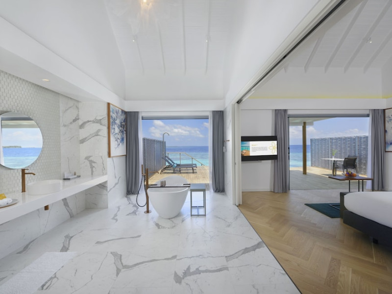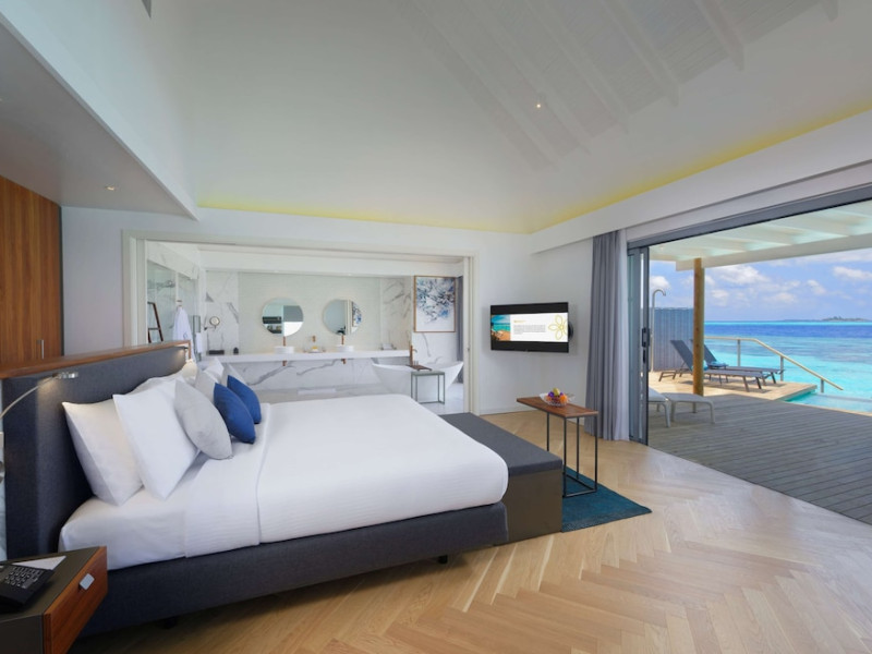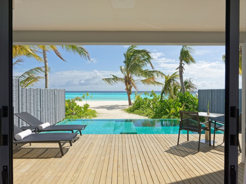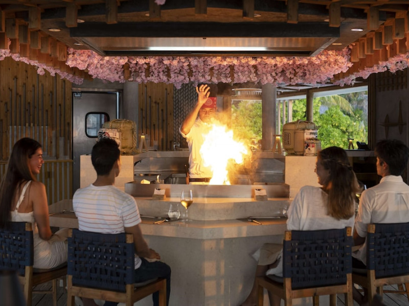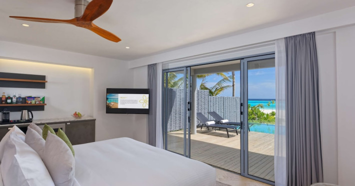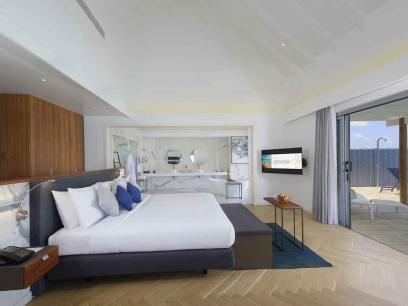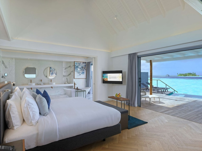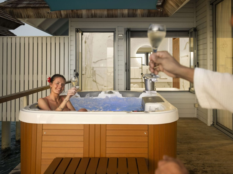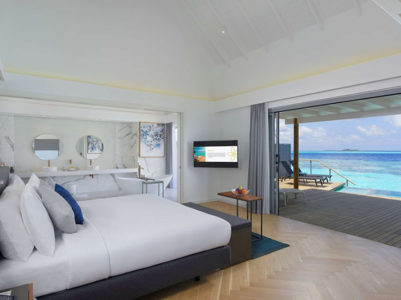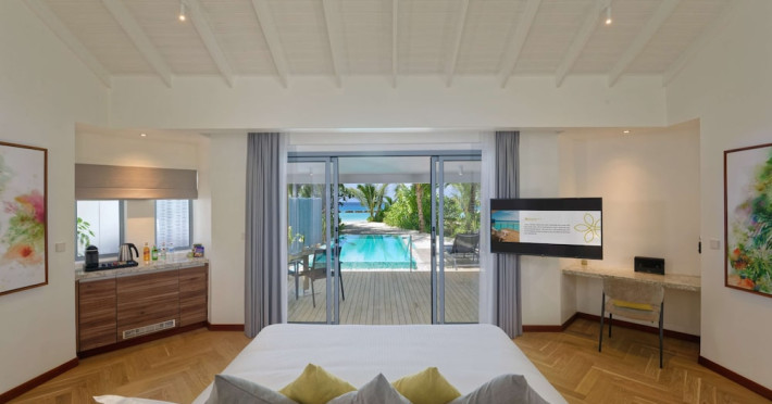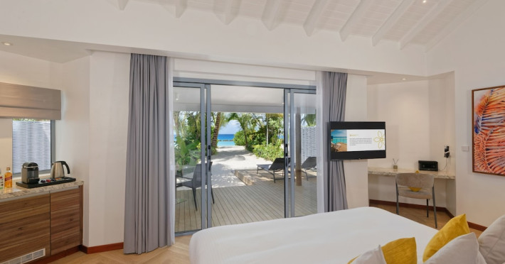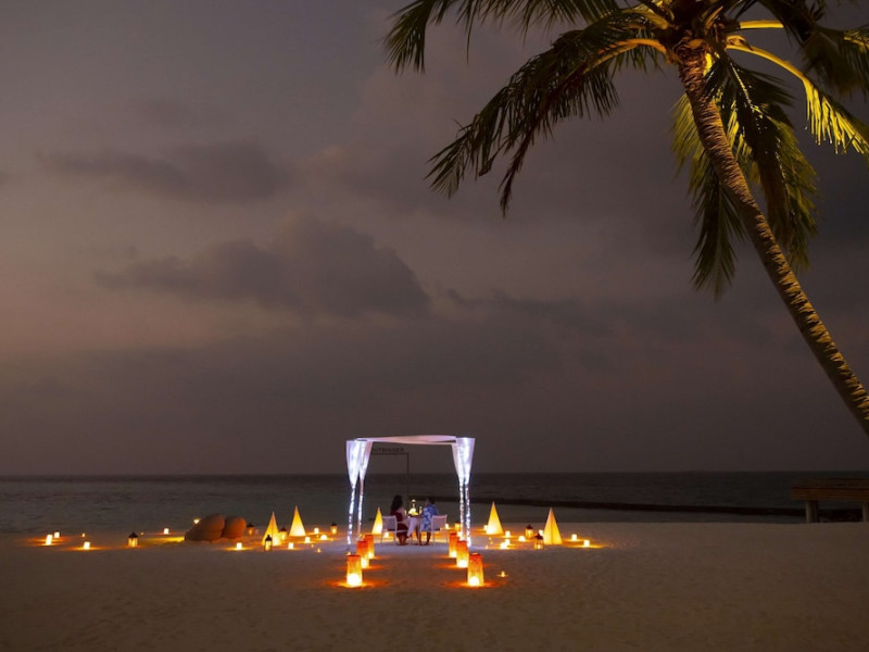 OUTRIGGER Maldives Maafushivaru Resort is a beachfront resort located on a private island in the South Ari Atoll, a 25-minute seaplane flight from Malé International Airport. The island, measuring just over 350 meters, features lush vegetation, powder-white sand, and a house reef teeming with tropical fish. Elegant villas, inspired by local architecture, offer direct beach or sea access. Amenities include an outdoor pool, an indoor pool, a spa offering massages and treatments, complimentary Wi-Fi, concierge services, gift shops, and all-inclusive rate options (some dining restrictions may apply). The resort has four restaurants, a coffee shop/cafe, a bar/lounge, a beach bar, and a poolside bar. A complimentary buffet breakfast is served daily. Additional amenities include dry cleaning/laundry services, a 24-hour front desk, and multilingual staff. Rooms feature air-conditioning, iPod docking stations, LCD televisions, pillowtop beds with down comforters, and bathrooms with separate bathtubs and showers. The resort is within a 5-minute walk of Ari Atoll and Dhangethi Beach and 0.1 km from Bunbaru Public Beach. Velana International Airport (MLE) is 4.5 km away. The OUTRIGGER Maldives Maafushivaru Resort is a Beach Resort, Diving Resort, Honeymoon, Resort, Spa Resort, Tourist, Villa Resort hotel. The nightlife/restaurants are located in the hotel.