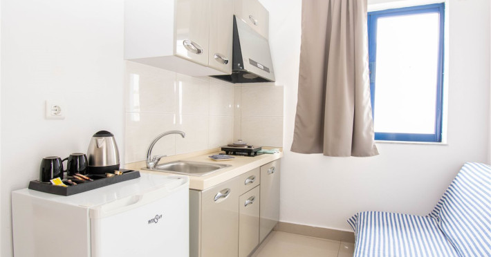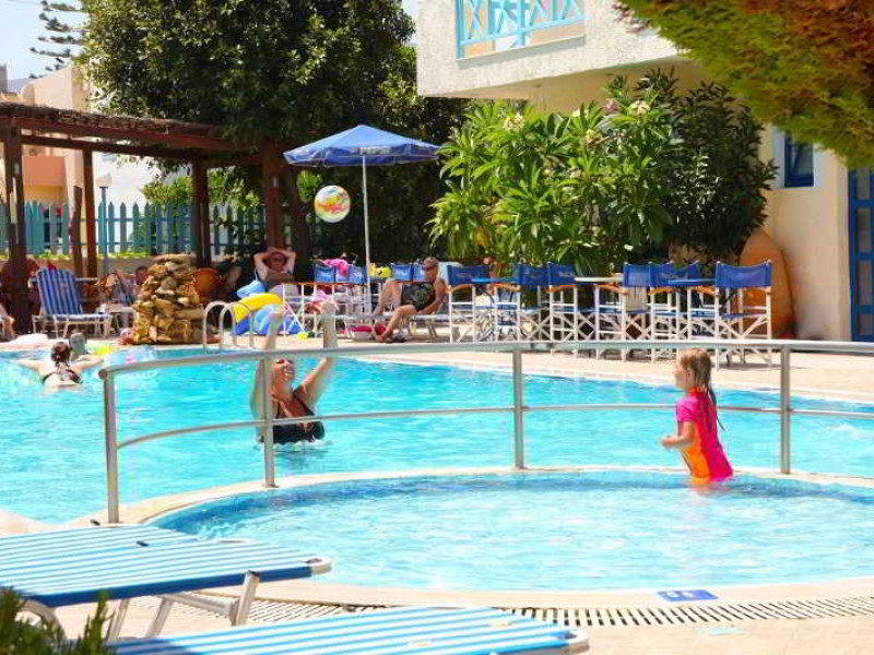 Facilities and services include Air Conditioning, Bar, Restaurant, Wireless internet and Outdoor pool.Room feature Air conditioning, Coffee/tea making facilities, Fridge, Hairdryer, Kitchen(ette), Television and Wi-Fi in Room.Address: Analipsi, 70014 Analipsi Hersonissos, Crete, Greece.