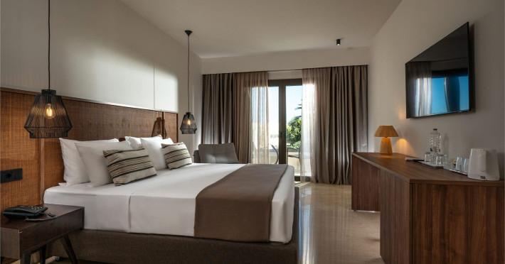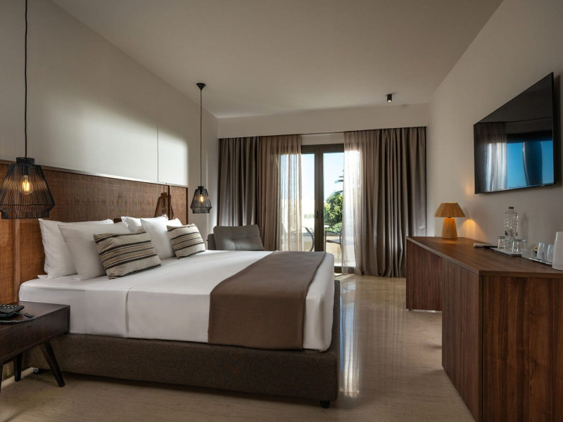 Serita Beach Resort features 276 rooms, including double, family, and bungalow options. All rooms are designed in an elegant Mediterranean style that captures the region's warm, inviting atmosphere. All rooms are air-conditioned and come with a balcony or terrace, and many offer breathtaking views of the Cretan Sea or the beautifully landscaped gardens. Guests will enjoy the all-inclusive concept, which includes high-quality dining at the main restaurant and three à la carte restaurants, two snack points, and two bars offering a wide selection of drinks, cocktails, and snacks by the pool. The property offers a wide range of activities and entertainment options for the whole family, dedicated childcare services, and warm Greek hospitality. Here, guests can completely relax, recharge, and make the most of their holiday. The resort has two pools, water slides, a wide range of sports activities, and an exclusive spa. Every day brings new experiences, whether guests are looking for entertainment in the theater, sports activities, or a relaxing day at the beach.