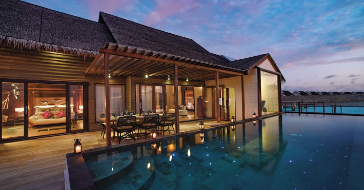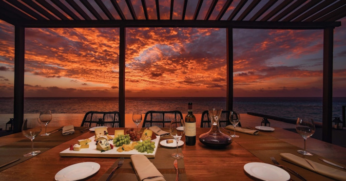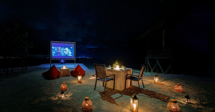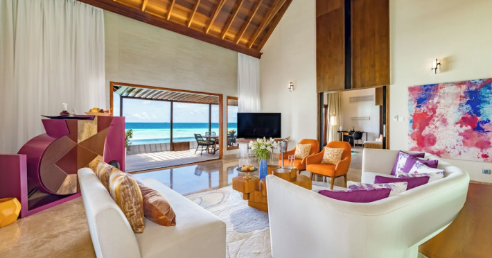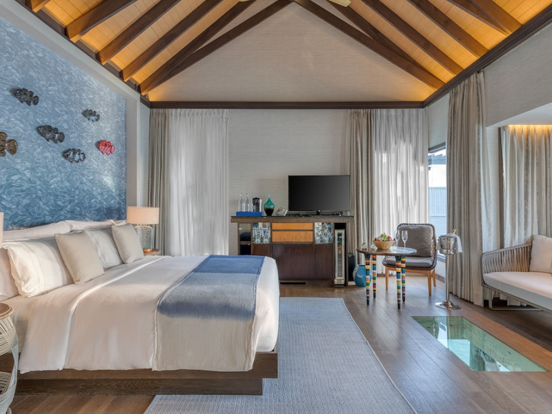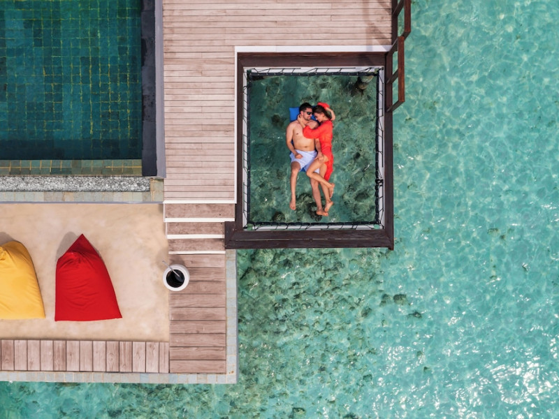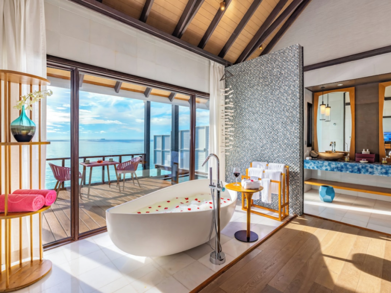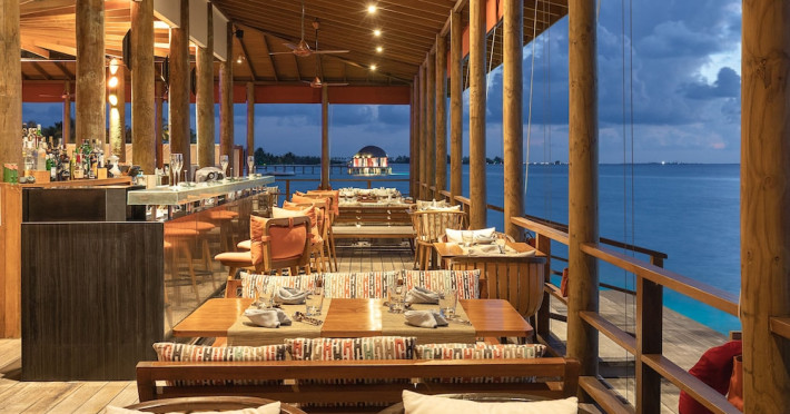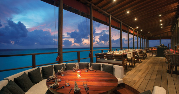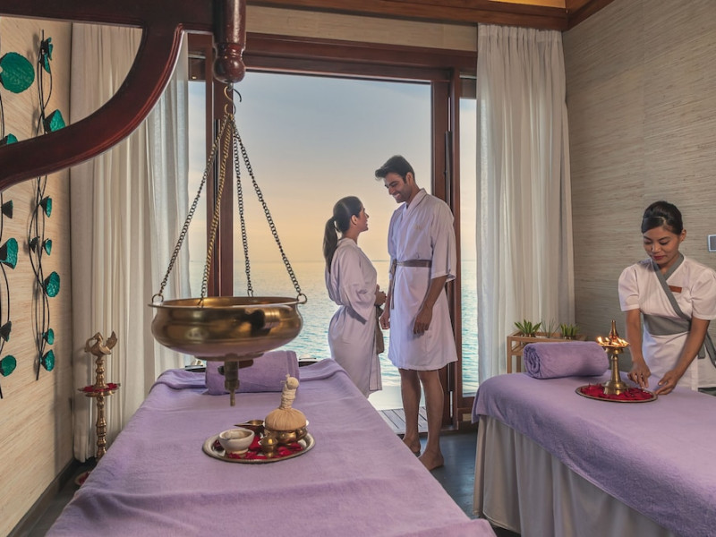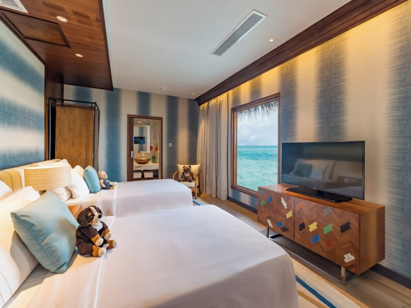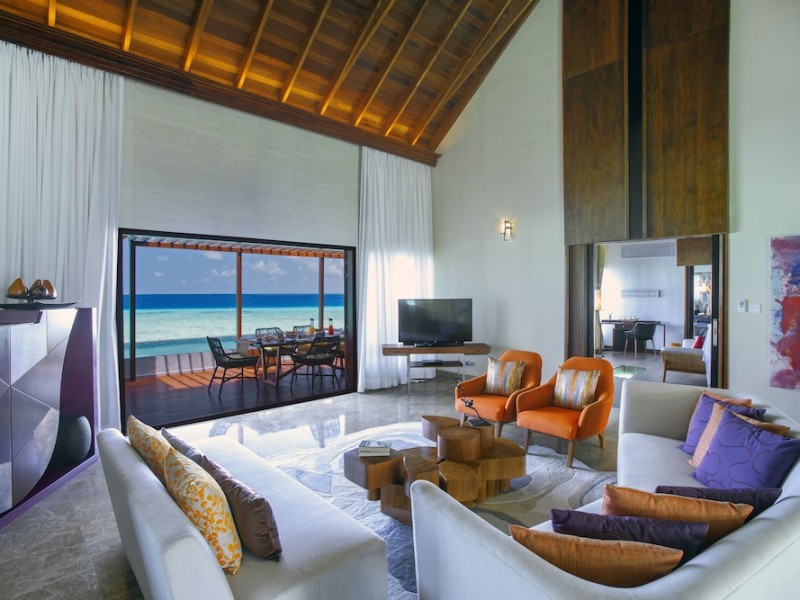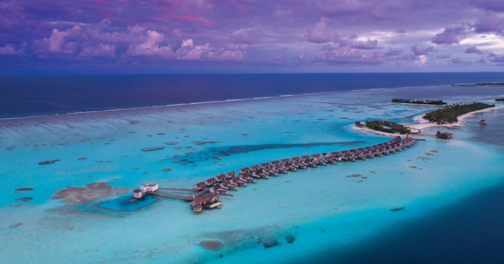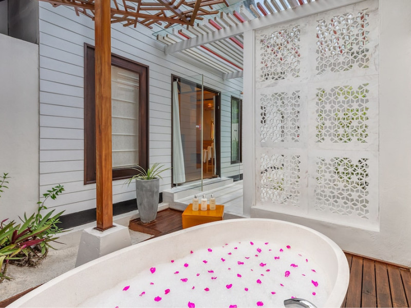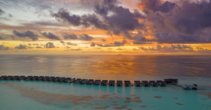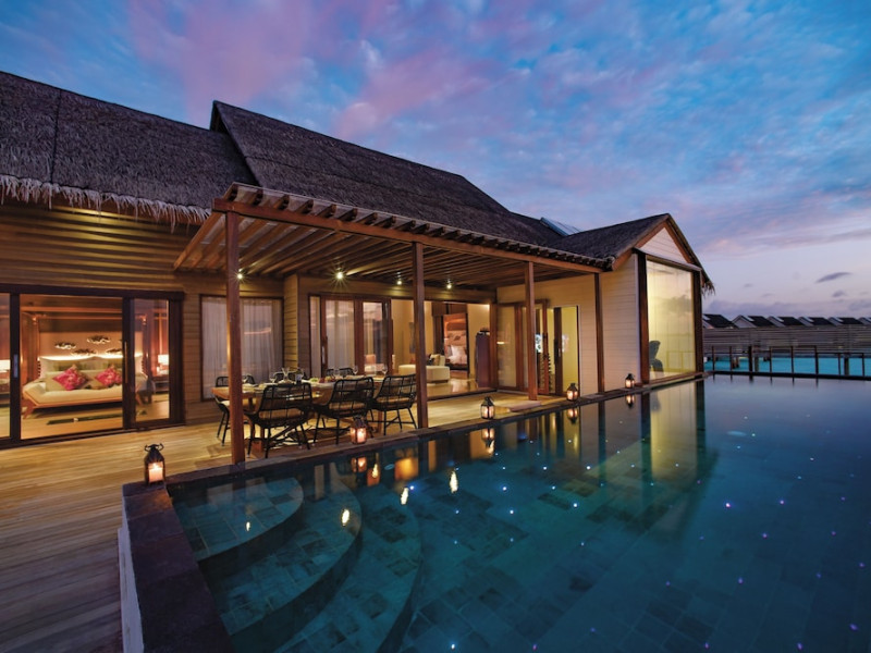 OZEN by Atmosphere at Maadhoo, Maldives, a luxury all-inclusive resort on the tranquil island of Maadhoo in South Male Atoll, offers an exclusive Atmosphere INDULGENCE holiday plan. The resort features a contemporary design complementing its natural surroundings. Amenities include a spa with massages and body treatments, a private beach, an outdoor pool, a nightclub, complimentary Wi-Fi, concierge services, babysitting (surcharge), and a business center. Dining options include five restaurants (with charges potentially applying to some restaurants, special dinners, dishes, beverages, and amenities), a coffee shop/cafe with snacks, a poolside bar, and three bars/lounges. A complimentary buffet breakfast is served daily (7:00 AM - 11:00 AM), and 24-hour room service is available. The 95 individually decorated guestrooms offer free minibar items, espresso makers, Tempur-Pedic beds with down comforters and Egyptian cotton sheets, 32-inch LED TVs, and private bathrooms with separate bathtubs and showers. The resort is located near several beaches, including Rihiveli, Kandooma, Rannalhi, and Gulhi beaches (distances vary slightly across sources). Express check-in and check-out are also available. The Ozen Life Maadhoo Resort is a hotel.