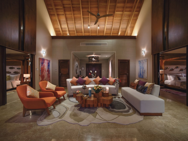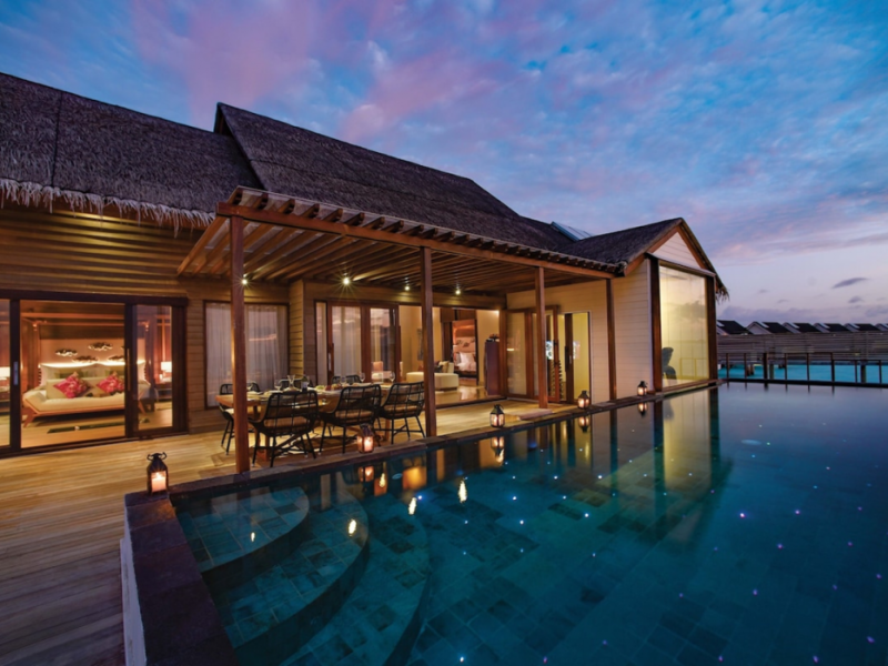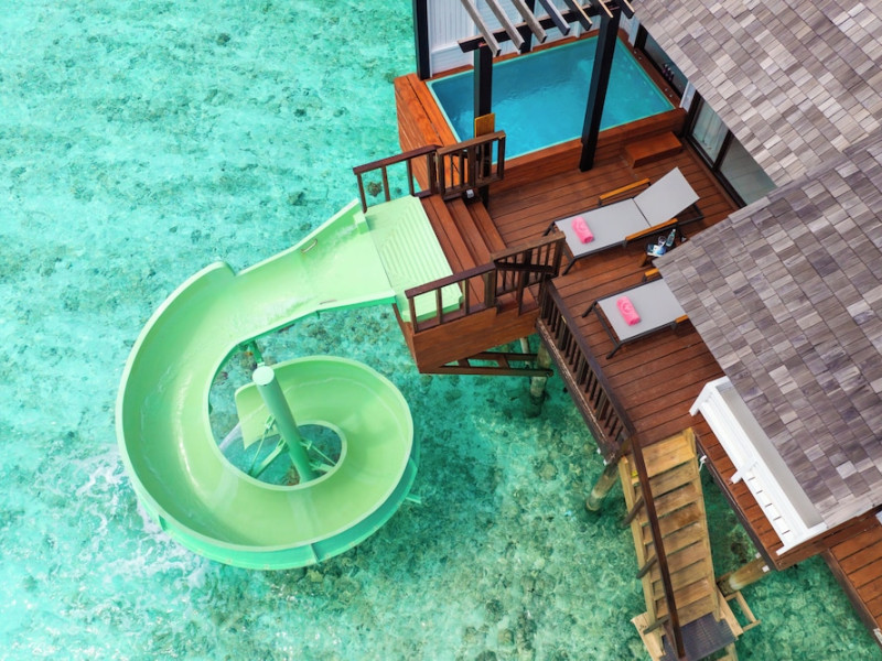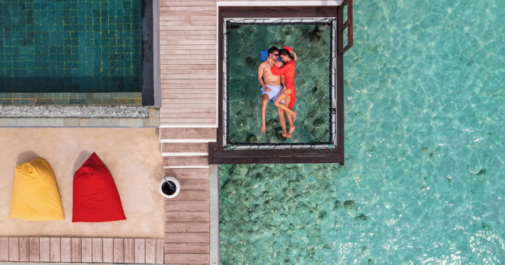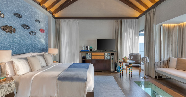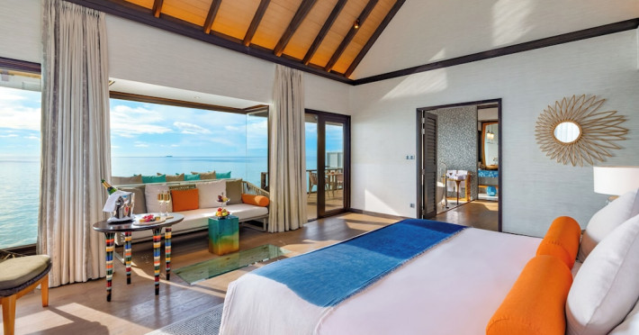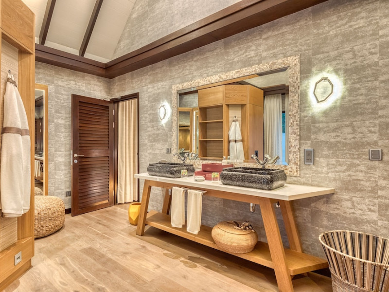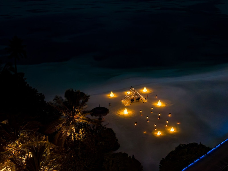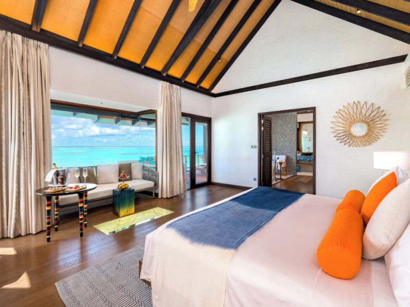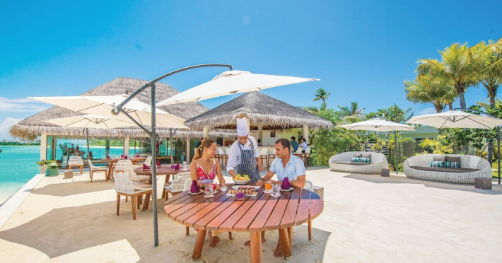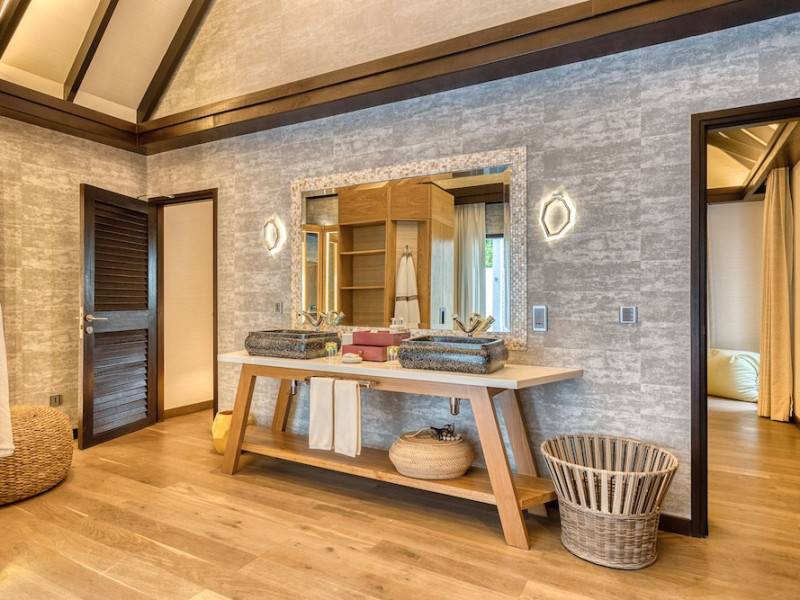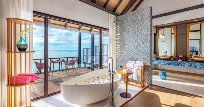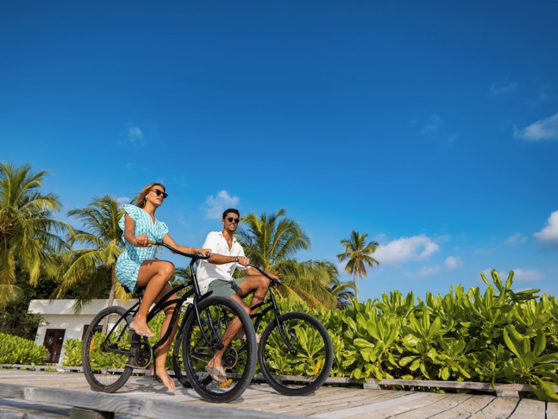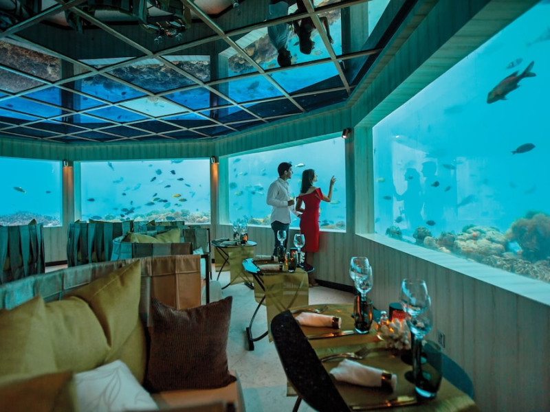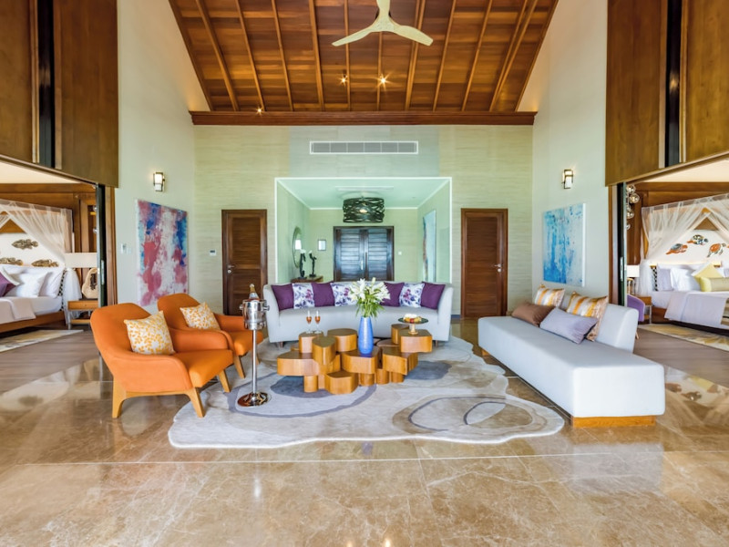 OZEN by Atmosphere at Maadhoo, Maldives, a luxury all-inclusive resort on the tranquil island of Maadhoo in South Male Atoll, offers an exclusive Atmosphere INDULGENCE holiday plan. The resort features a contemporary design complementing its natural surroundings. Amenities include a spa with massages and body treatments, a private beach, an outdoor pool, a nightclub, complimentary Wi-Fi, concierge services, babysitting (surcharge), and a business center. Dining options include five restaurants (with charges potentially applying to some restaurants, special dinners, dishes, beverages, and amenities), a coffee shop/cafe with snacks, a poolside bar, and three bars/lounges. A complimentary buffet breakfast is served daily (7:00 AM - 11:00 AM), and 24-hour room service is available. The 95 individually decorated guestrooms offer free minibar items, espresso makers, Tempur-Pedic beds with down comforters and Egyptian cotton sheets, 32-inch LED TVs, and private bathrooms with separate bathtubs and showers. The resort is located near several beaches, including Rihiveli, Kandooma, Rannalhi, and Gulhi beaches (distances vary slightly across sources). Express check-in and check-out are also available. The Ozen Life Maadhoo Resort is a hotel.