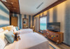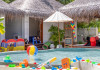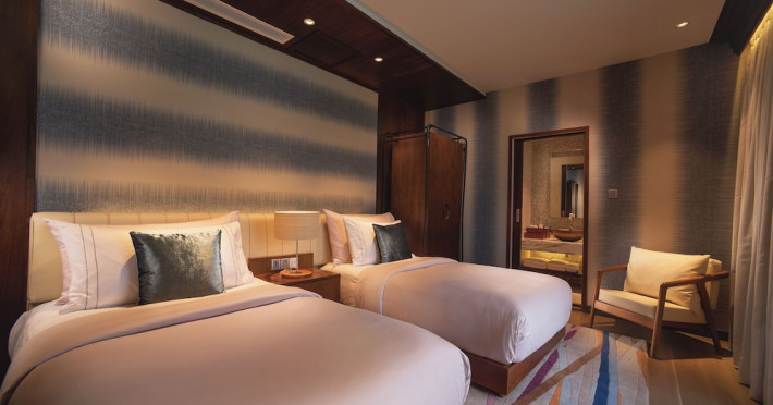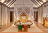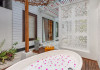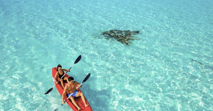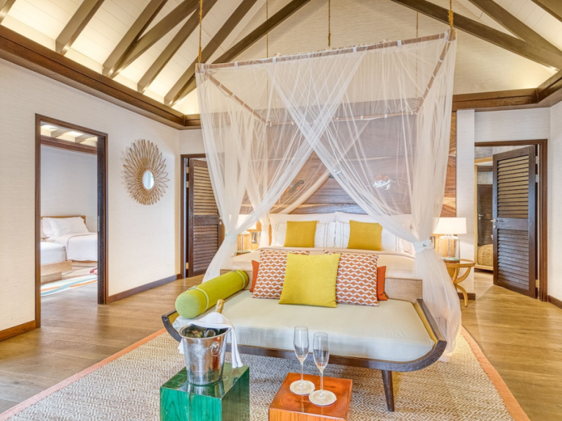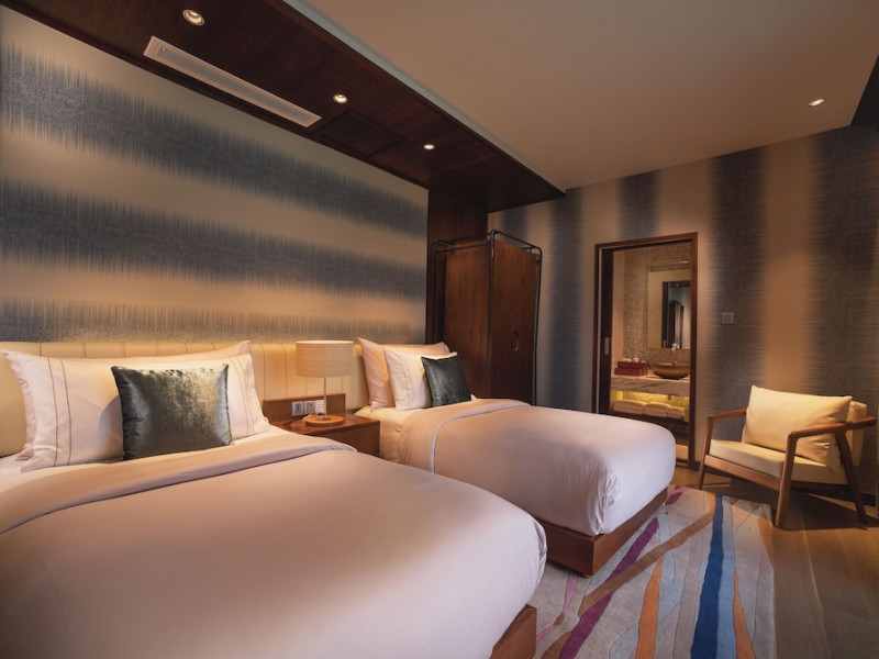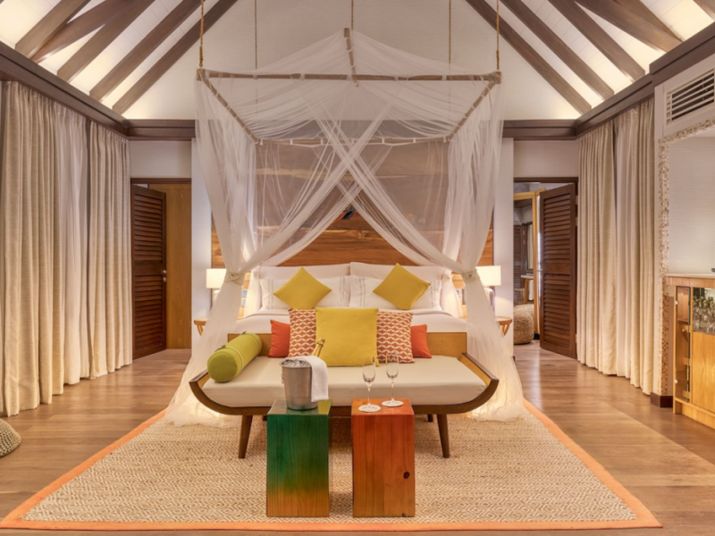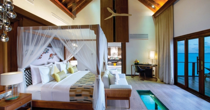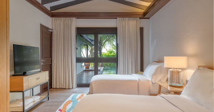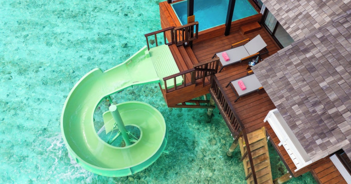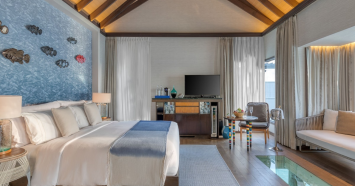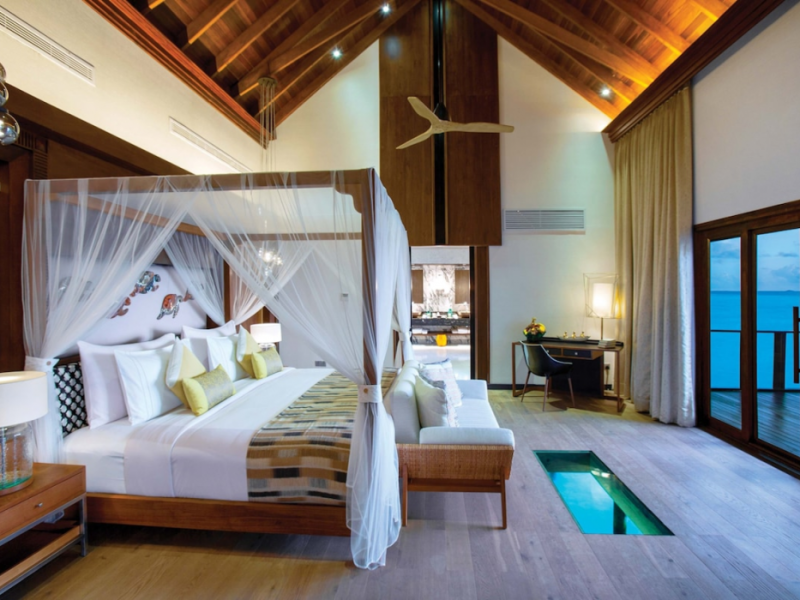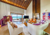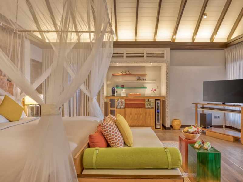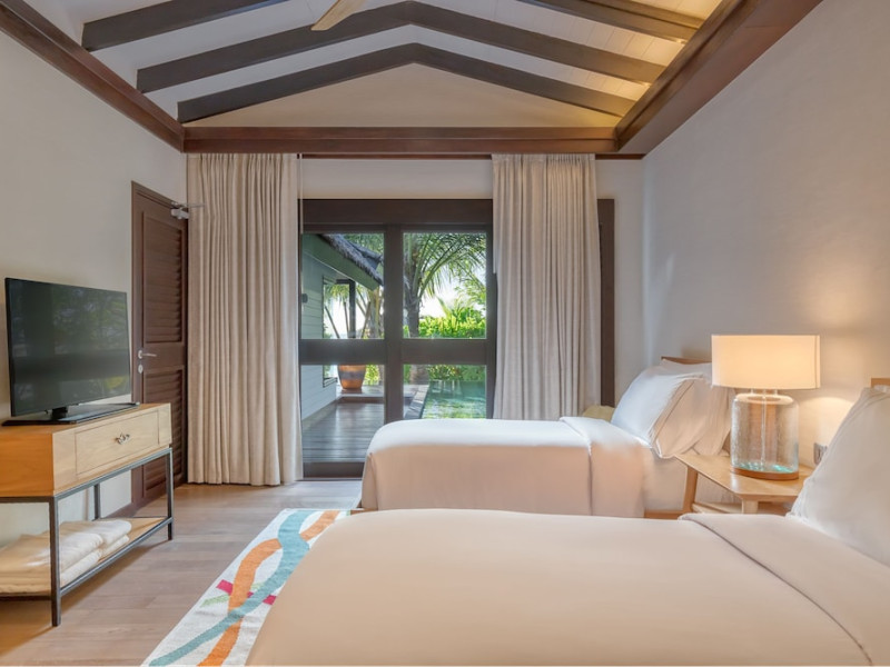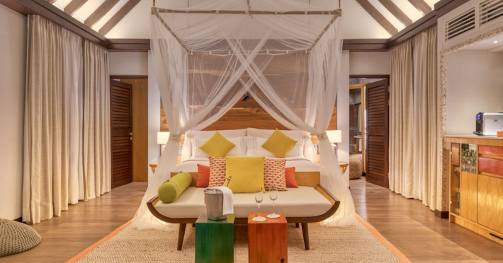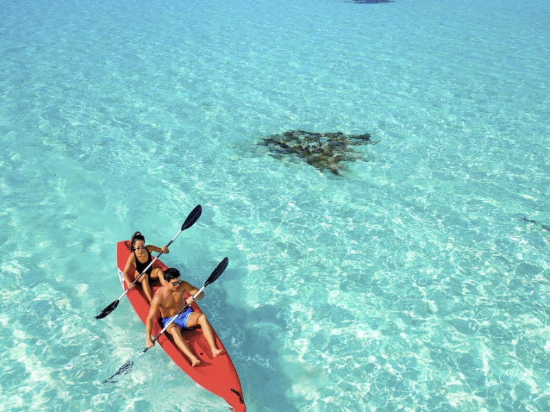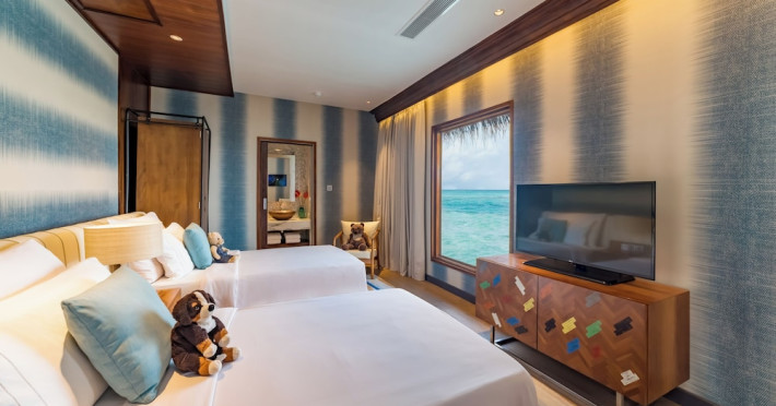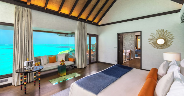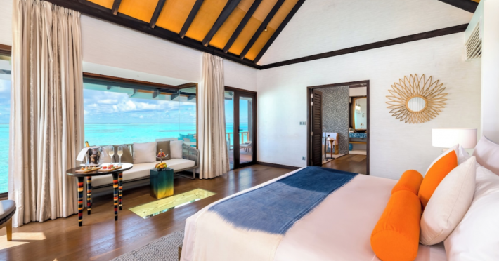 OZEN by Atmosphere at Maadhoo, Maldives, a luxury all-inclusive resort on the tranquil island of Maadhoo in South Male Atoll, offers an exclusive Atmosphere INDULGENCE holiday plan. The resort features a contemporary design complementing its natural surroundings. Amenities include a spa with massages and body treatments, a private beach, an outdoor pool, a nightclub, complimentary Wi-Fi, concierge services, babysitting (surcharge), and a business center. Dining options include five restaurants (with charges potentially applying to some restaurants, special dinners, dishes, beverages, and amenities), a coffee shop/cafe with snacks, a poolside bar, and three bars/lounges. A complimentary buffet breakfast is served daily (7:00 AM - 11:00 AM), and 24-hour room service is available. The 95 individually decorated guestrooms offer free minibar items, espresso makers, Tempur-Pedic beds with down comforters and Egyptian cotton sheets, 32-inch LED TVs, and private bathrooms with separate bathtubs and showers. The resort is located near several beaches, including Rihiveli, Kandooma, Rannalhi, and Gulhi beaches (distances vary slightly across sources). Express check-in and check-out are also available. The Ozen Life Maadhoo Resort is a hotel.